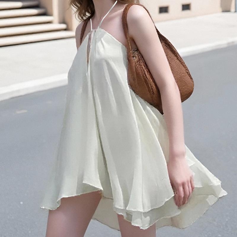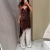 2025 Primavera/Verano Nuevo Vestido Cruzado Amazon Europeo y Americano de Moda Elegante Sexy Ajustado Color Sólido