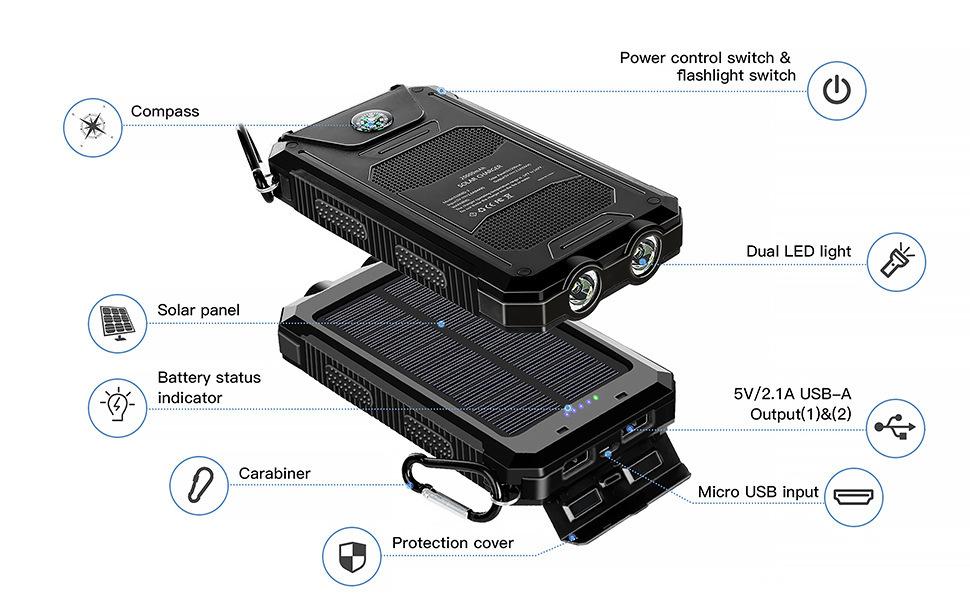 [Capacidad]: Estándar 20000mAh (el modelo regular tiene 8000 mAh, el modelo mejorado tiene 10,000 mAh)