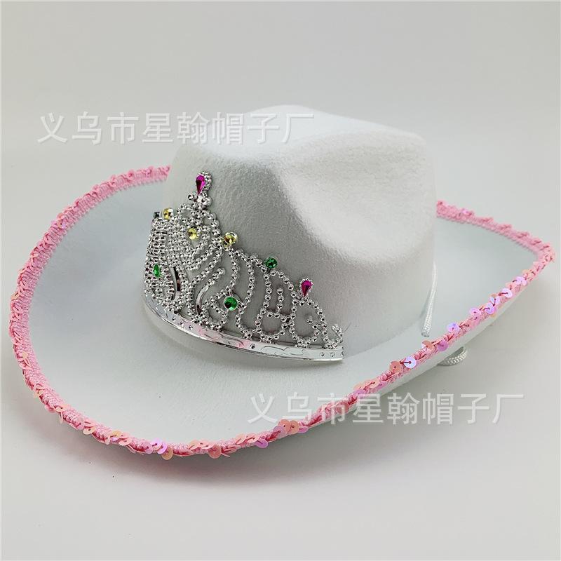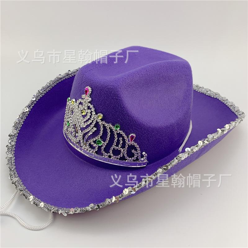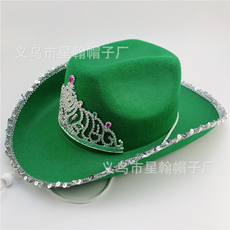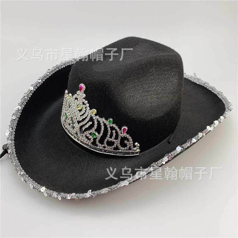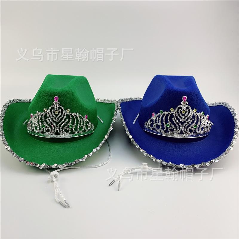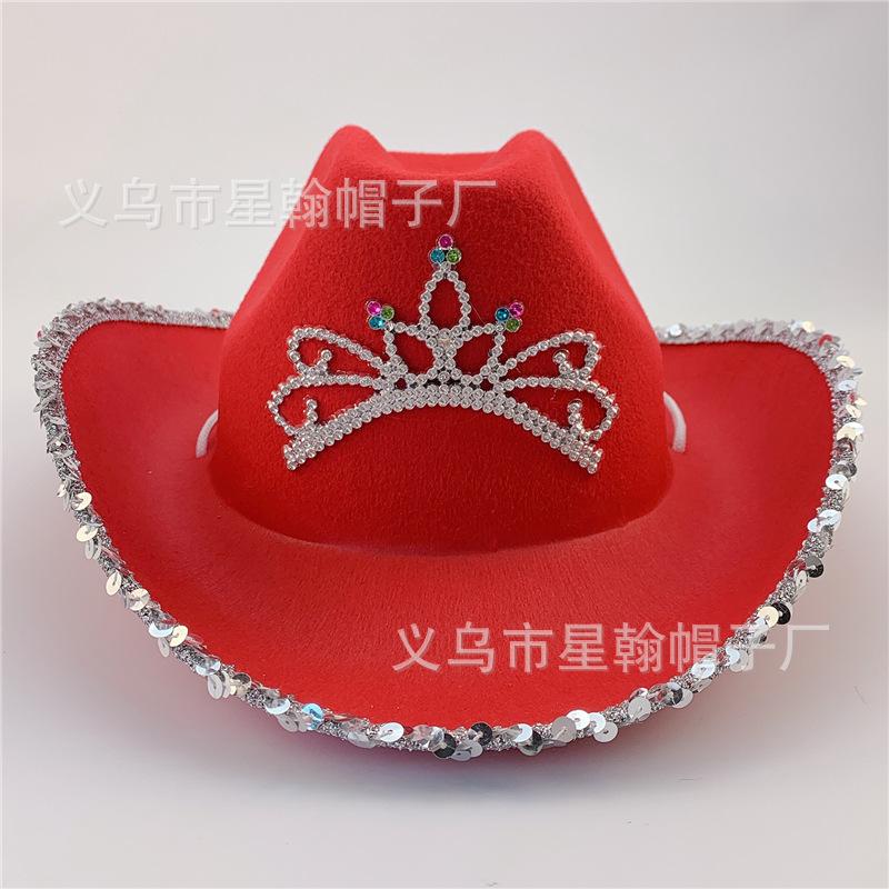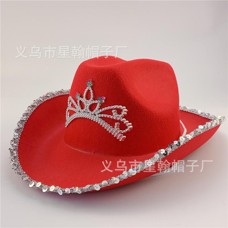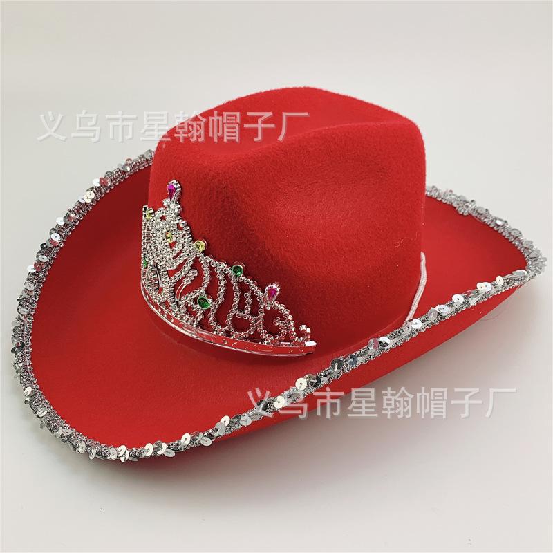 Corona Roja Halloween Mascarada Carnaval Fiesta Lentejuelas Borde Plateado Diamante Colorido Sombrero Vaquero Occidental