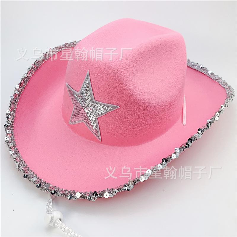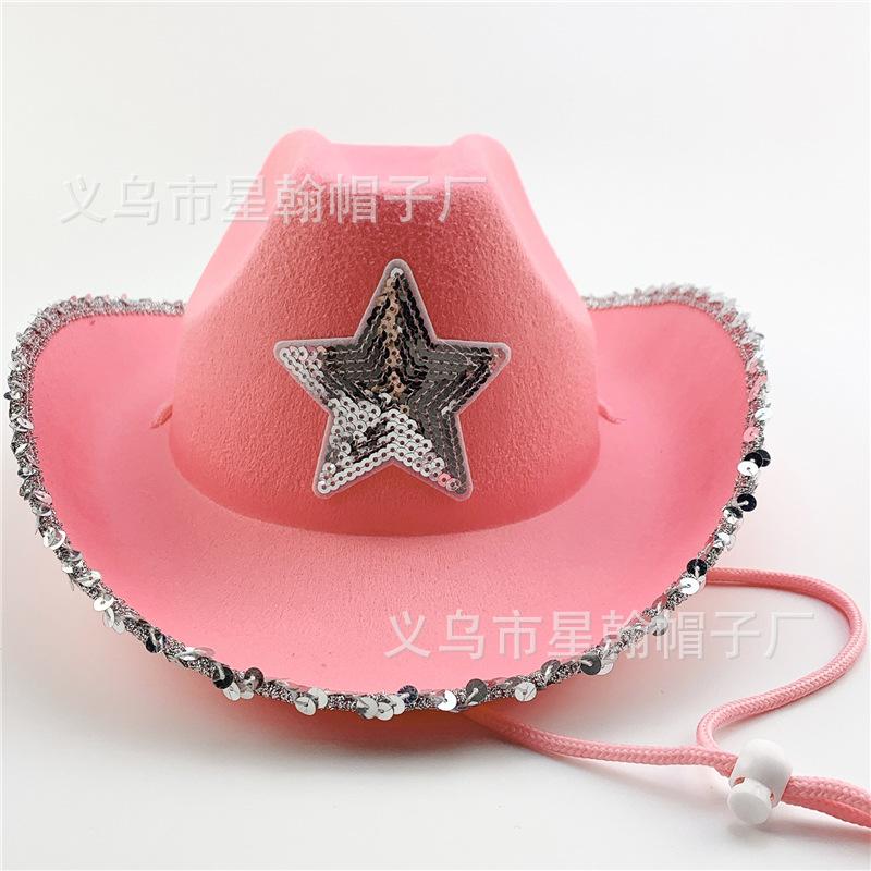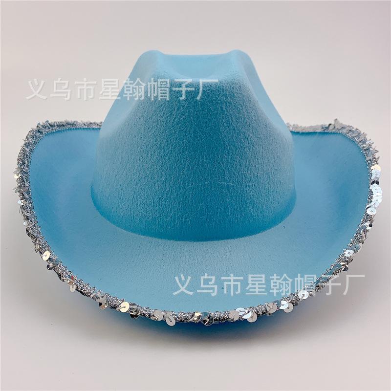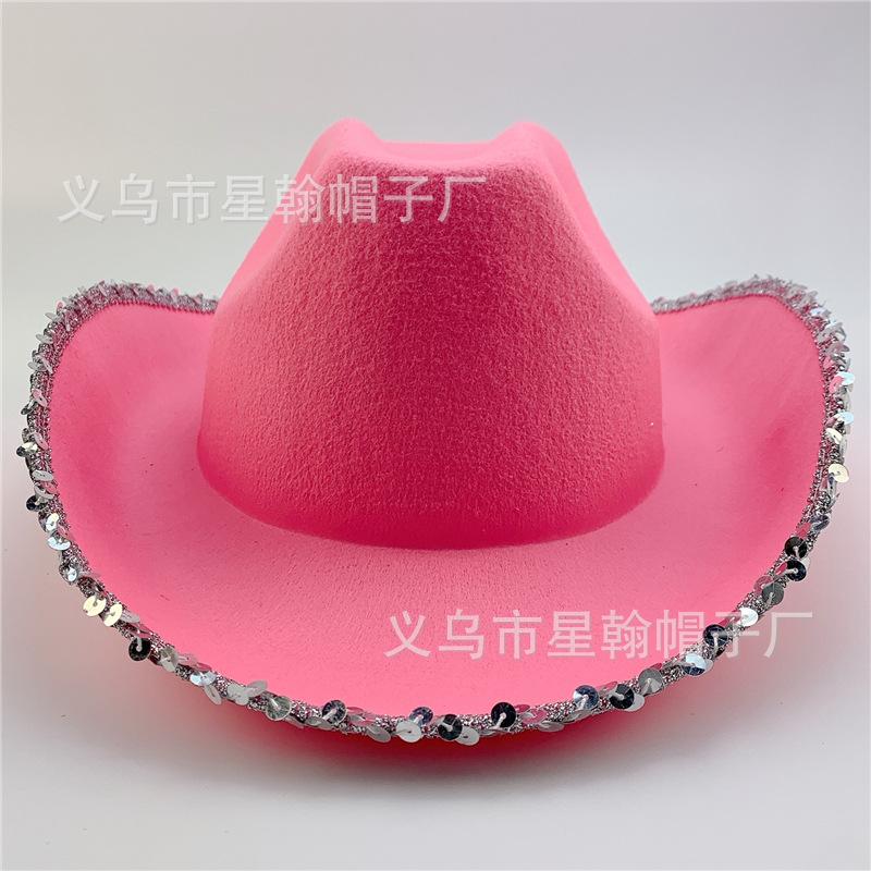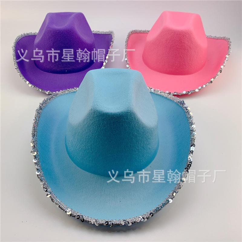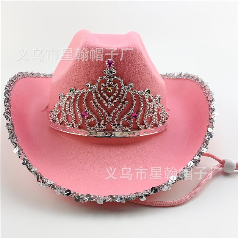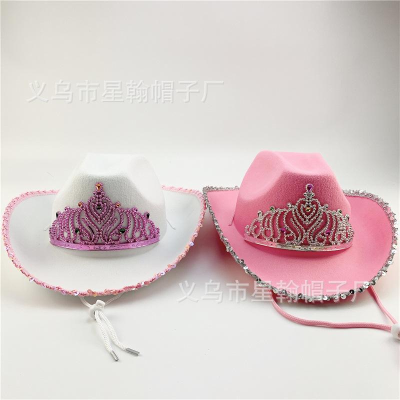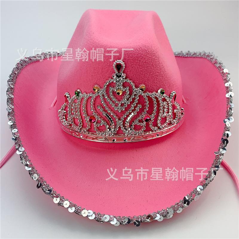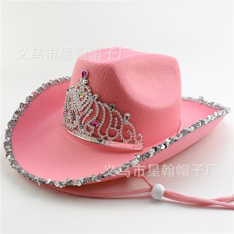 Corona Roja Halloween Mascarada Carnaval Fiesta Lentejuelas Borde Plateado Diamante Colorido Sombrero Vaquero Occidental