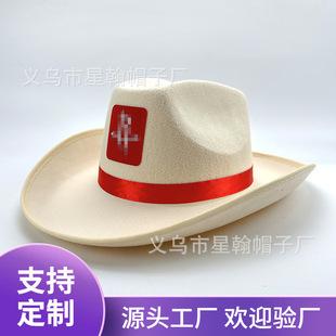 Sombrero de Vaquero Occidental Decoración para Exterior Amazon Más Vendido Fieltro Logotipo Publicitario Fiesta Protección Solar Sombrero Transfronterizo Suministro Especial