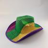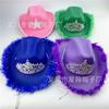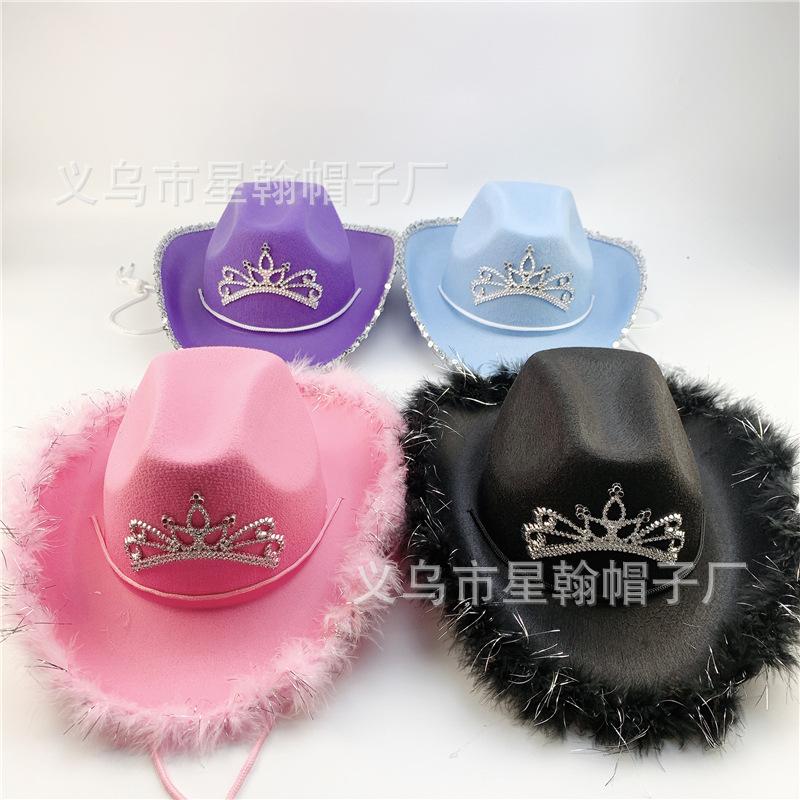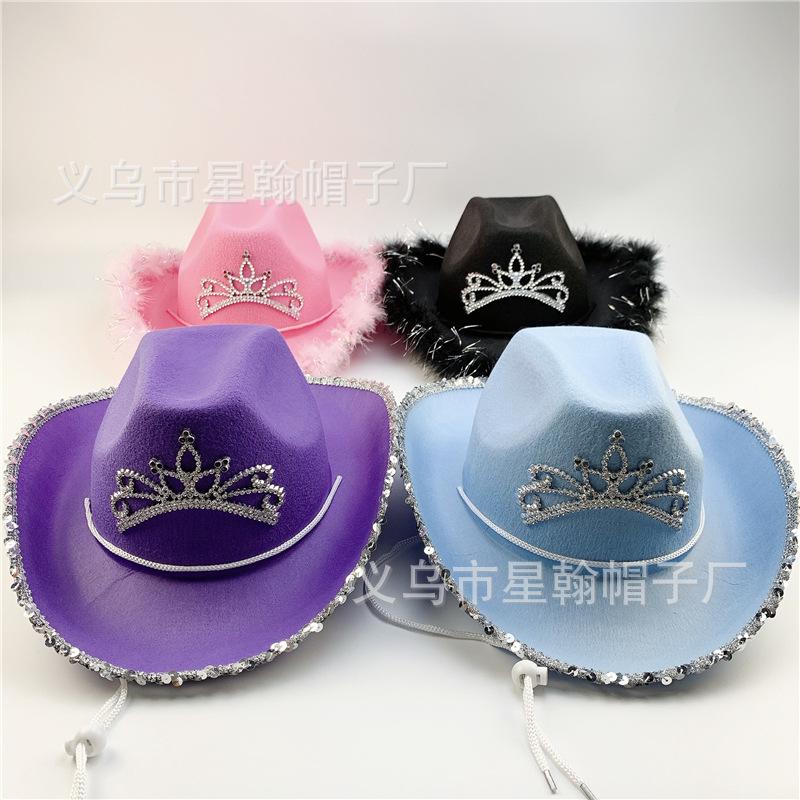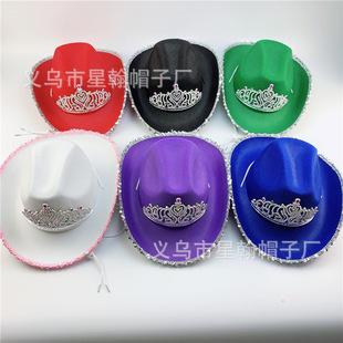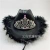 Corona Negra Fiesta de Carnaval de Halloween Fieltro Falso No Tejido Ribete Plateado Pedrería Colorida Sombrero de Vaquero Occidental