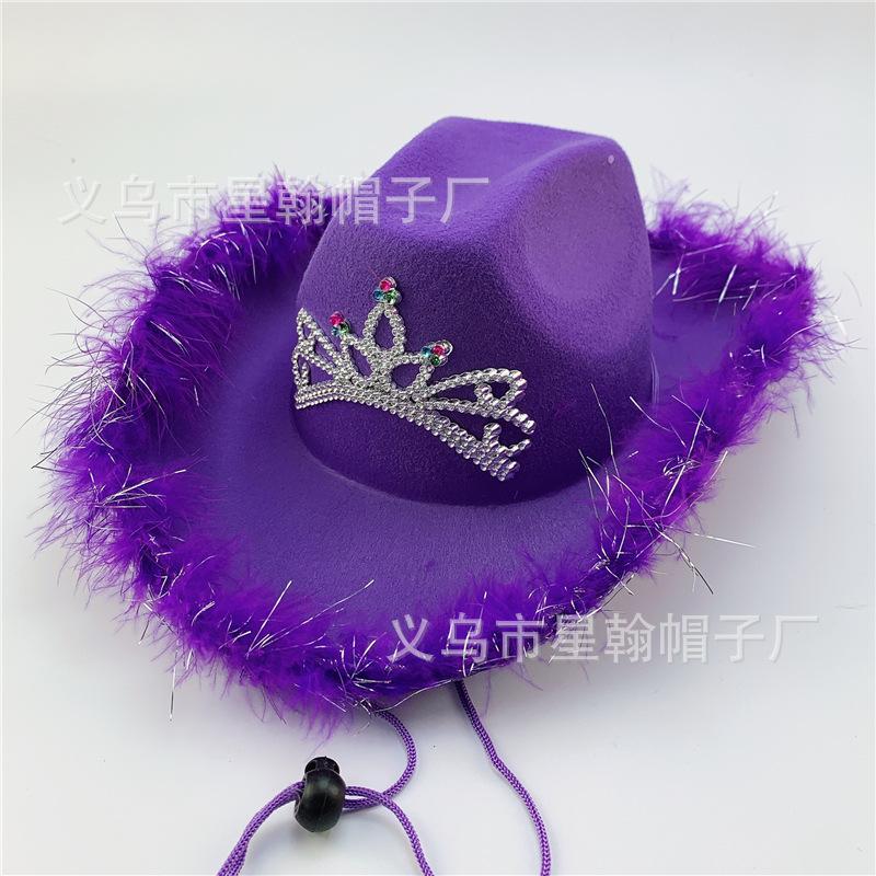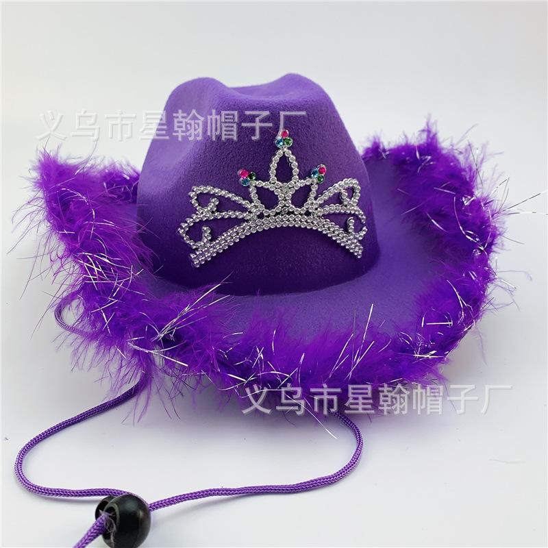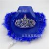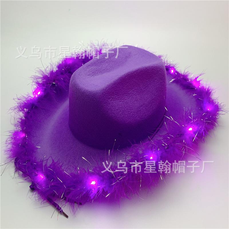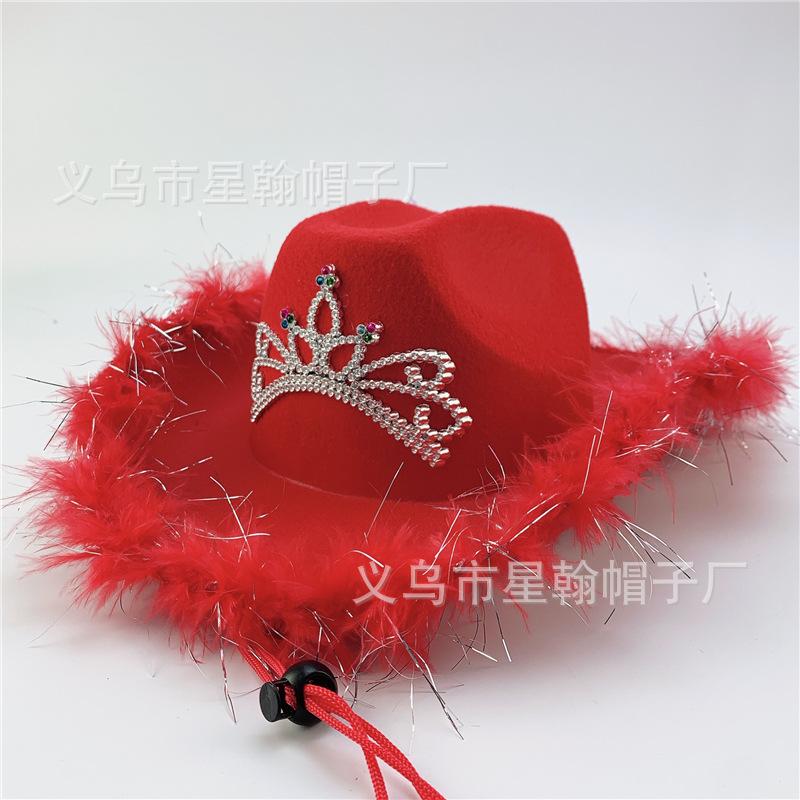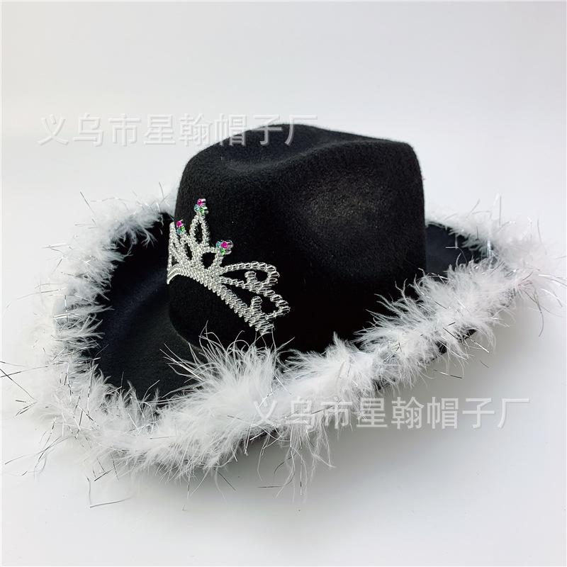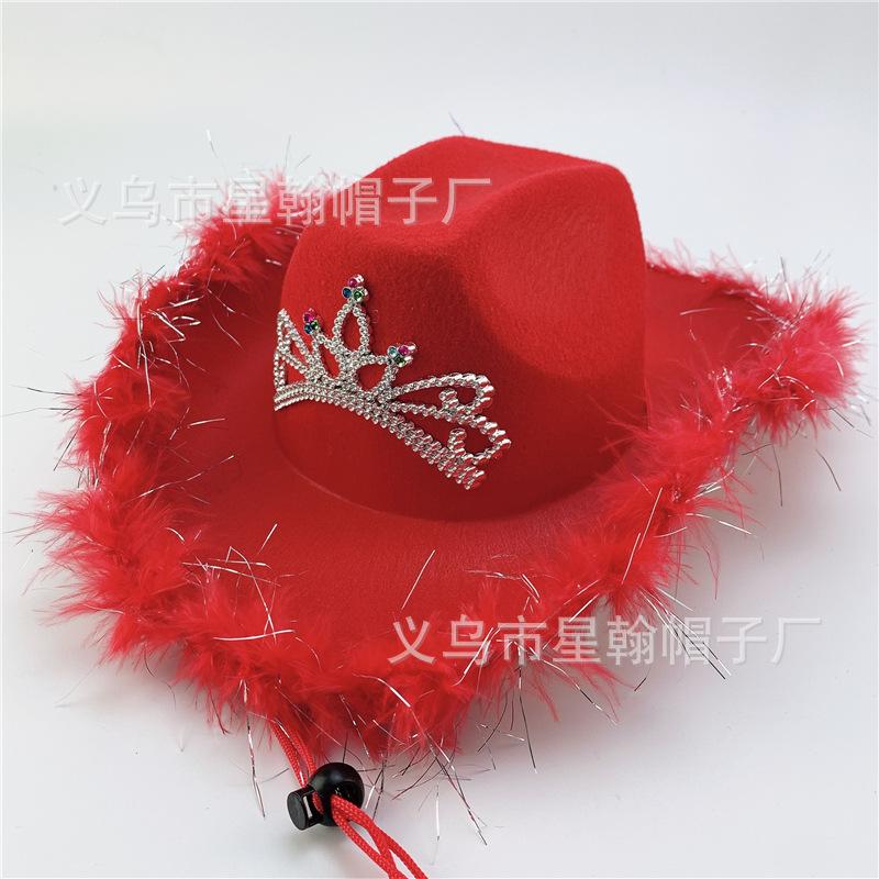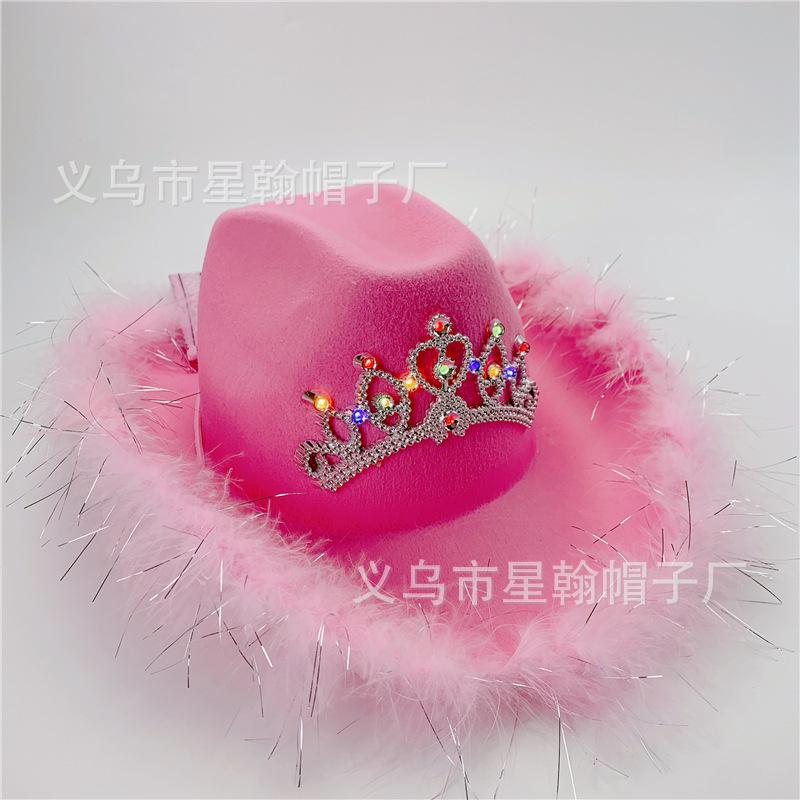 Corona Blanca con Luz LED de Colores Fiesta de Carnaval de Halloween Pluma Conjunto de Diamantes de Colores Sombrero de Vaquero Occidental