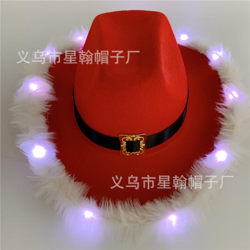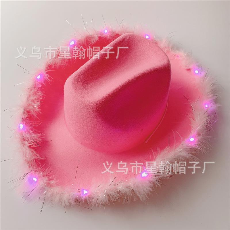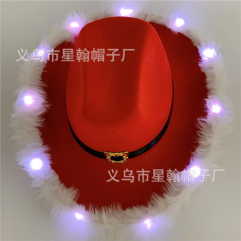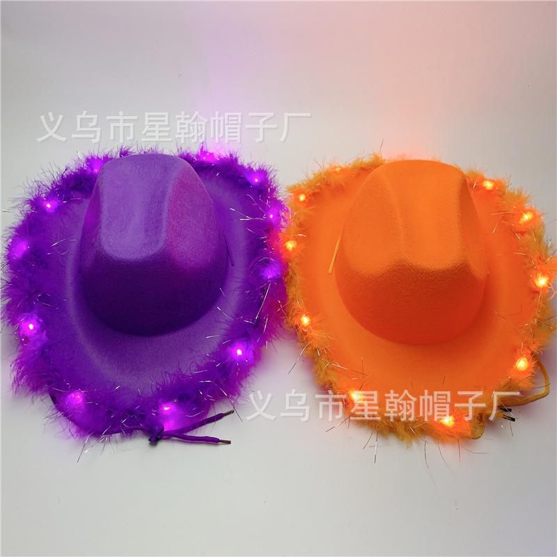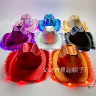 Amazon sombrero de vaquero occidental de tela estampada en caliente reflectante para fiesta de carnaval de Halloween con borde LED luminoso de gran venta