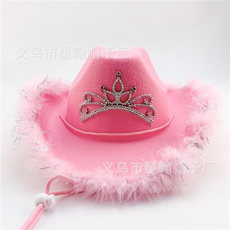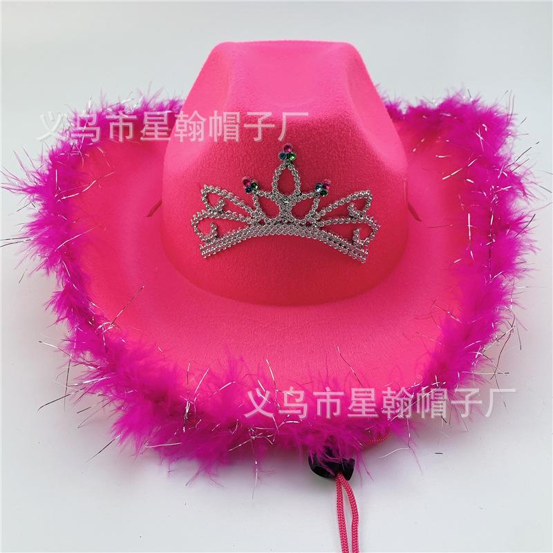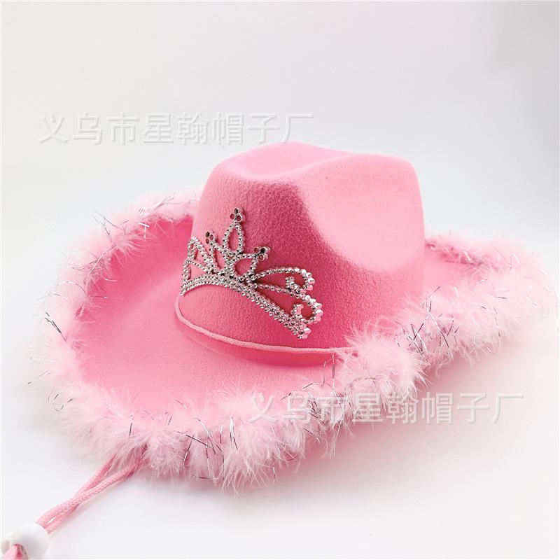 Sombrero de Vaquero Occidental Corona de Borde Deshilachado Rosa Sombrero de Plumas Sombrero de Fieltro de Poliéster Adorno de Lentejuelas Rosa Moldeado