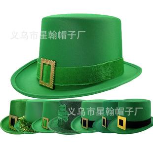 Sombreros transfronterizos suministrados especialmente sombreros de copa decoración de trébol sombrero irlandés verde sombrero del Día de San Patricio sombrero Lincoln