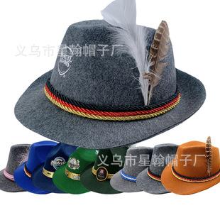 Oktoberfest Fieltro Gris Sombrero de Copa Pluma de Faisán Cordón Tricolor Alemán Sombrero de Festival Sombrero de Copa Comercio Exterior Amazon Transfronterizo