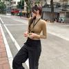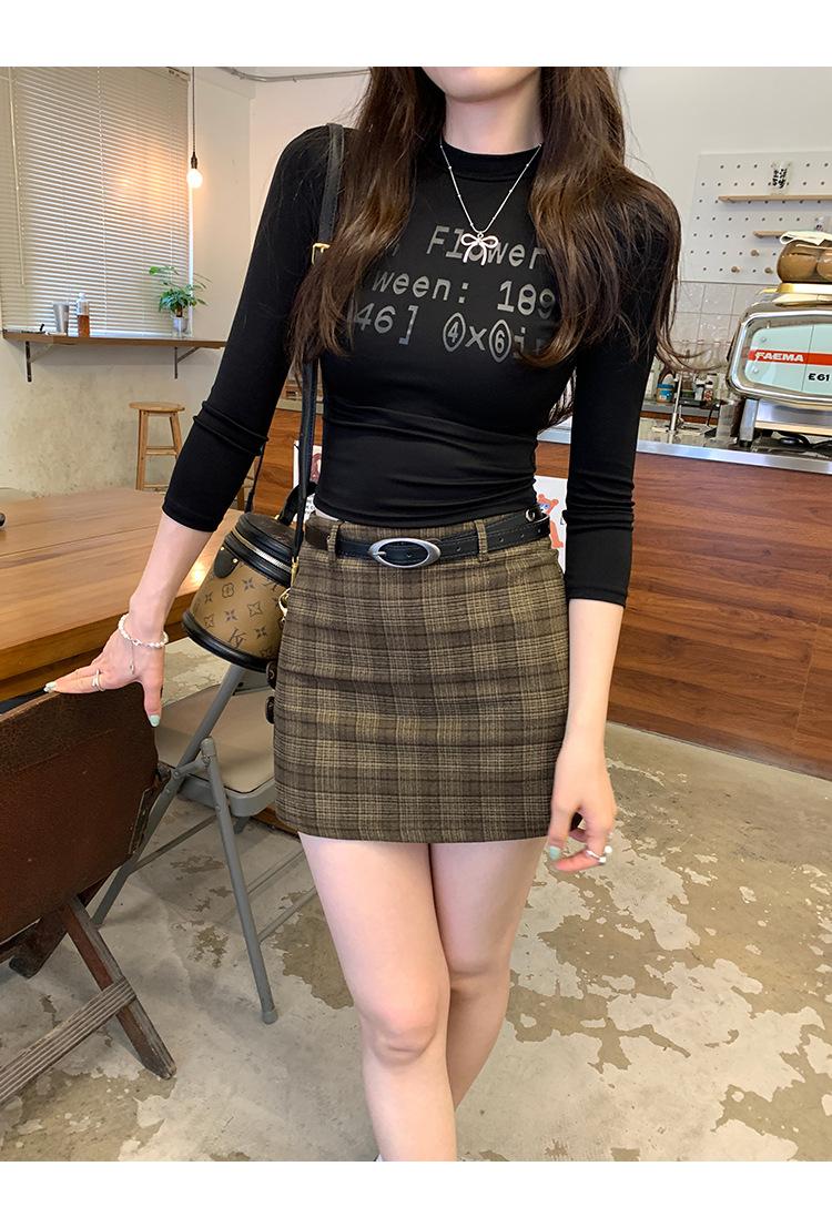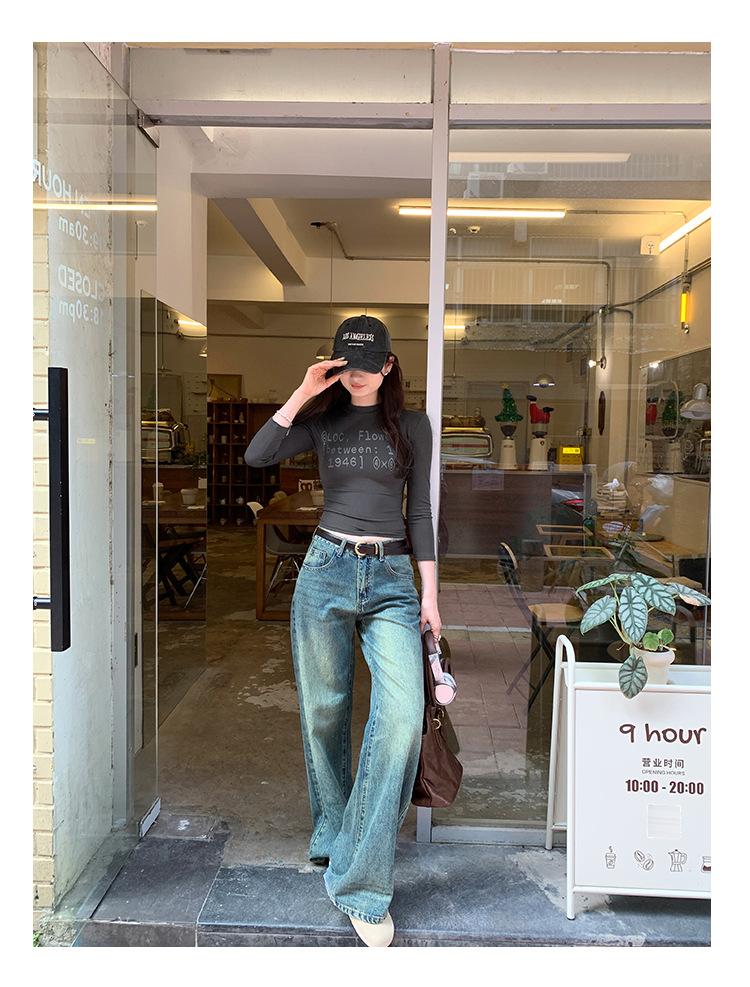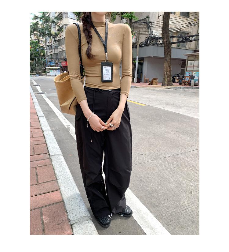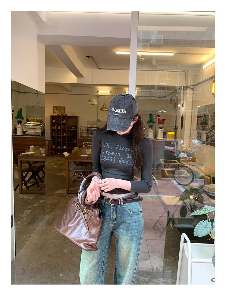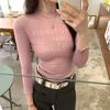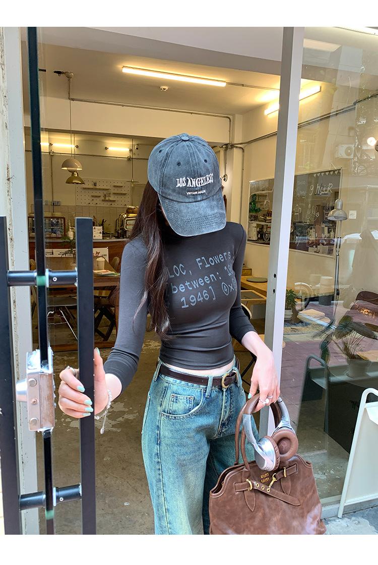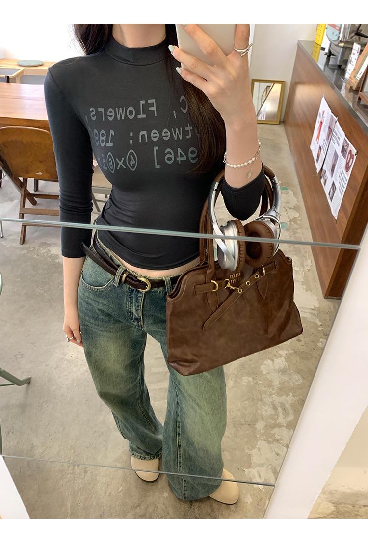 Camiseta de nicho con estampado de letras de cuello semi alto y manga larga para mujer, estilo coreano 2025, nuevo de principios de otoño, prenda interior, top de siete mangas
