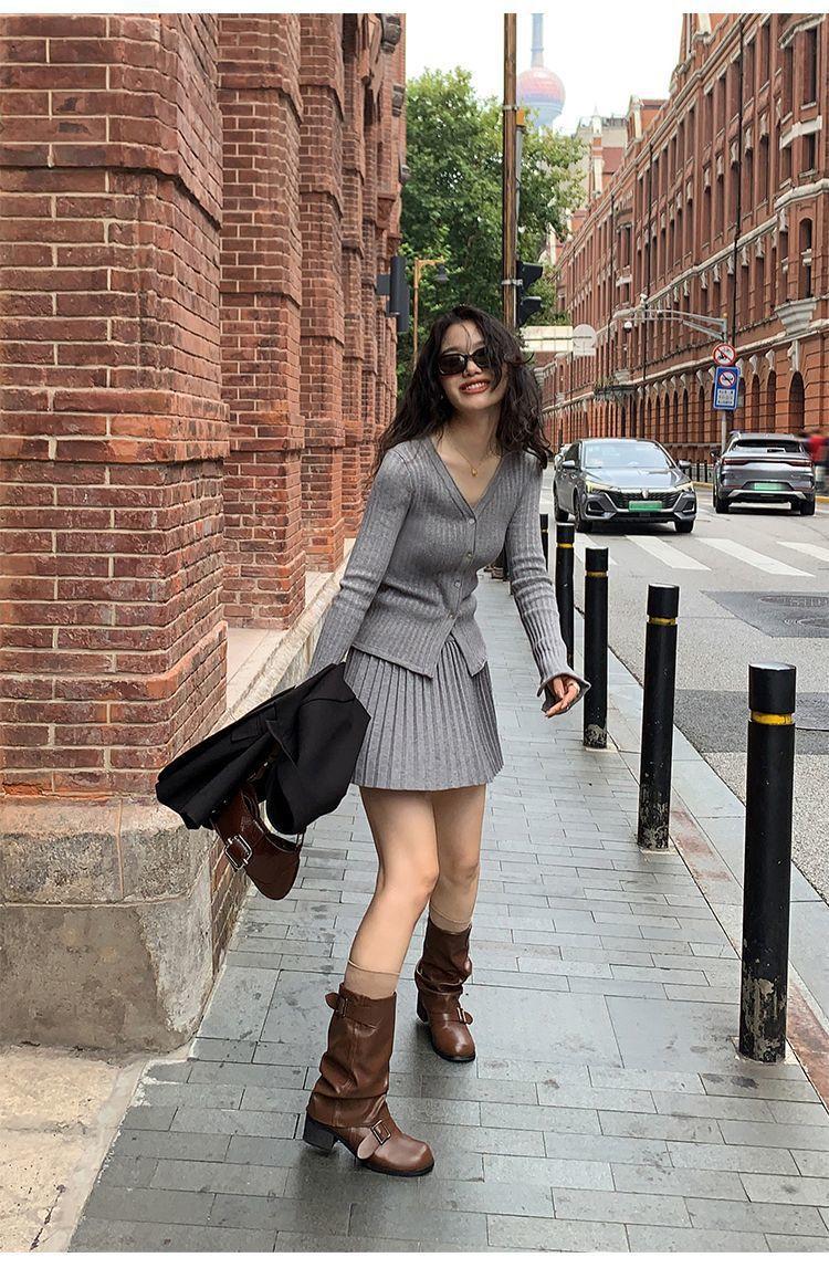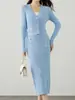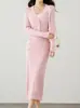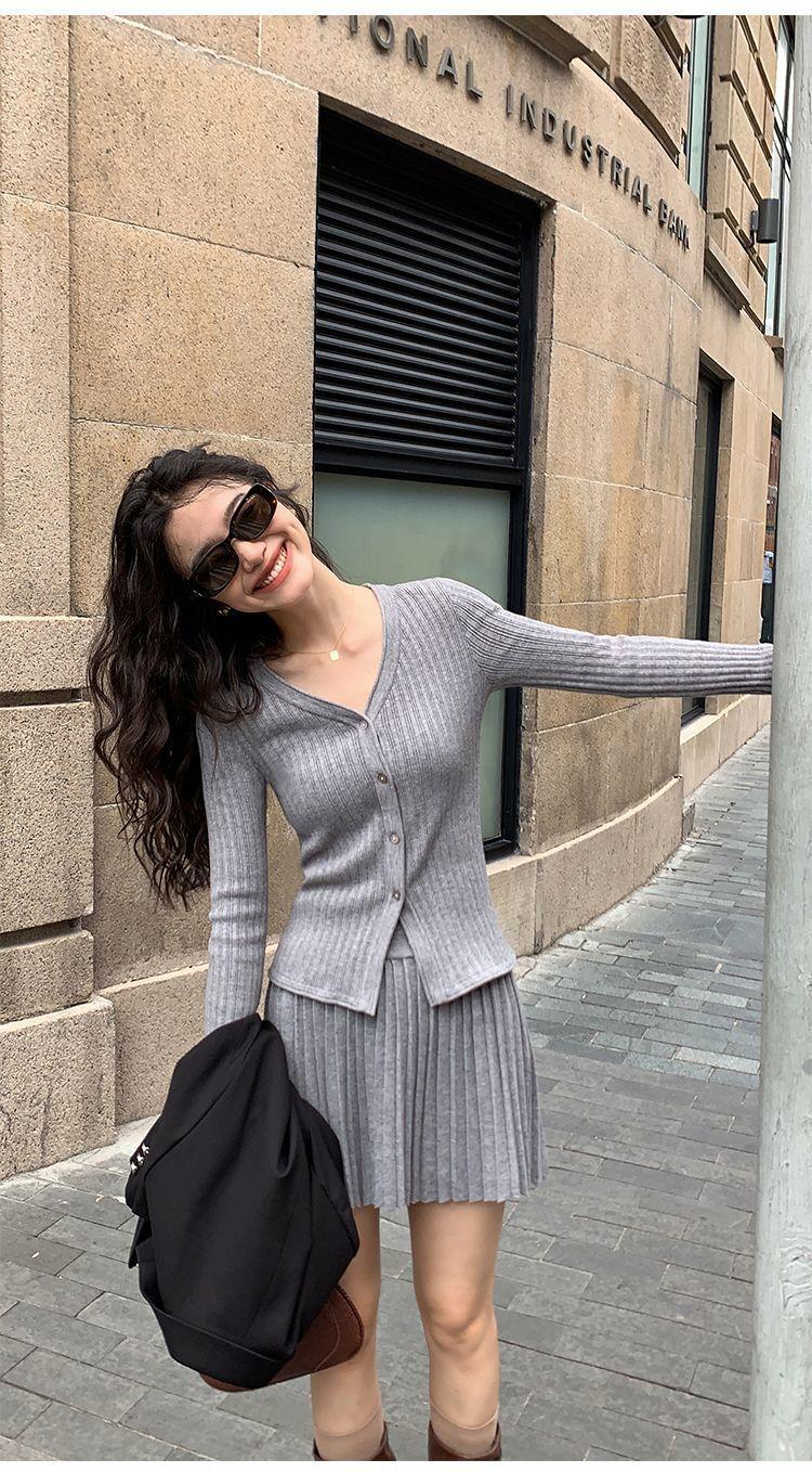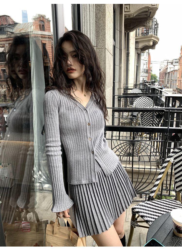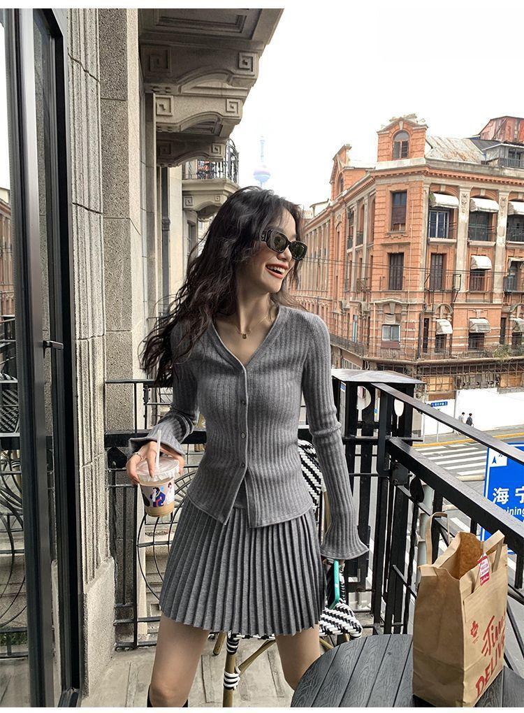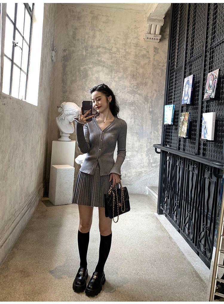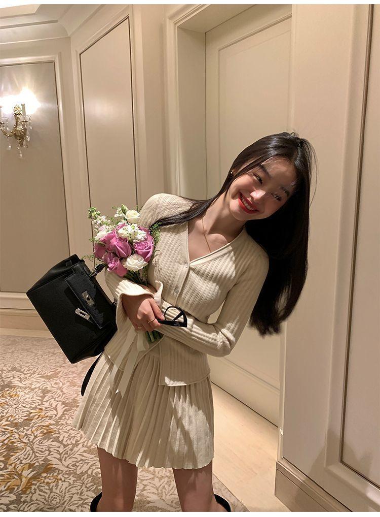 Conjunto de punto moderno y de moda otoño e invierno nuevo conjunto de punto de dos piezas temperamento pequeño ceñido a la cintura conjunto de falda plisada