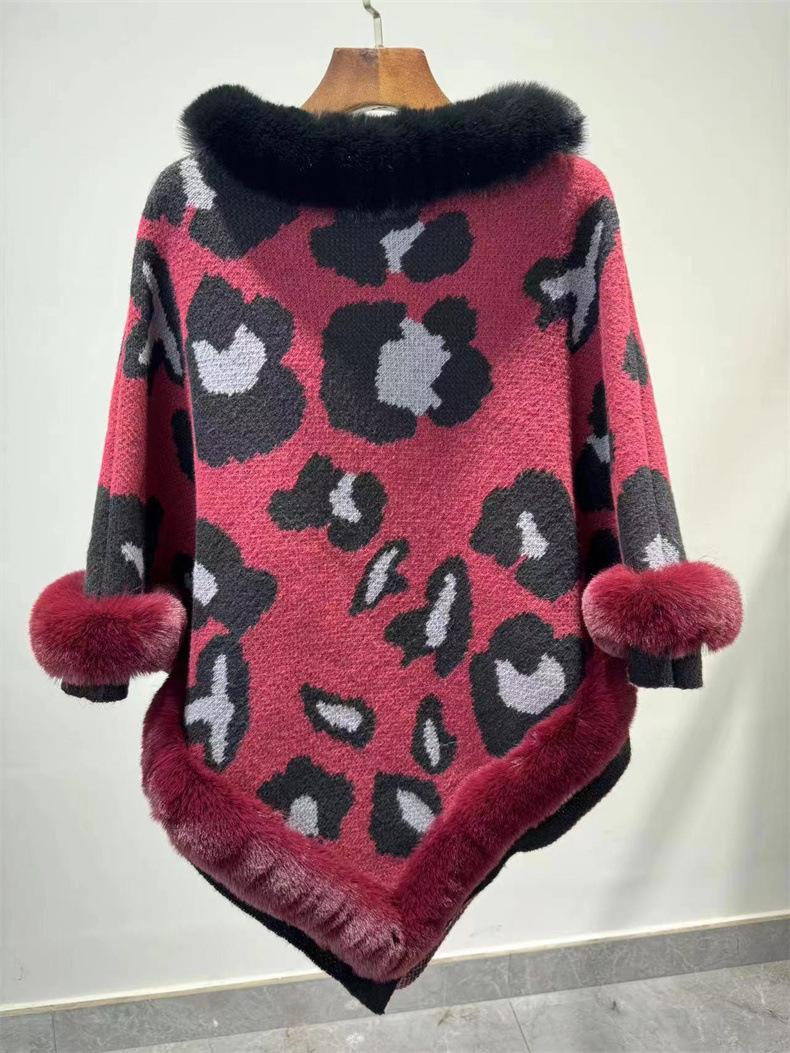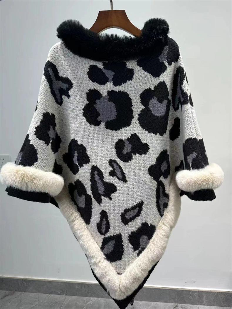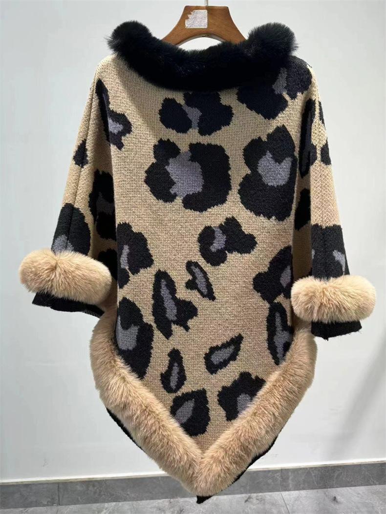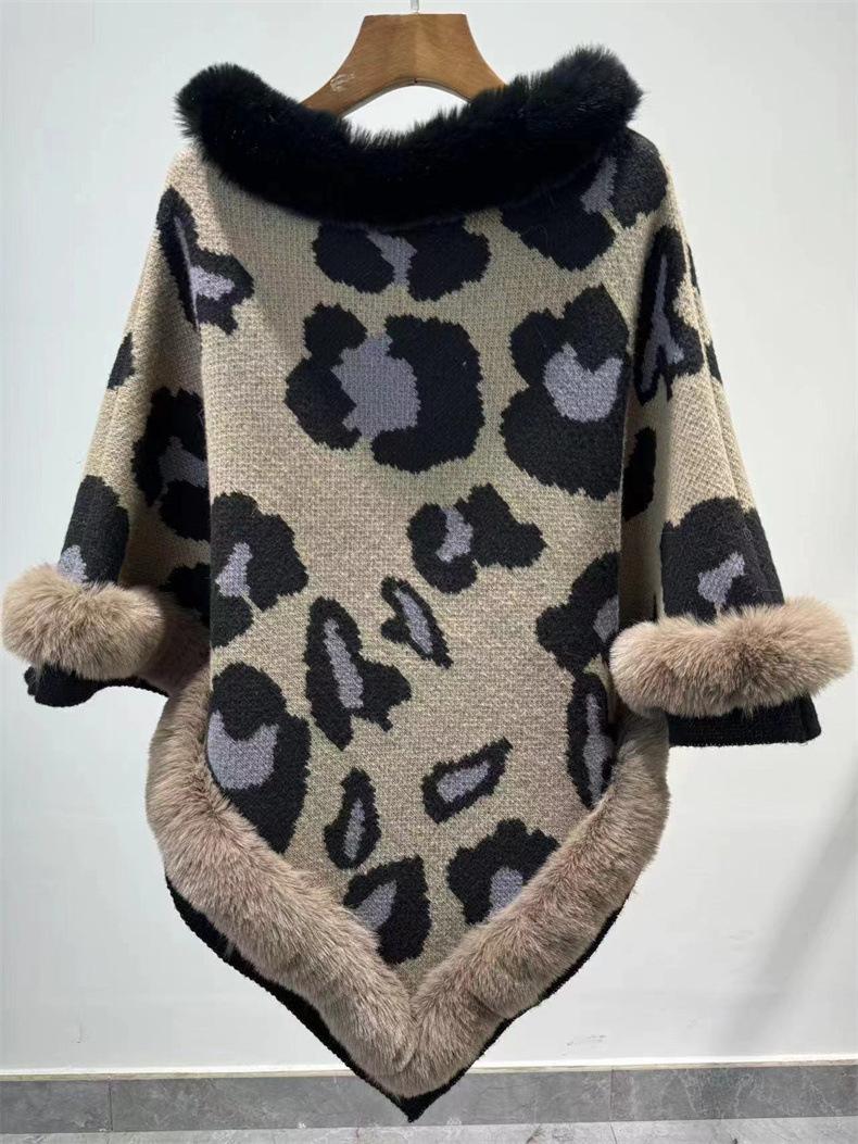 Top Cárdigan Chal de Punto Retro con Estampado de Leopardo Transfronterizo para Mujer Europeo y Americano Suelto Talla Grande Moda Chaqueta Capa Estampada