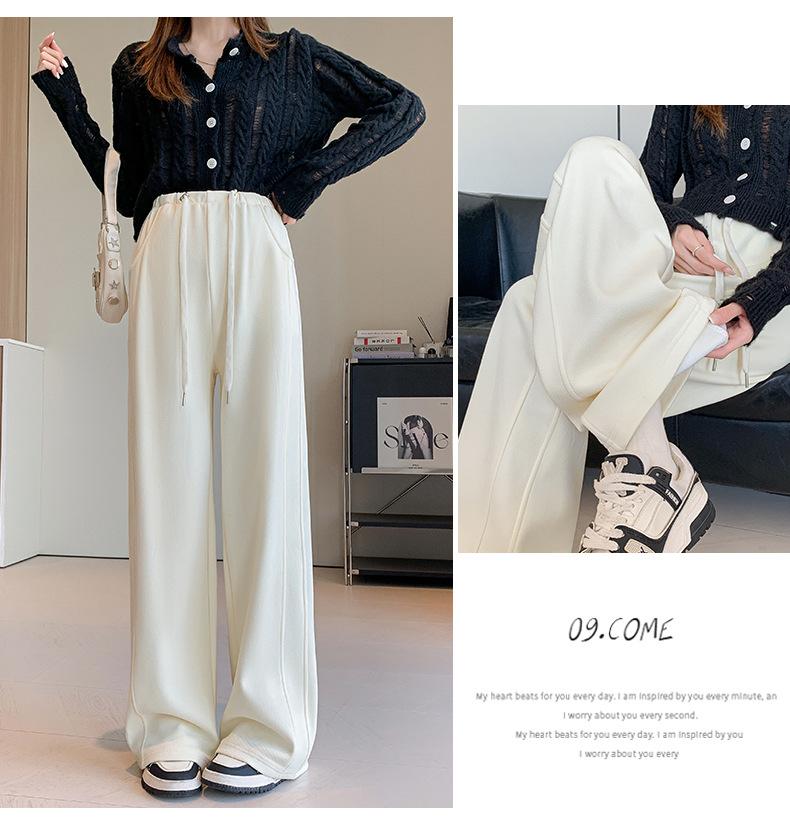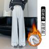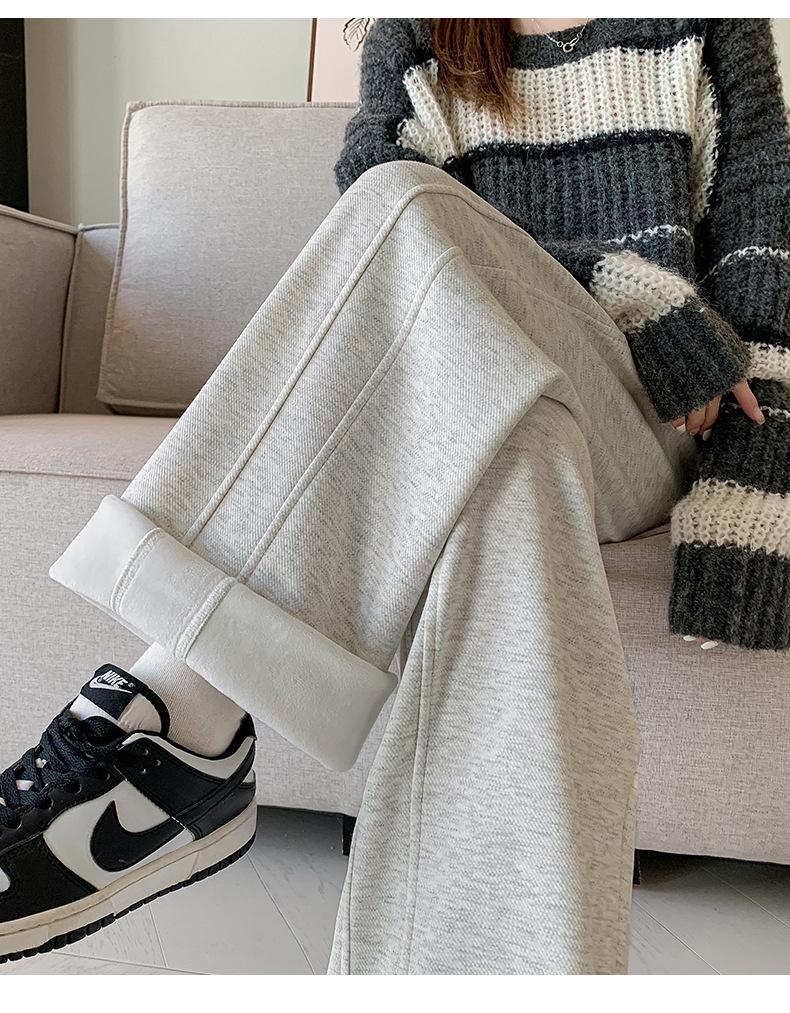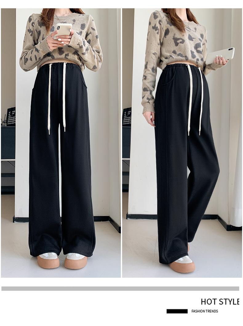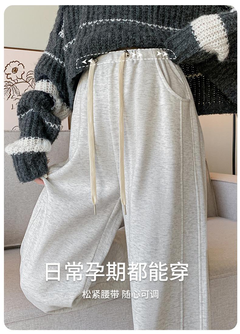 Pantalones de Pierna Ancha para Mujeres Embarazadas para Otoño e Invierno 2024 con Forro Polar Moda Sueltos Casuales Sin Soporte Abdominal Ajustables Pantalones de Mujer Embarazada