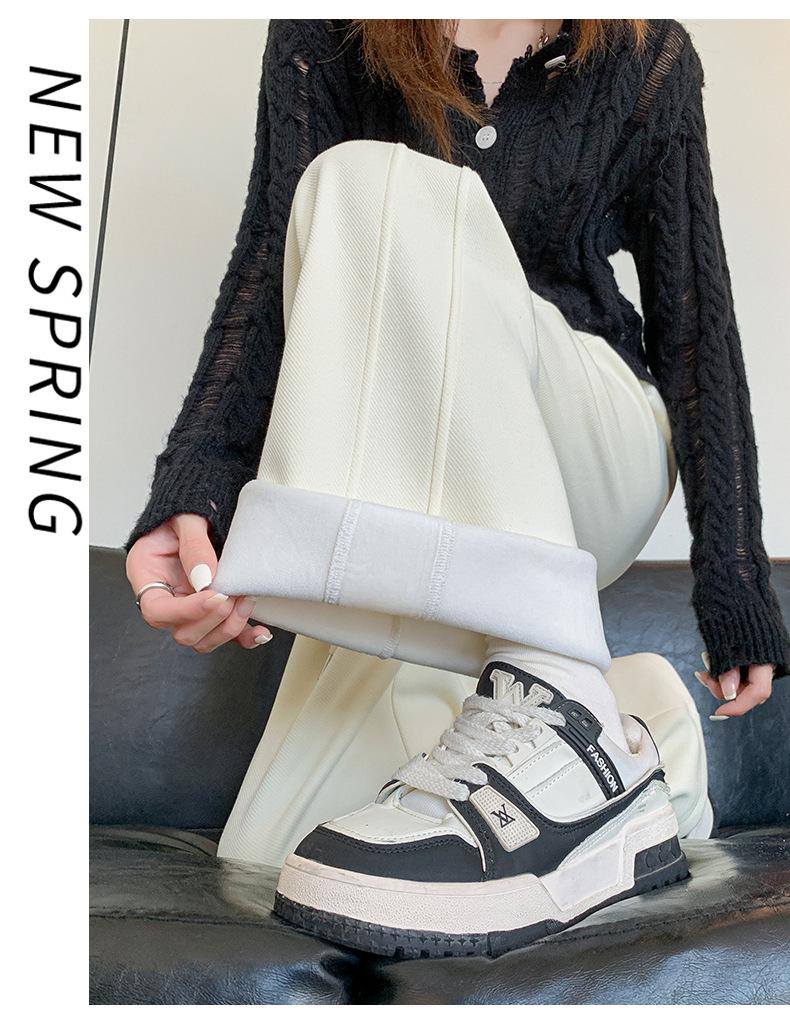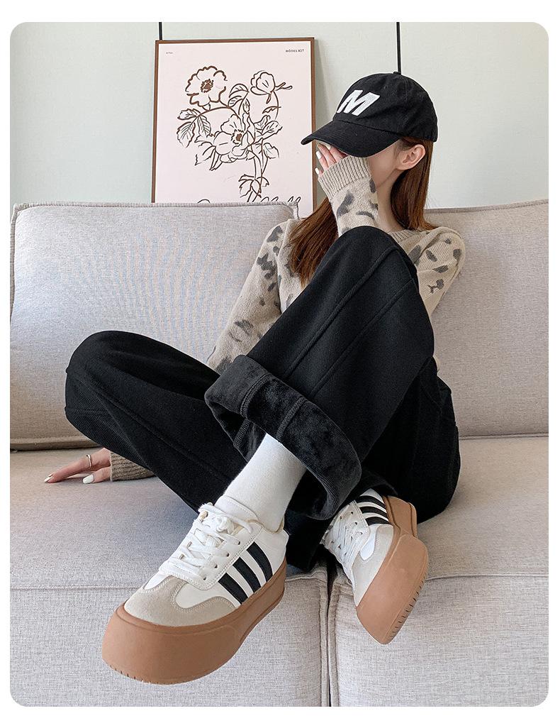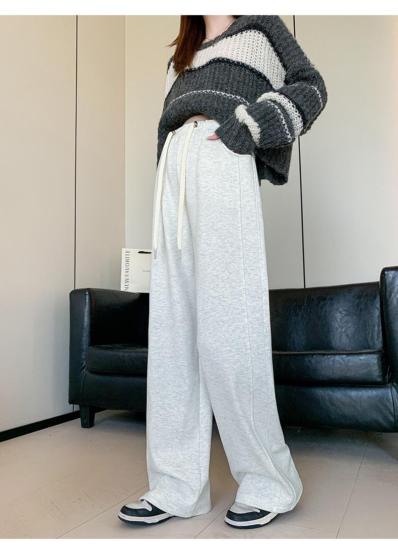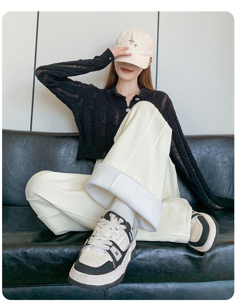 Pantalones de Pierna Ancha para Mujeres Embarazadas para Otoño e Invierno 2024 con Forro Polar Moda Sueltos Casuales Sin Soporte Abdominal Ajustables Pantalones de Mujer Embarazada