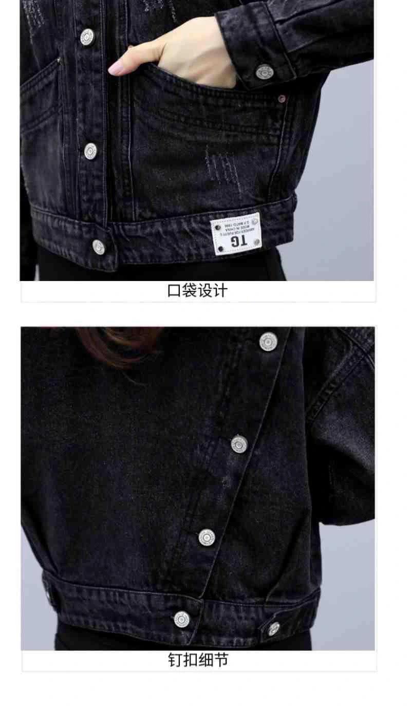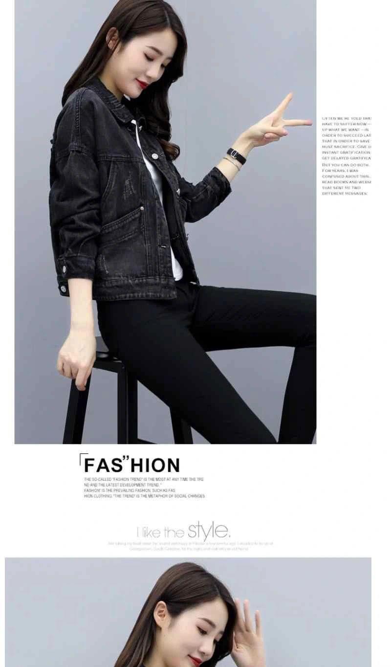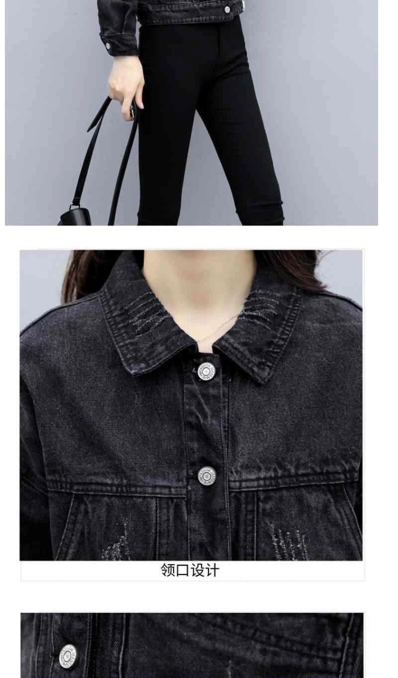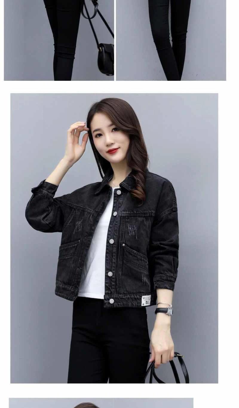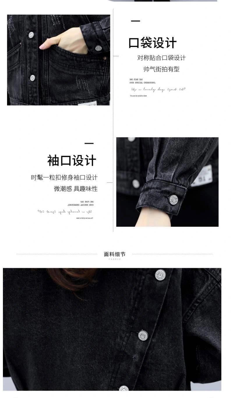 Abrigo vaquero negro estilo coreano para mujer, chaqueta informal holgada de primavera y otoño estilo Hong Kong, top corto a juego con temperamento para mujer