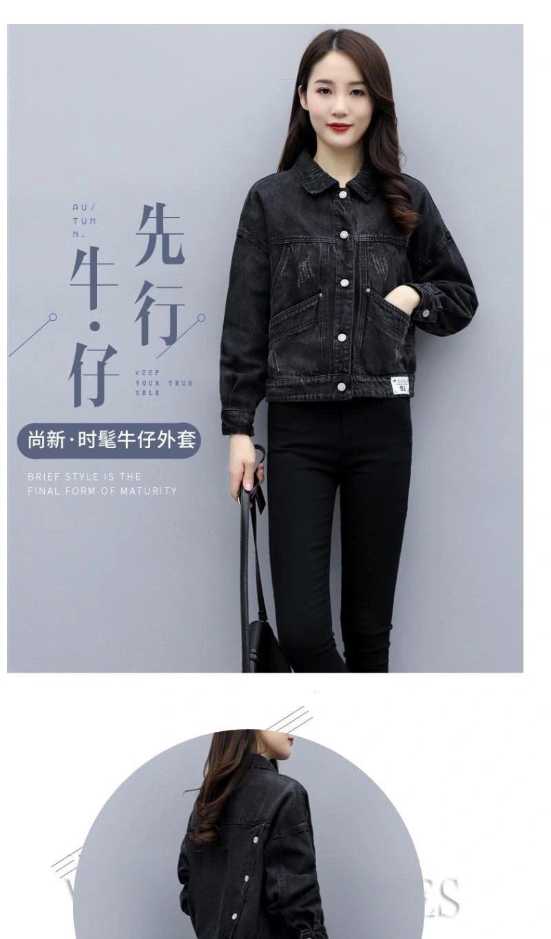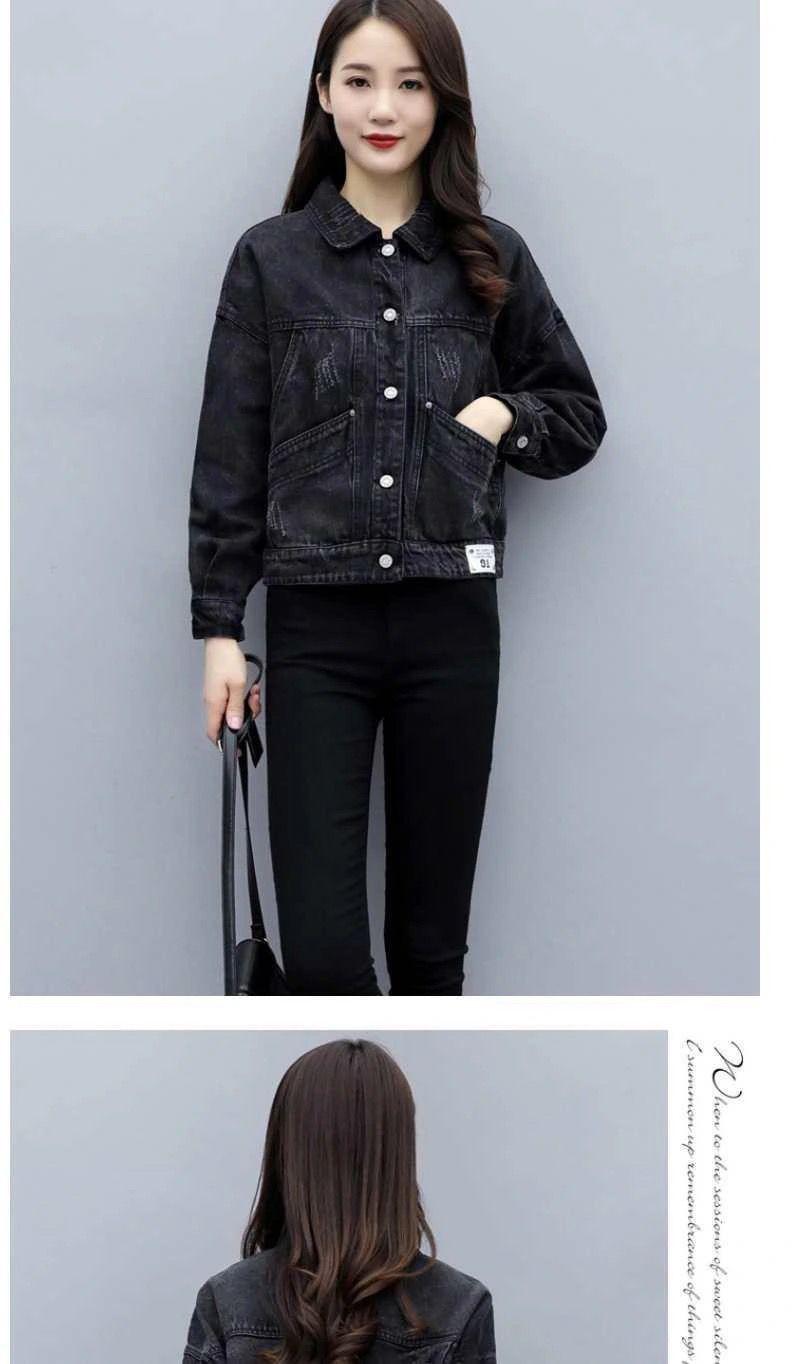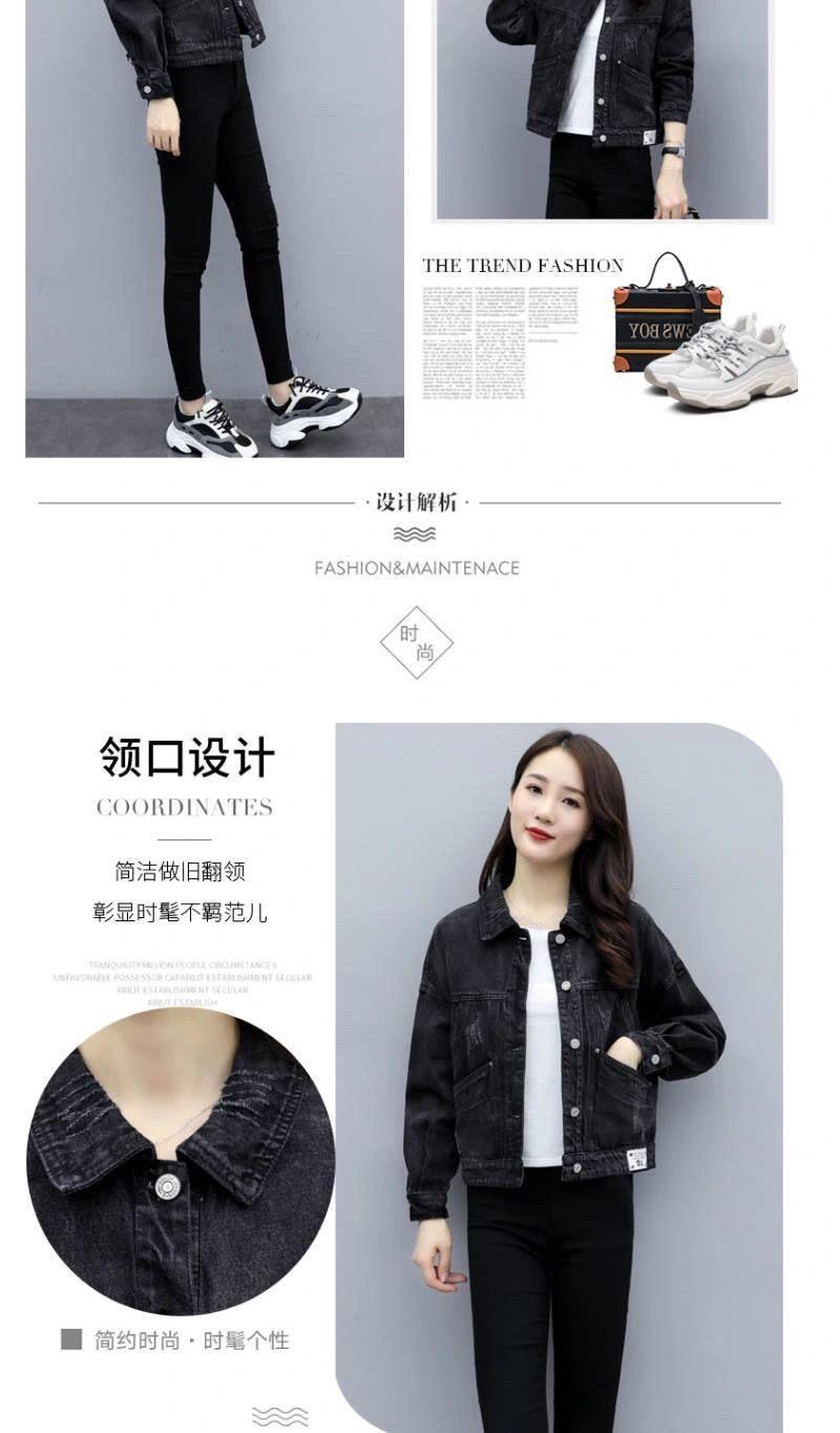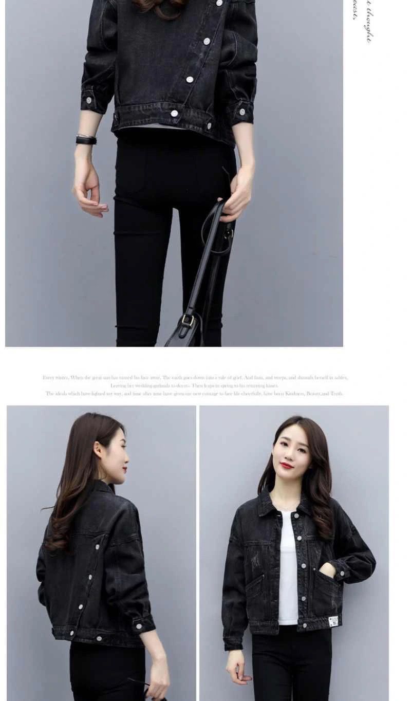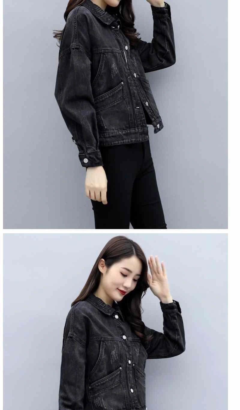 Abrigo vaquero negro estilo coreano para mujer, chaqueta informal holgada de primavera y otoño estilo Hong Kong, top corto a juego con temperamento para mujer