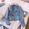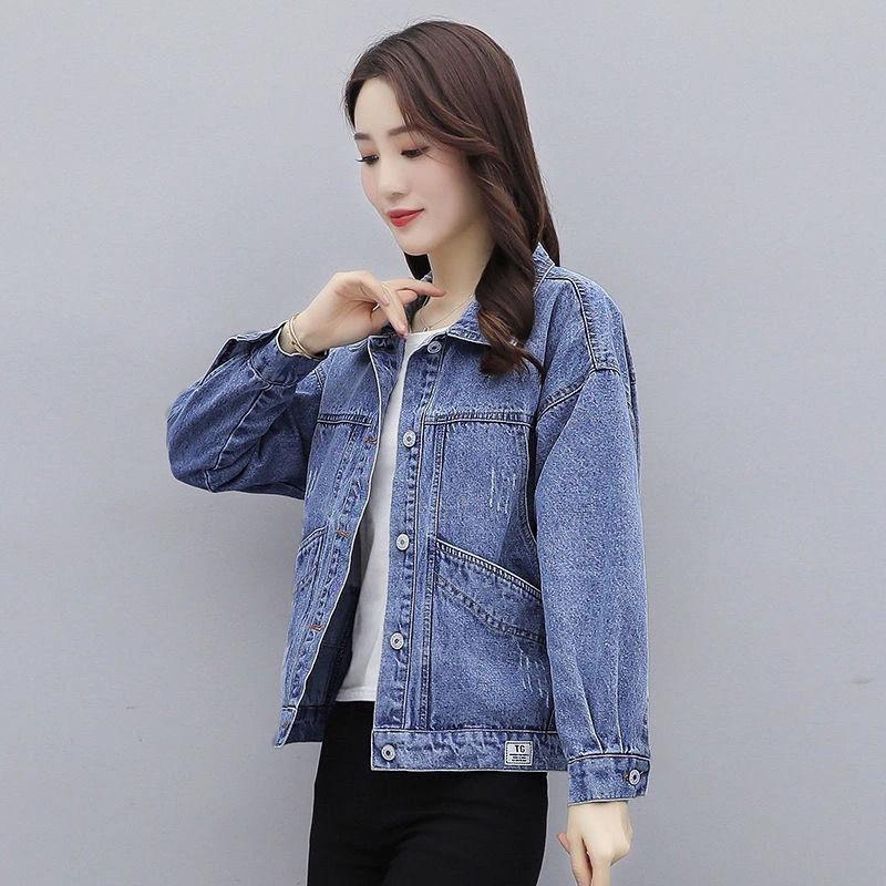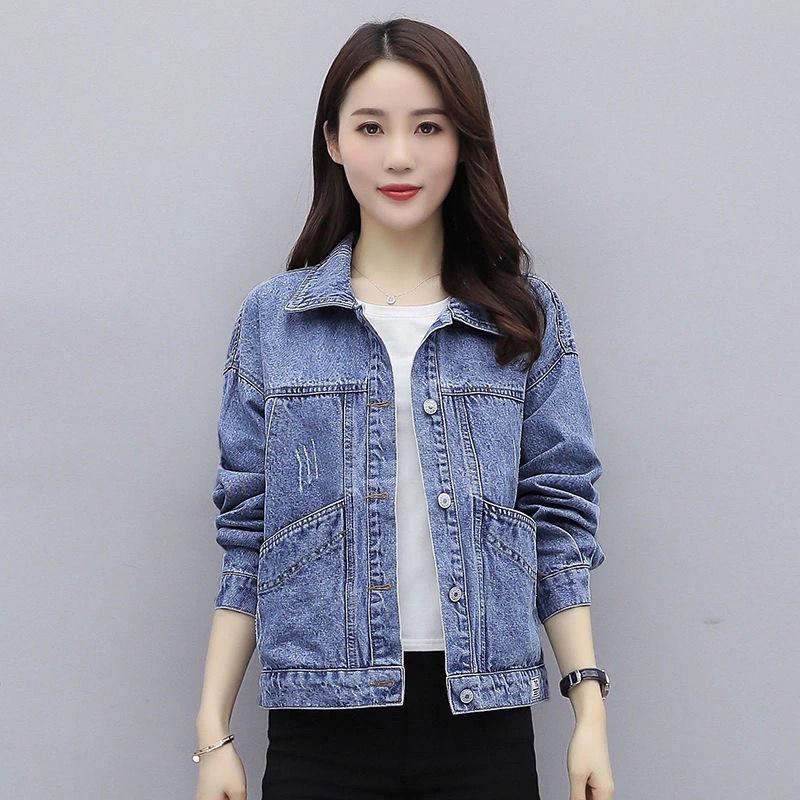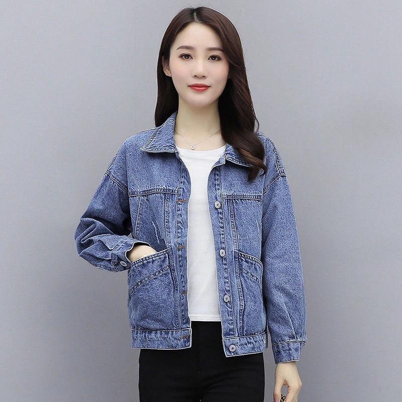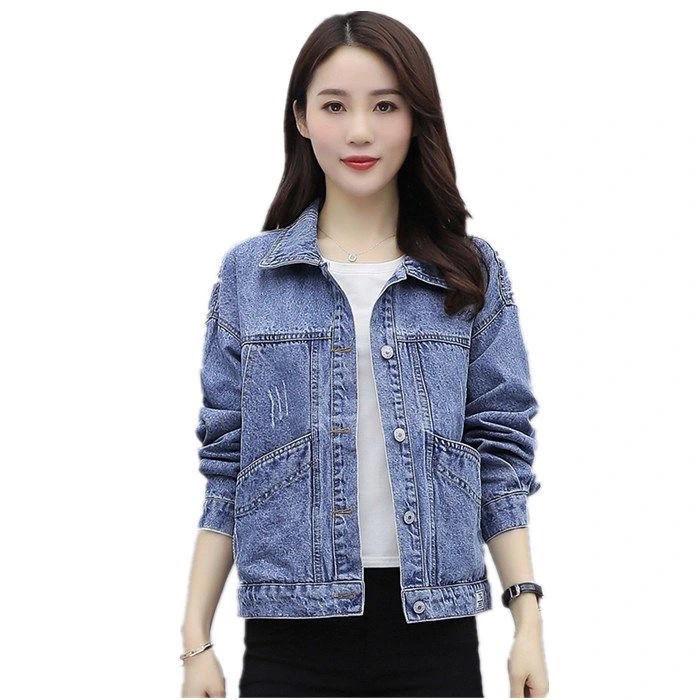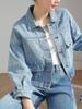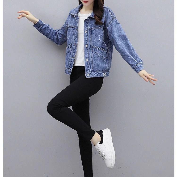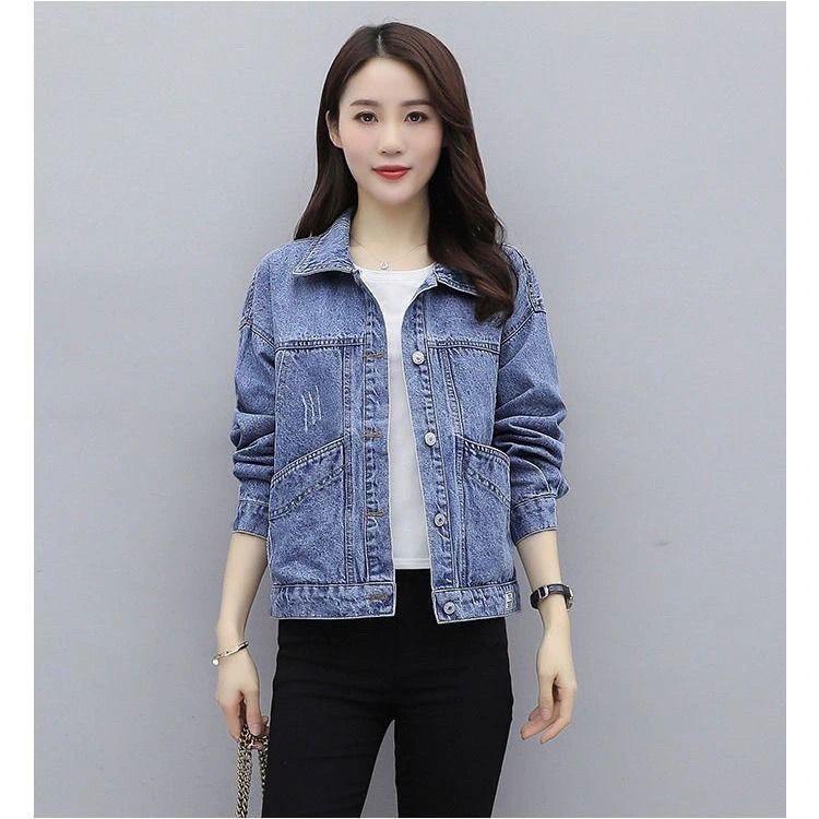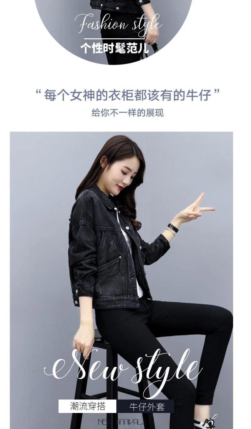 Abrigo vaquero negro estilo coreano para mujer, chaqueta informal holgada de primavera y otoño estilo Hong Kong, top corto a juego con temperamento para mujer