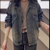 Chaqueta de mezclilla para mujer de talla grande 2023 Otoño Nueva Chaqueta Top Manga Larga Regular Versátil Damas Suelta Algodón