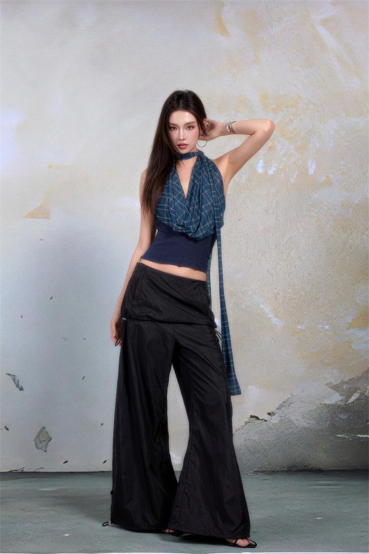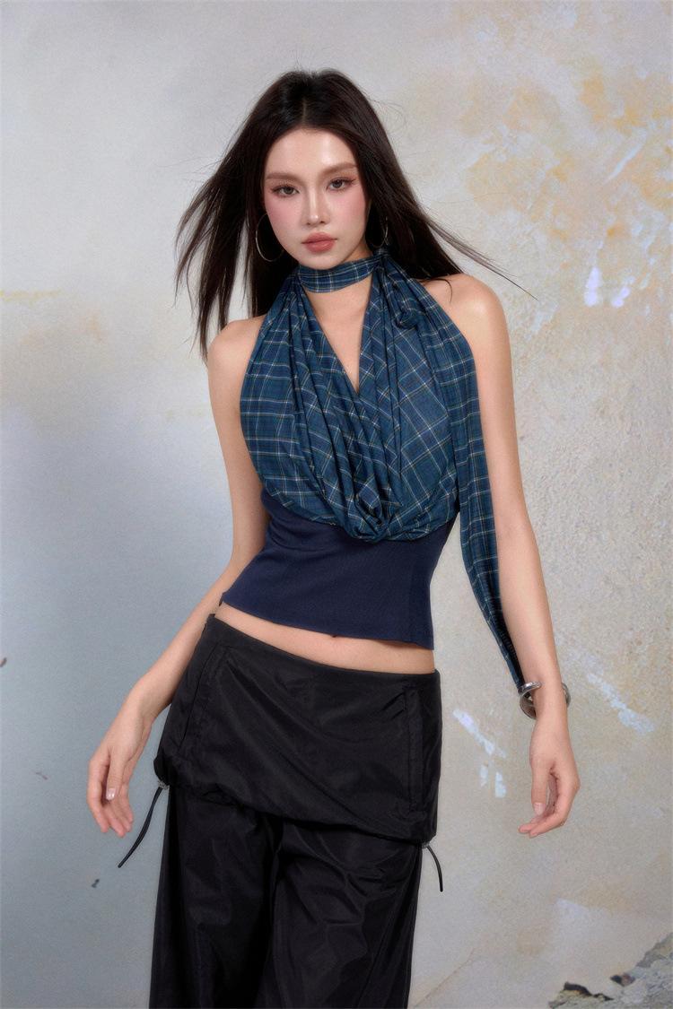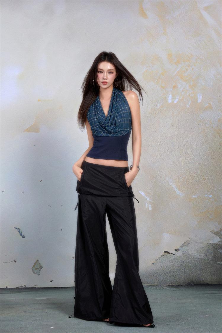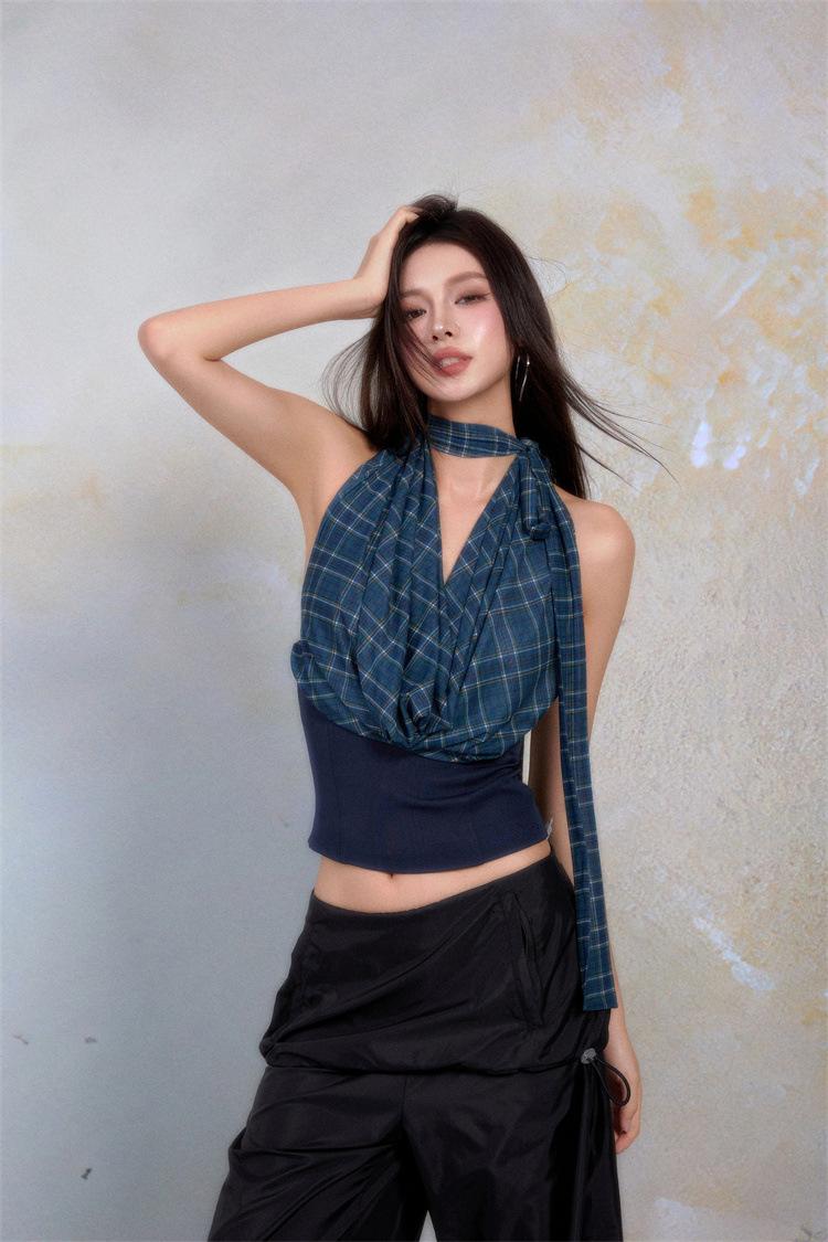 Foto real en stock Cuello de malla Dobladillo con cuello oscilante Cintura ajustada Top