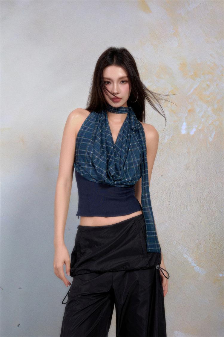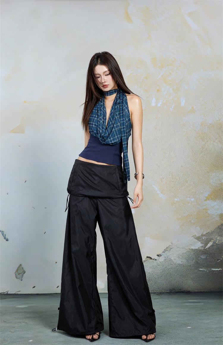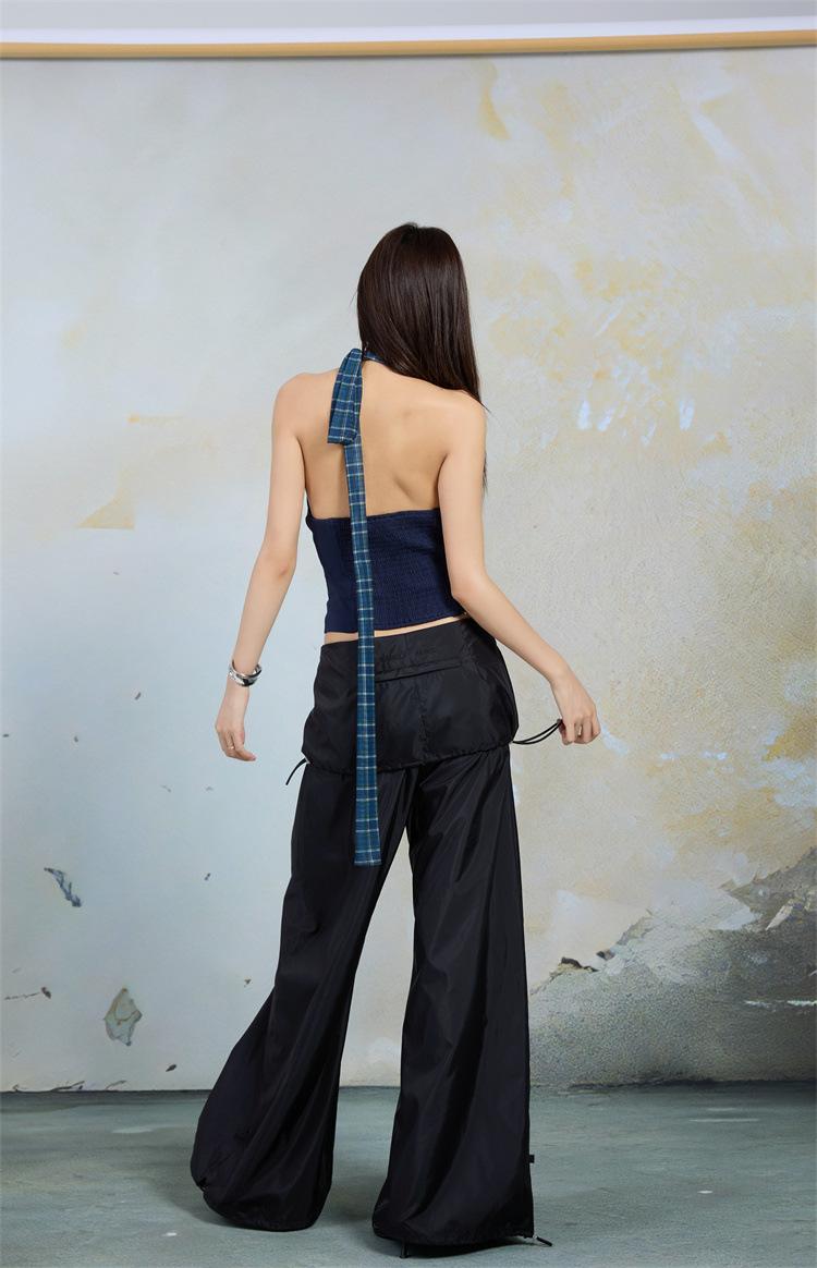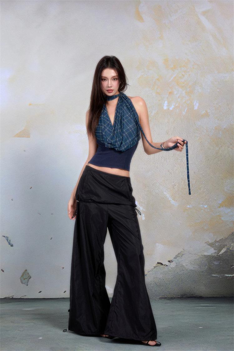 Foto real en stock Cuello de malla Dobladillo con cuello oscilante Cintura ajustada Top