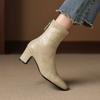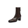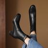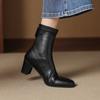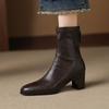 Botas de Moda de Suela Blanda de Tendón para Mujer, Cuero Genuino, Tacón Alto, Punta Redonda, Talla Grande, Botas para Mujer Otoño e Invierno, Cierre Trasero, Botas de Media Caña