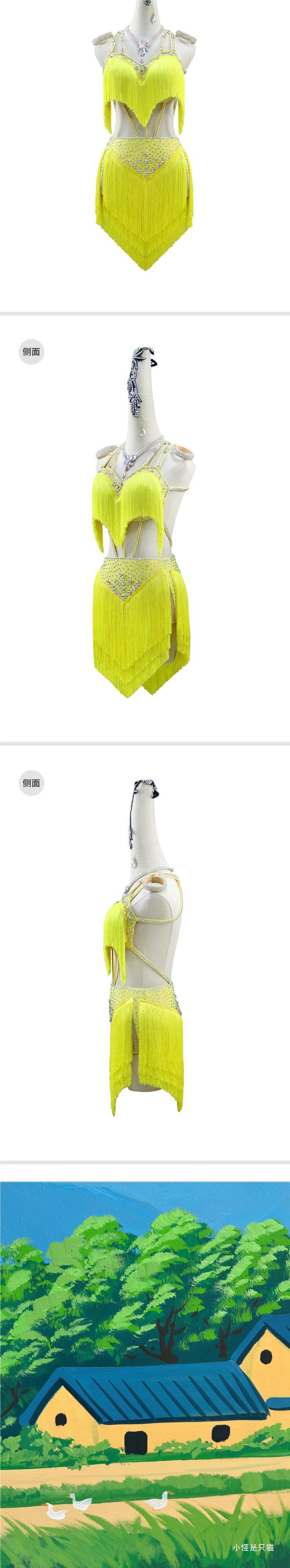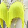2025 Amarillo Competencia de Baile Latino Traje de Flores Profesional Actuación de Baile Vestido de Flecos Blackpool Sexy Samba Solo