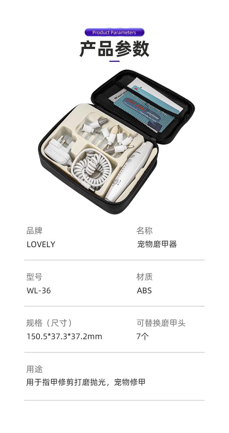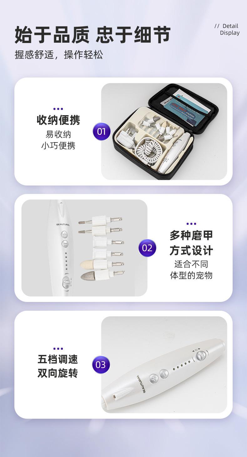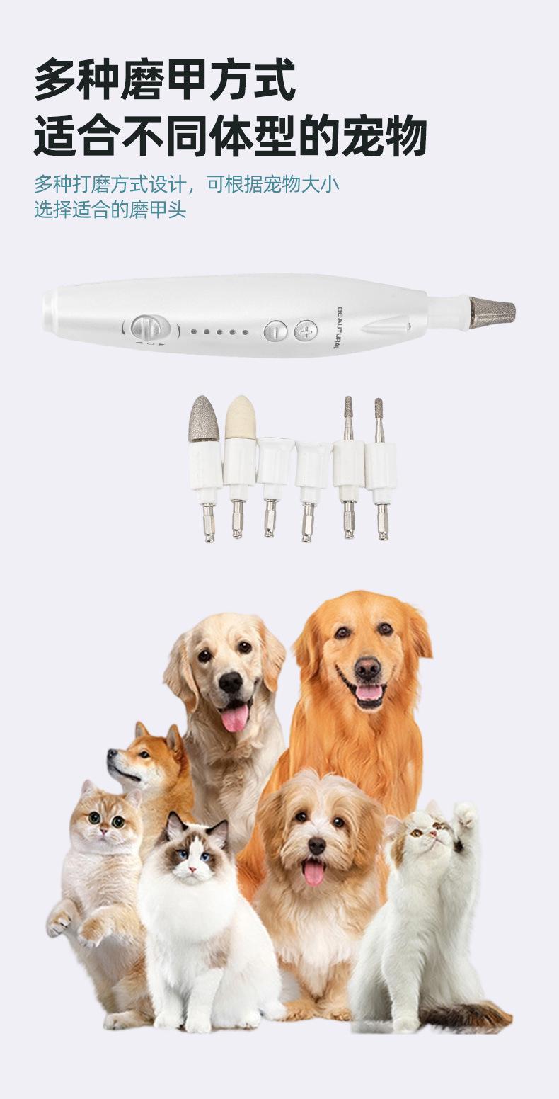 Lima de Uñas para Mascotas Transfronteriza Ajustable de 5 Velocidades Luz LED Eléctrico de Enchufe Cortauñas Mascota Gato