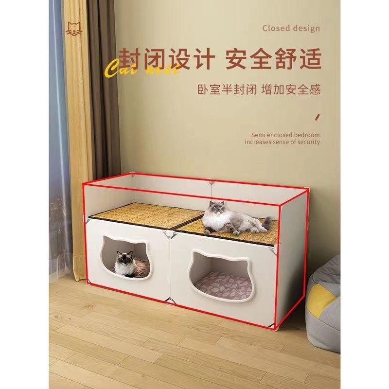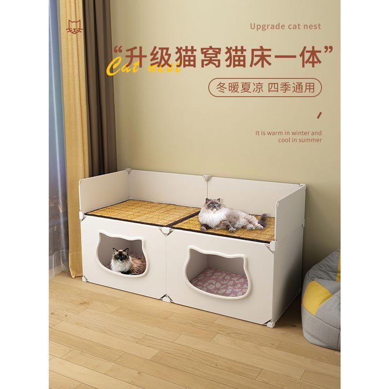 Casa para gatos semi-cerrada Nido para gatos Casa integrada cuatro estaciones universal Nido para gatos pequeña Villa multicapa