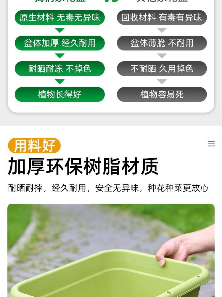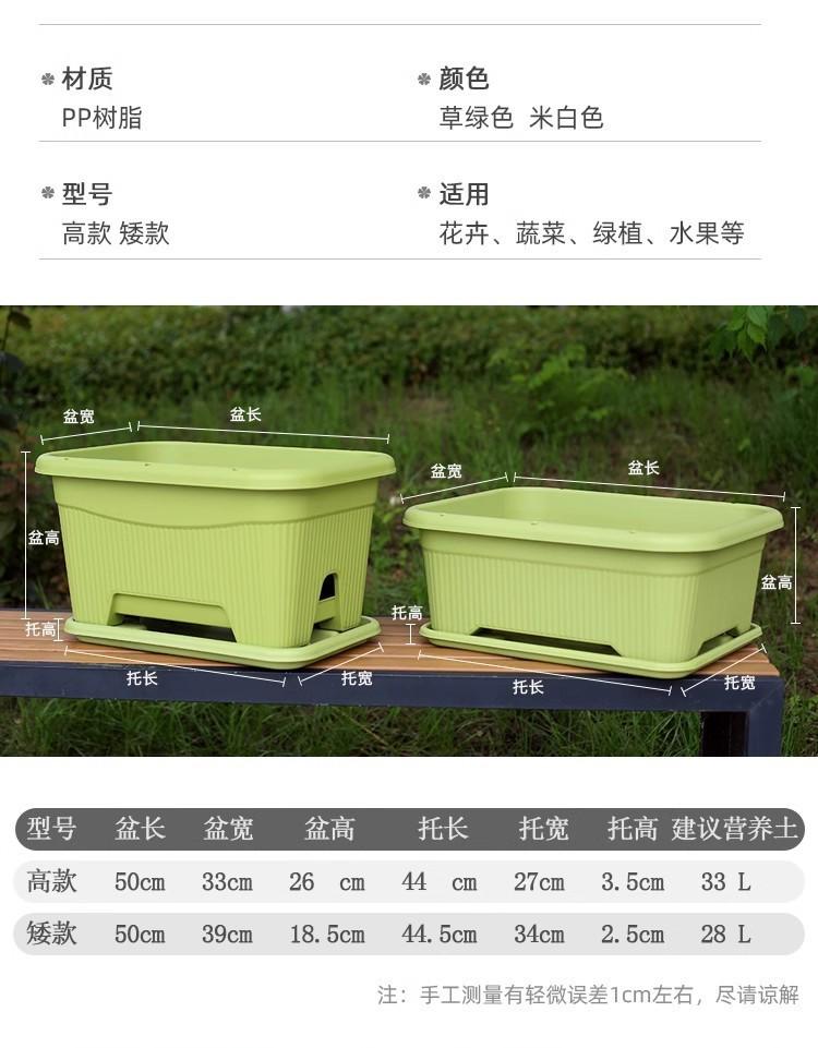 Maceta de plástico para balcón, para plantar verduras, fresas, flores, grande, larga, para exteriores