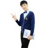 Men's blue shirt + blue cardigan + black trousers + blue bow tie 6XL