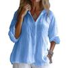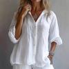 Transfronterizo 2025 Primavera y Otoño Nuevo Color Puro Tops Casuales Camisas Señoras Europeas y Americanas Elegantes Camisas de Algodón y Lino de Manga Larga con Botones