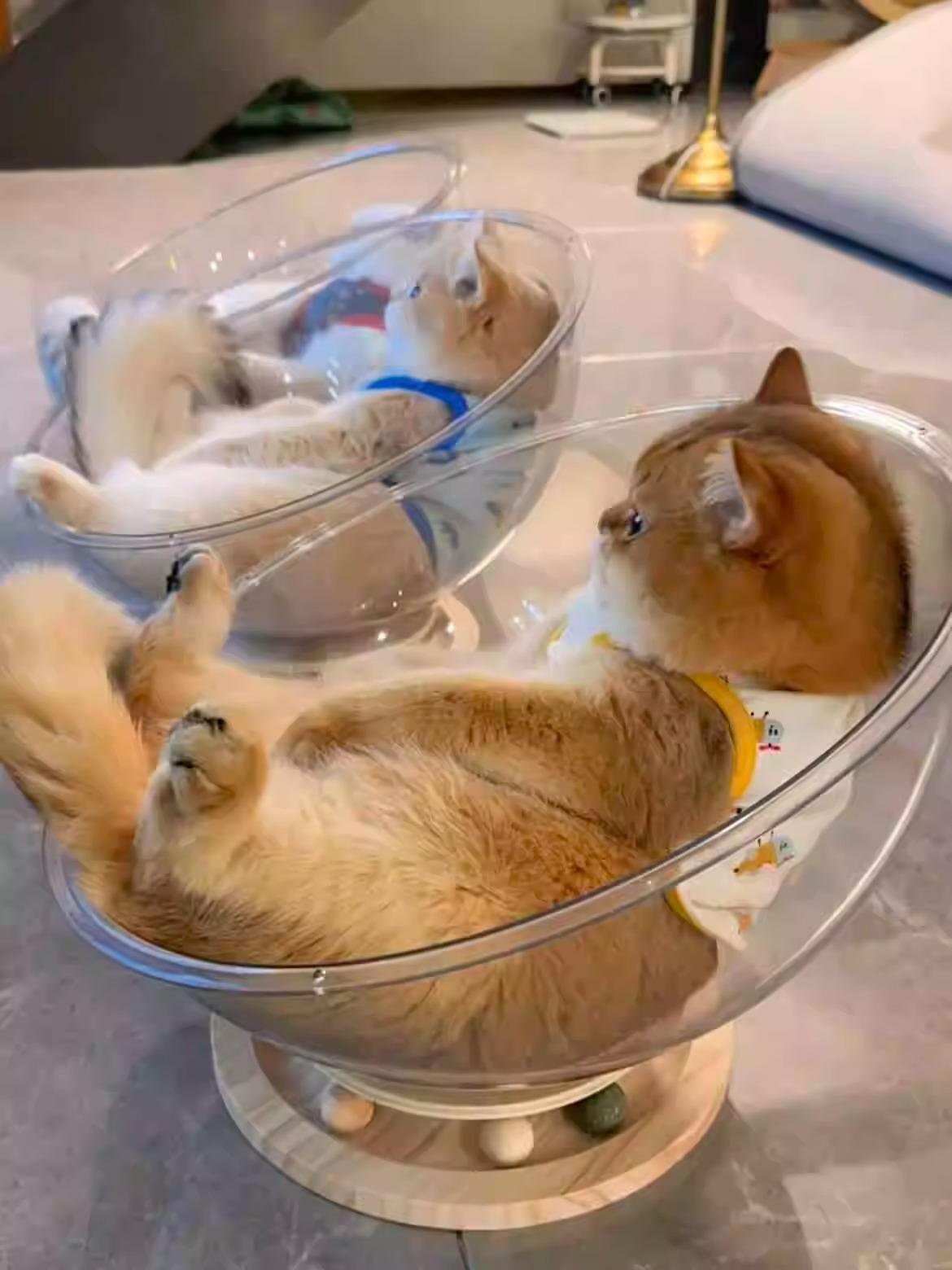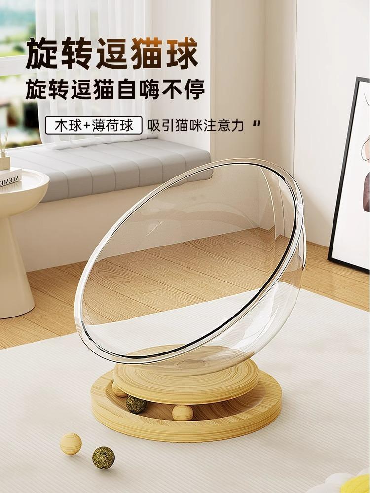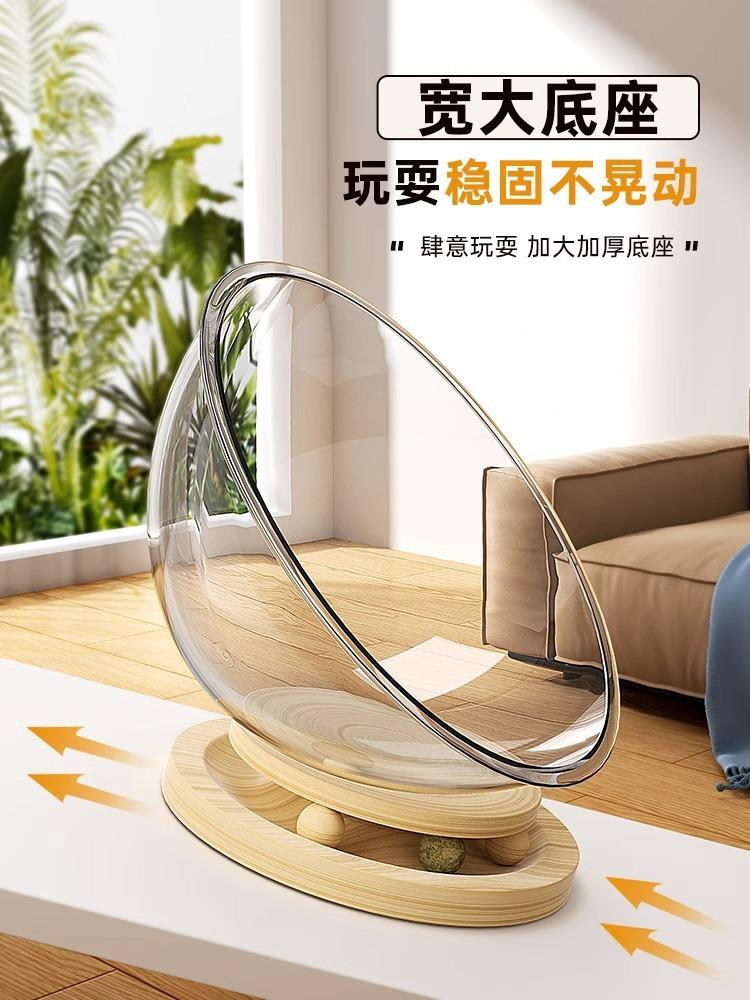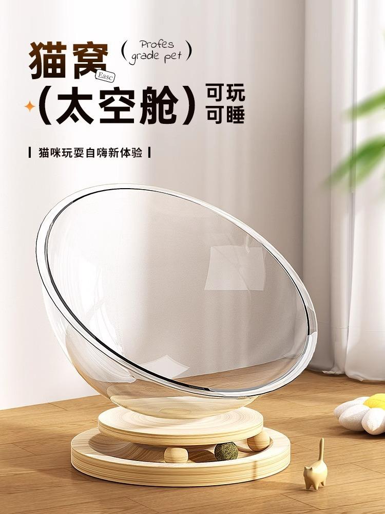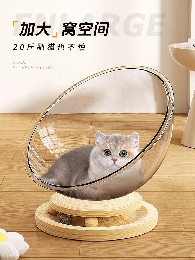 Cama para Gato Cápsula Espacial Calidez Invernal Universal para Cuatro Estaciones Acrílico de Alta Transparencia Madera Maciza Plato Giratorio Juguete para Gato Suministros para Mascotas