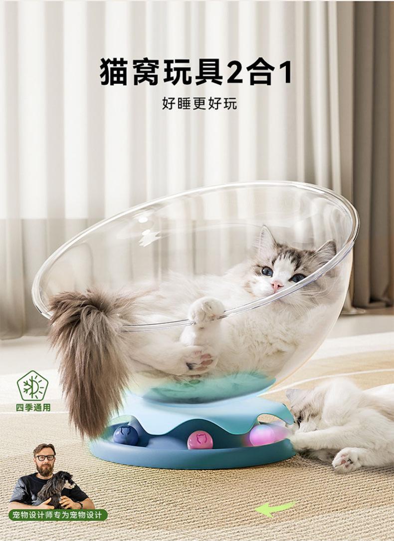 Nido para Gatos Cápsula Espacial Invierno Cálido Universal Cuatro Estaciones Campana Acrílica de Alta Transparencia Plato Giratorio Juguete para Gatos Cama para Gatos Integrado