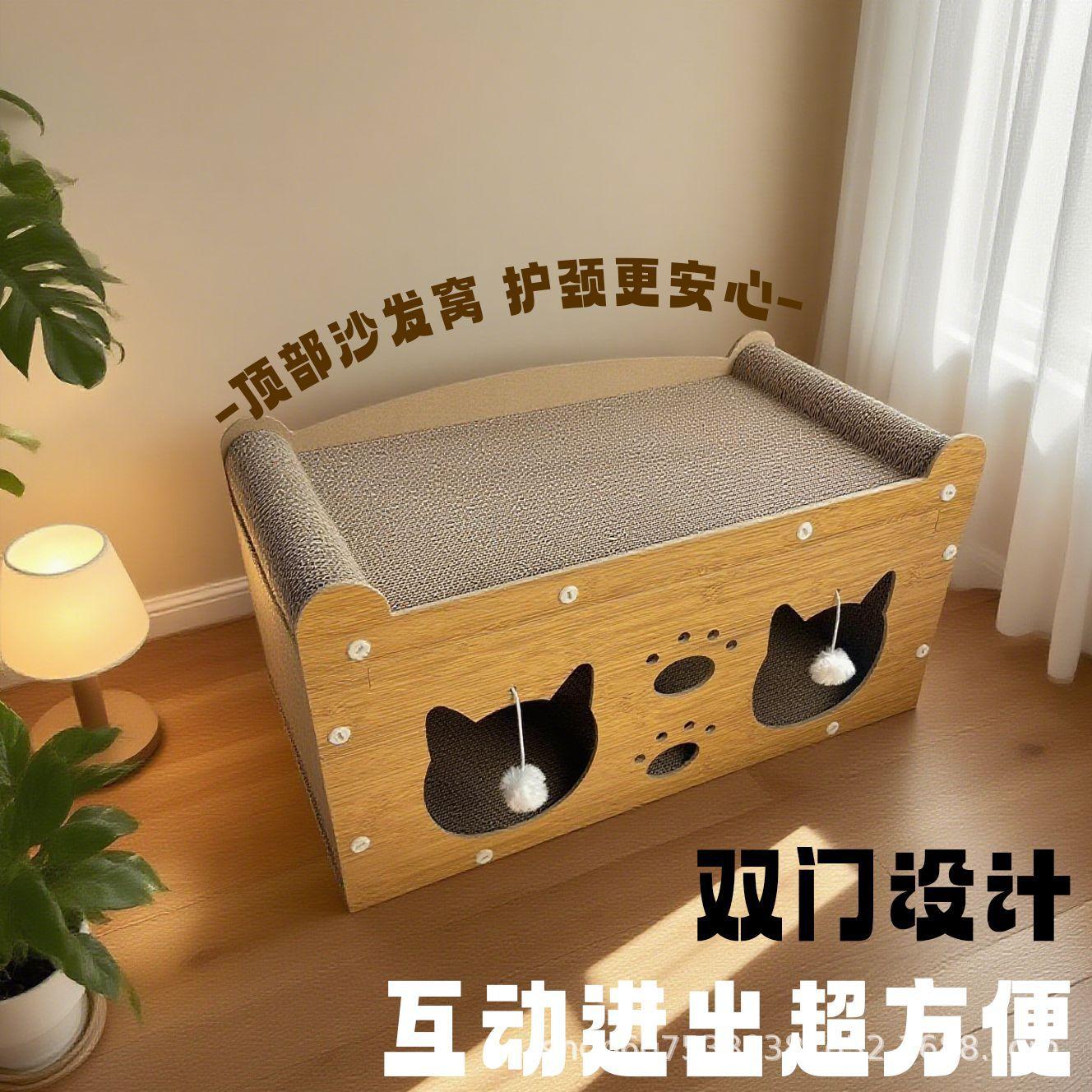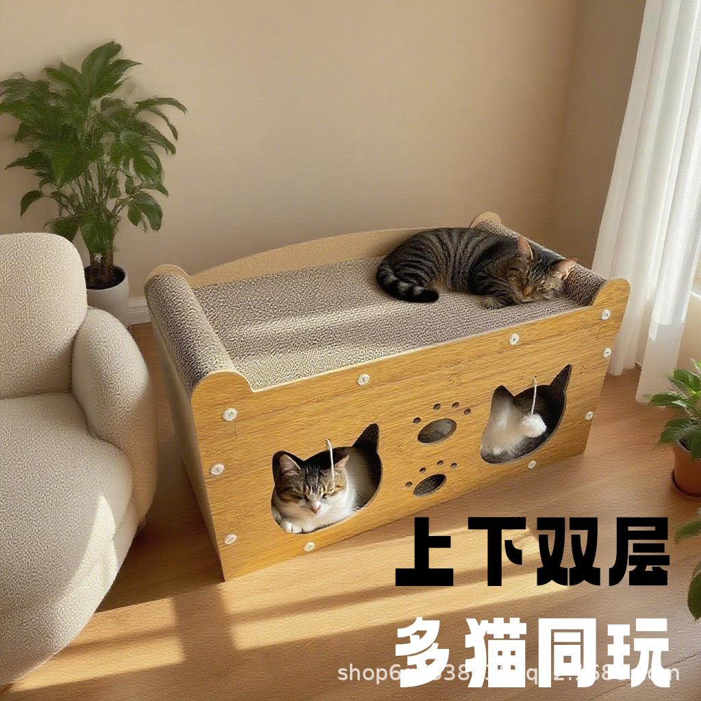 Tabla para Rascar Gatos Sofá para Gatos Integrado Villa Vertical para Gatos Cama para Gatos Doble Capa Resistente al Desgaste Resistente a los Arañazos No Desprende Restos de Papel Cartón Corrugado Juguete para Gatos