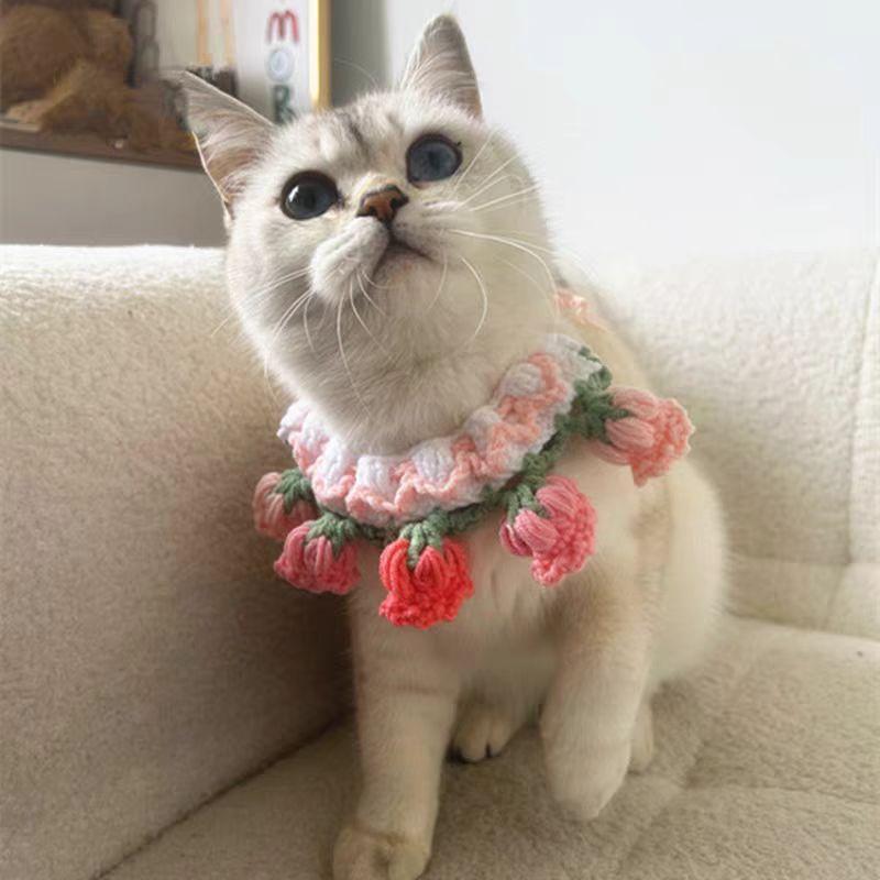 Babero para mascotas tejido campanilla babero para babeo gato perro estilo ins calentador de cuello cuello estilo lindo accesorios para fotos