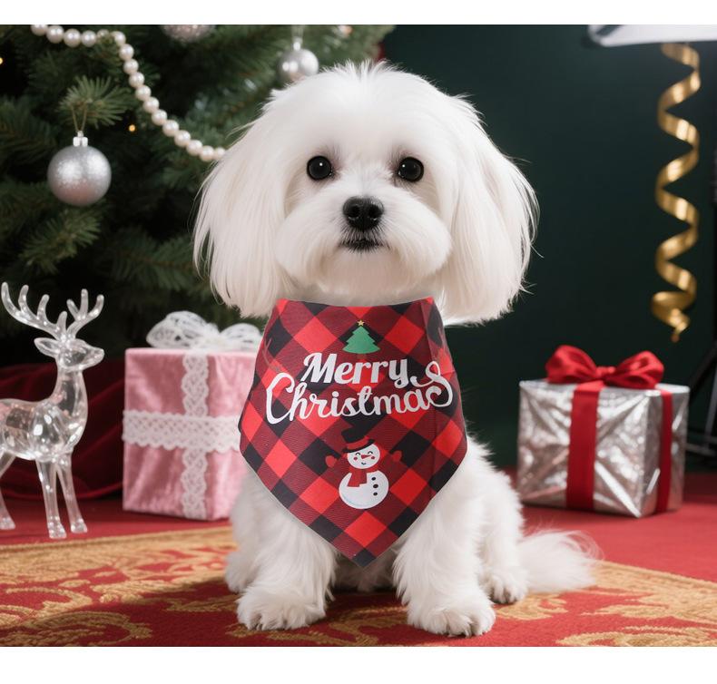 Babero Navideño para Mascotas Transfronterizo Gato Perro Pequeño Decoración Linda Teddy Pomerania Bufanda Triangular