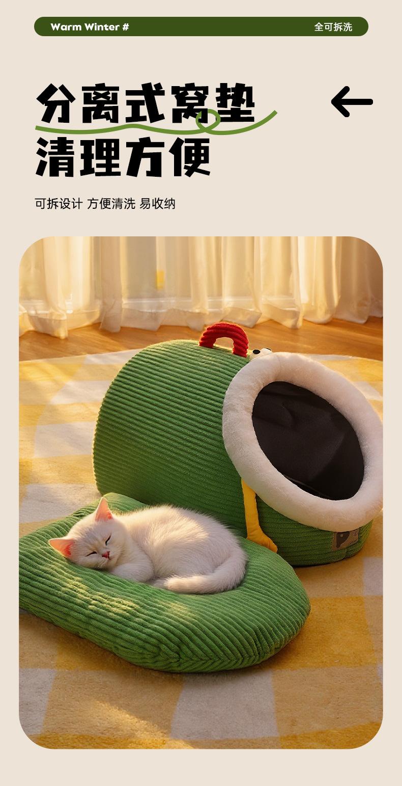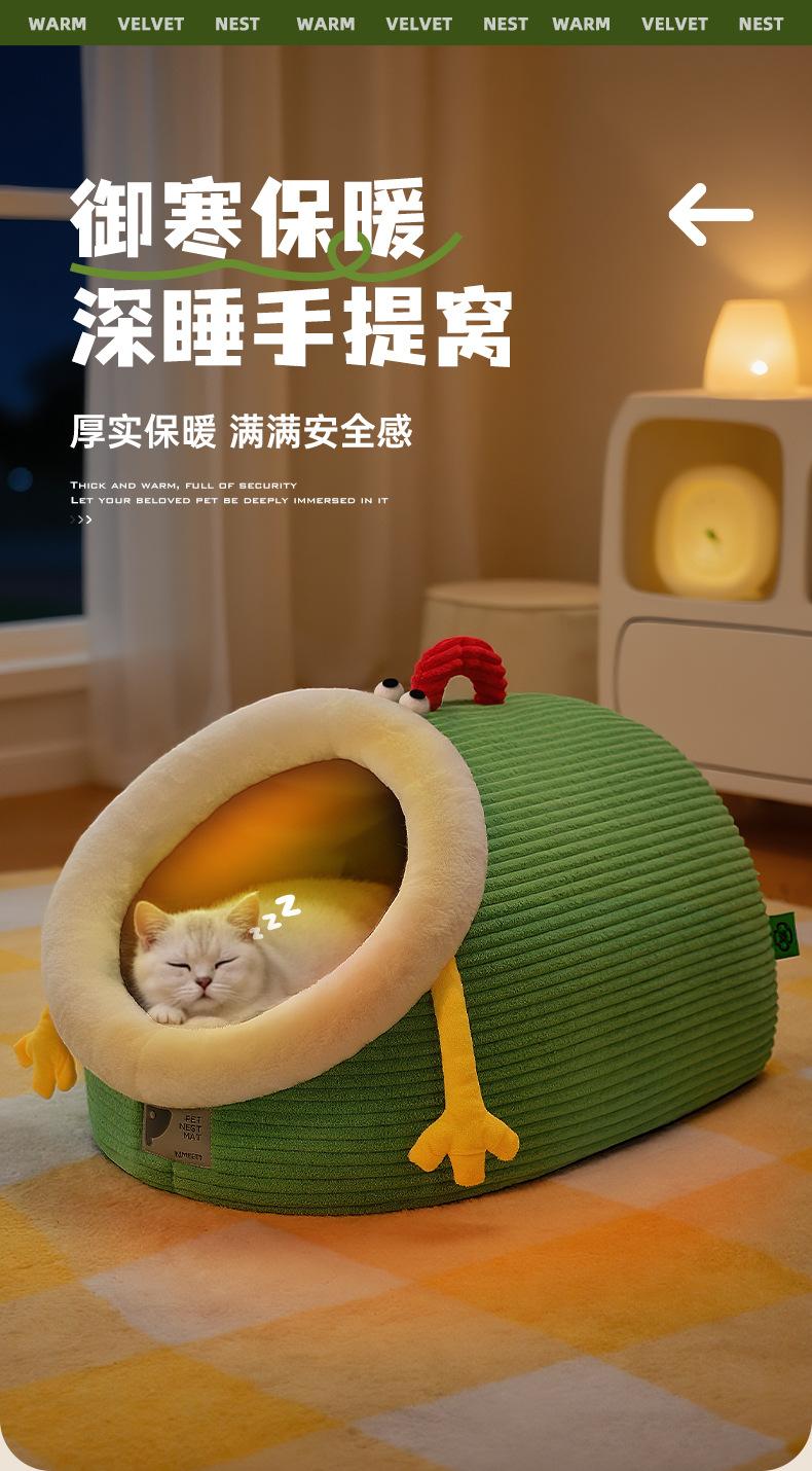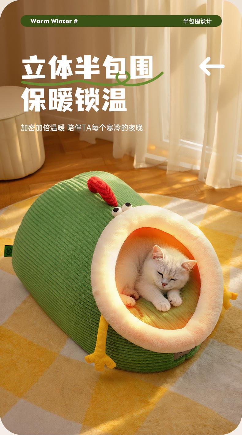 Cama Cálida para Gatos Otoño/Invierno 2025 Verde Cama Portátil para Mascotas Universal para las Cuatro Estaciones Cama para Perros Mansión para Gatos Nido para Dormir Transfronterizo