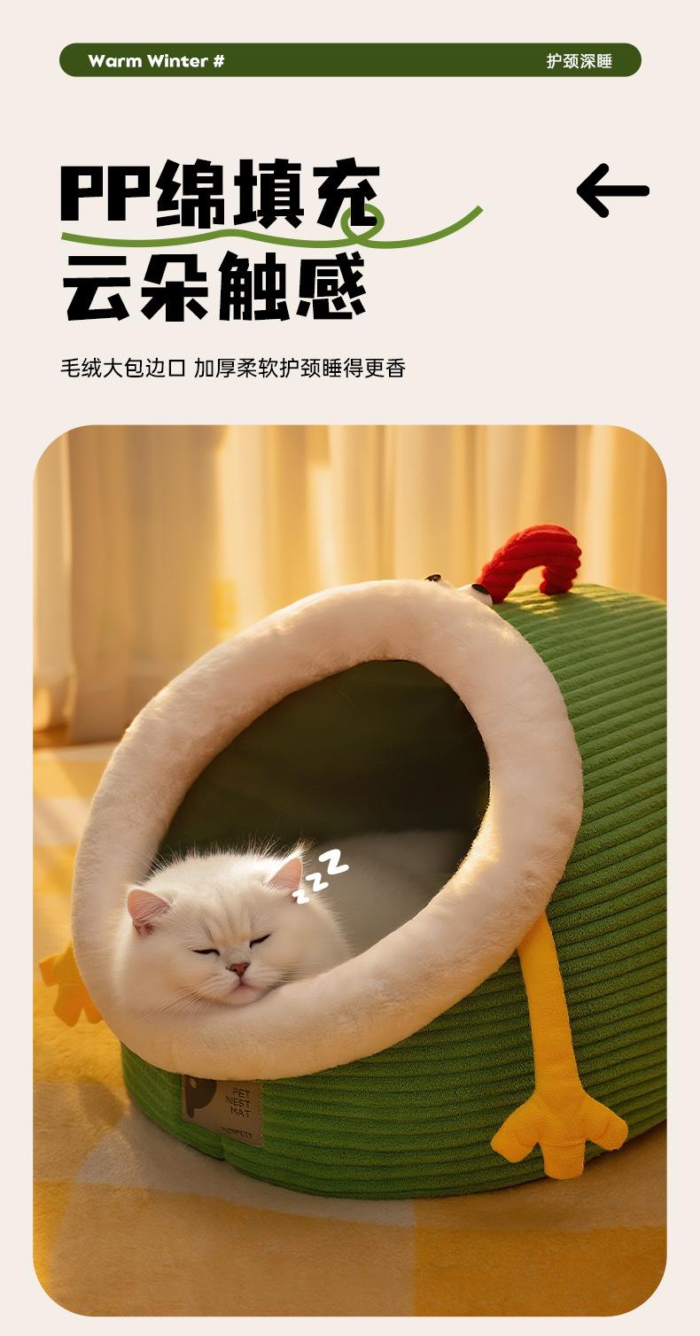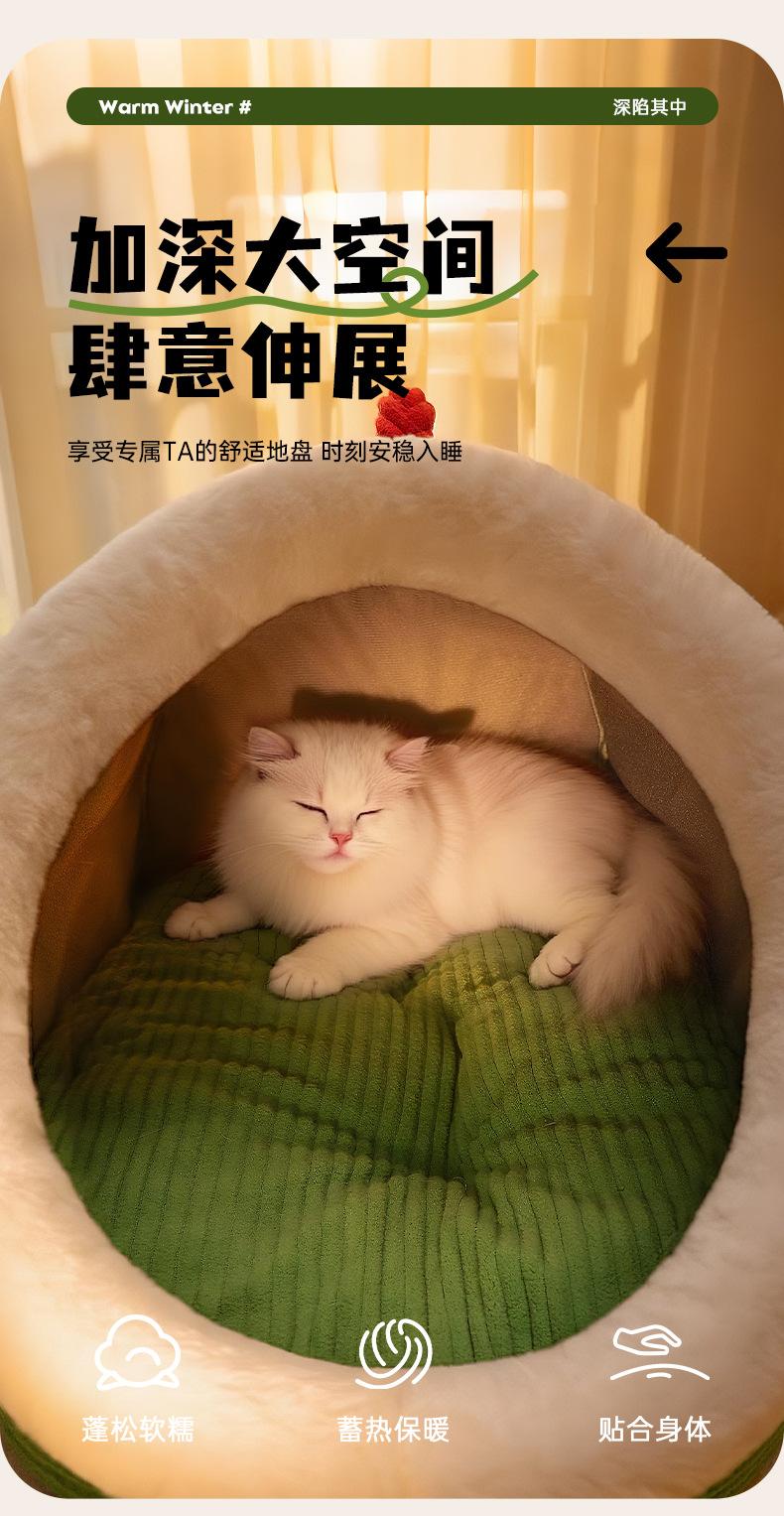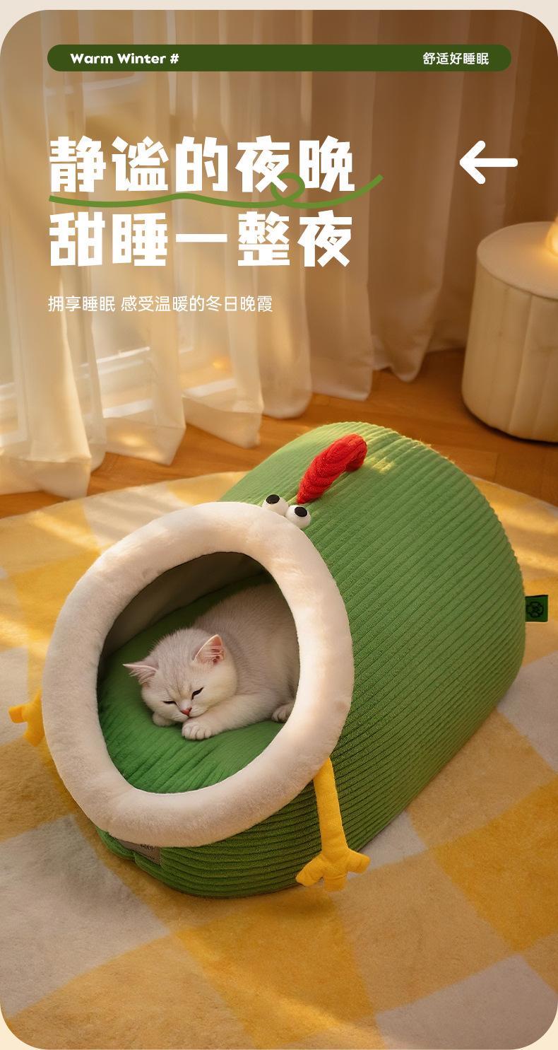 Cama Cálida para Gatos Otoño/Invierno 2025 Verde Cama Portátil para Mascotas Universal para las Cuatro Estaciones Cama para Perros Mansión para Gatos Nido para Dormir Transfronterizo