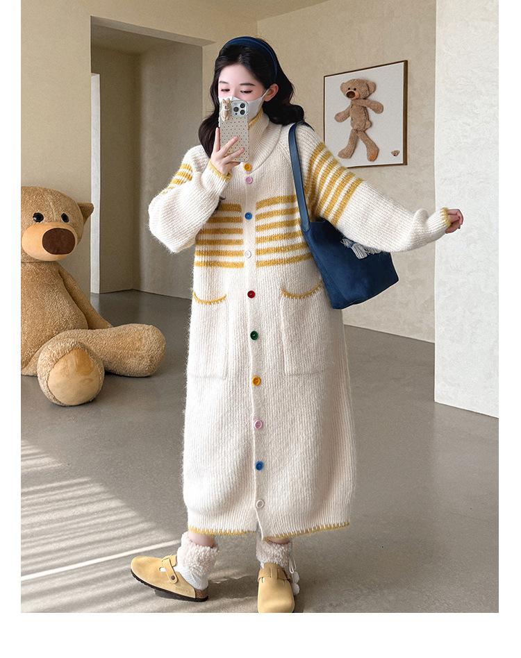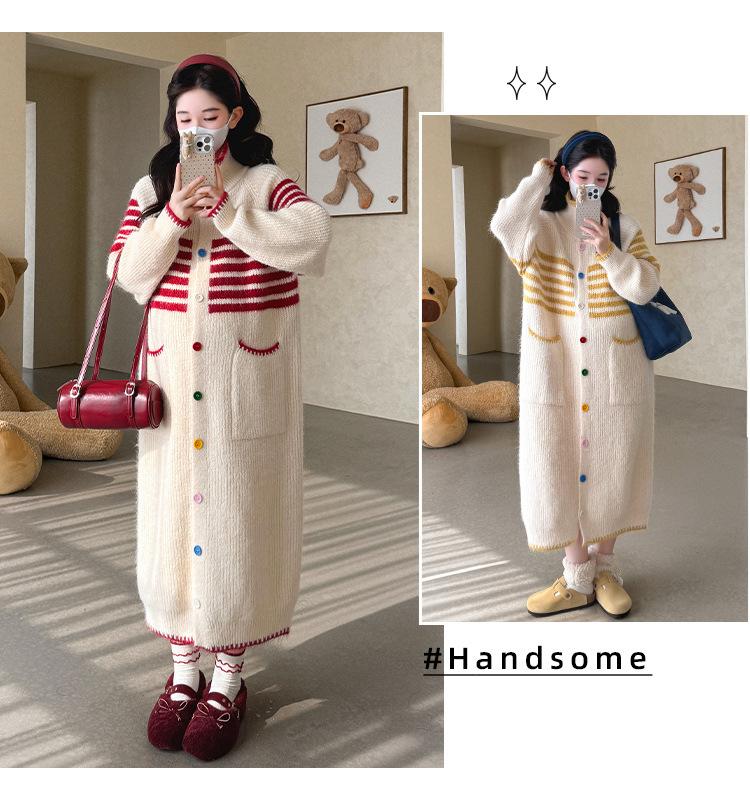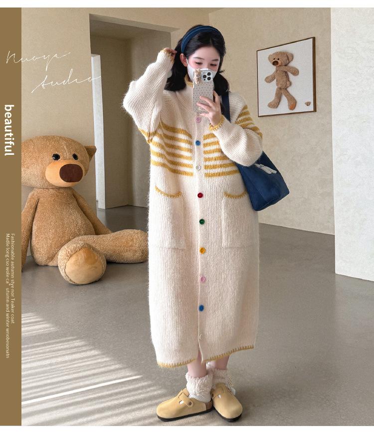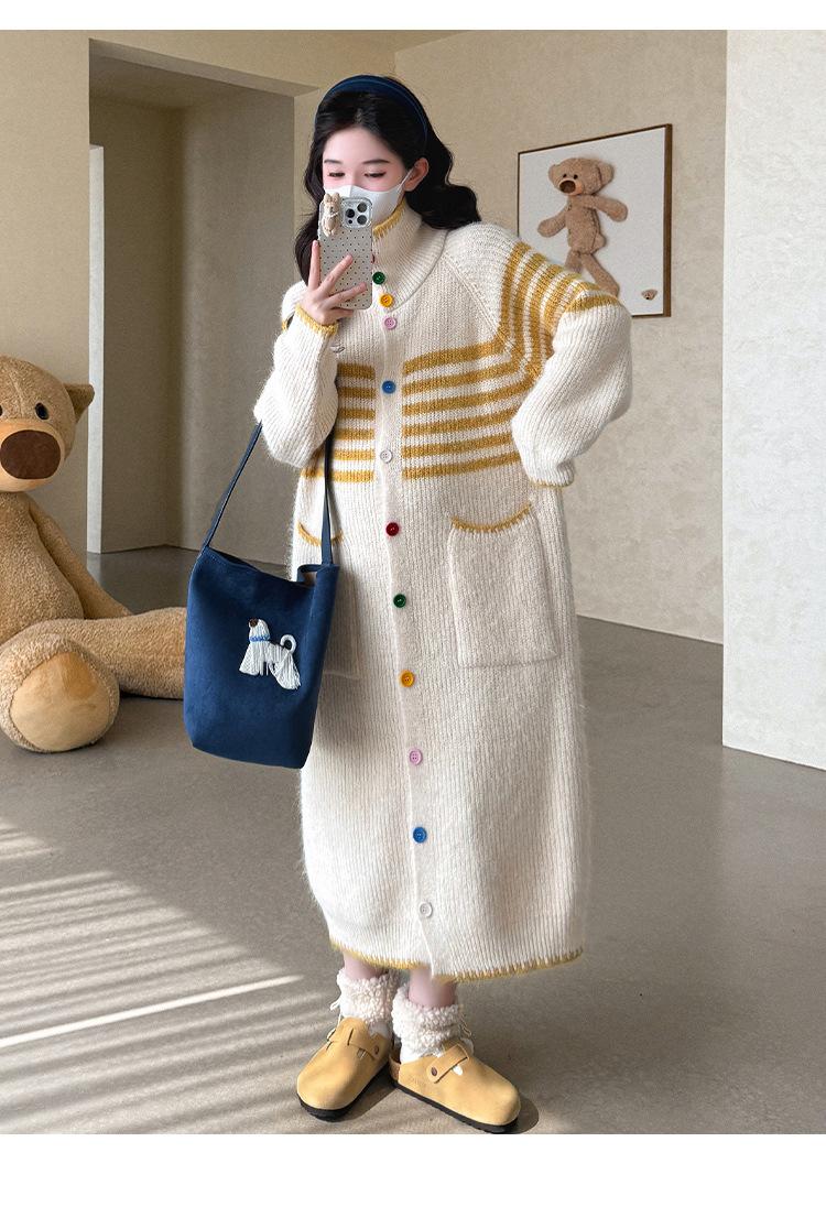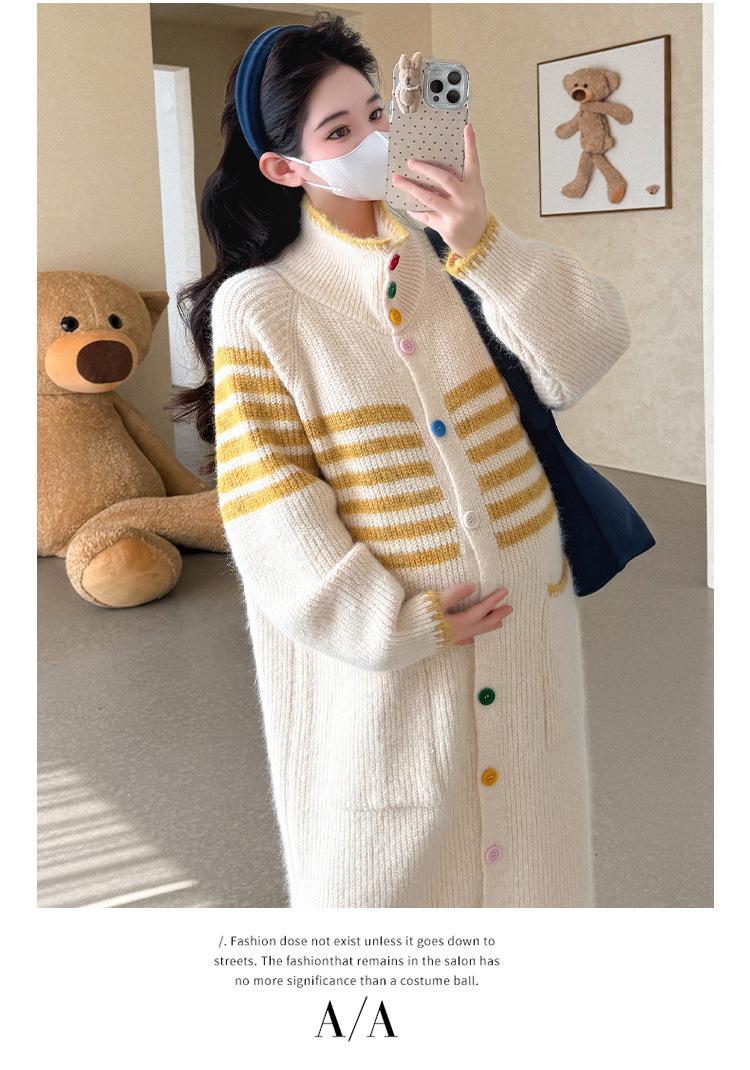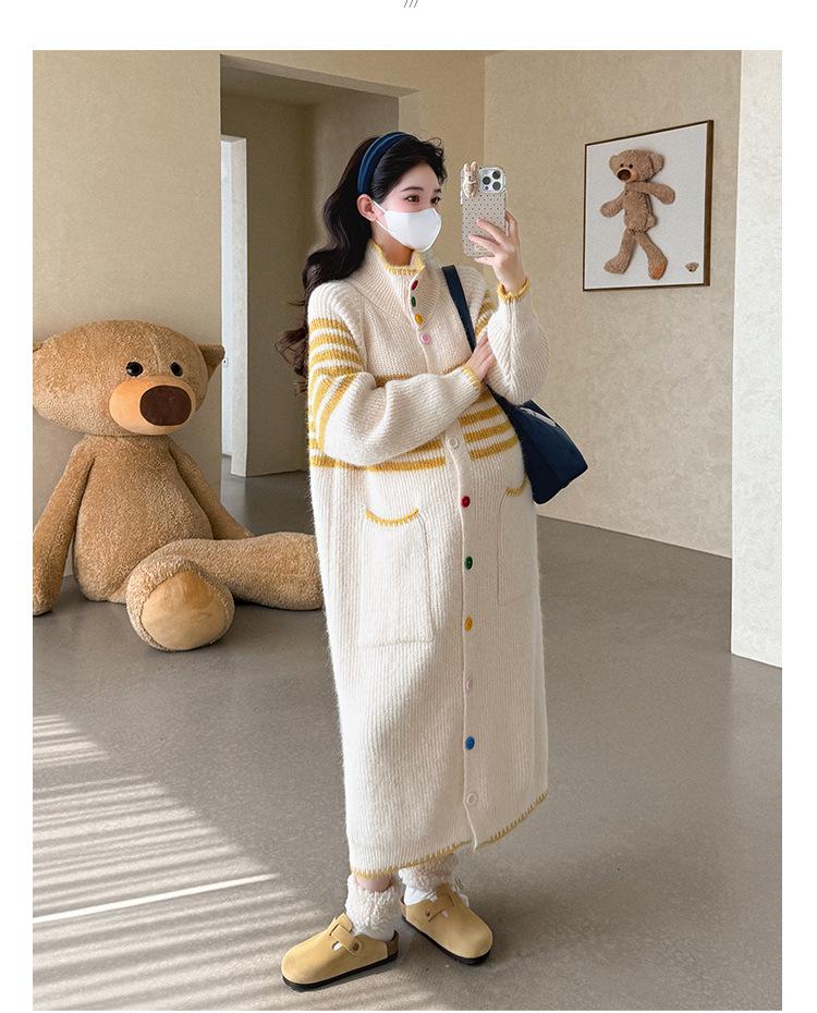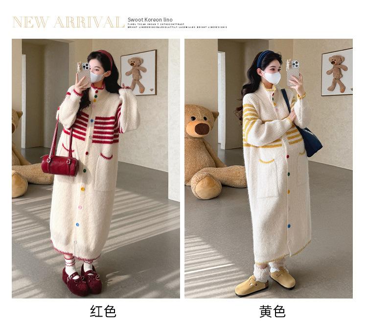 Vestido de Maternidad Otoño/Invierno 2025 Botones Coloridos Mujeres Embarazadas Suelto Tejido Largo Vestido de Maternidad