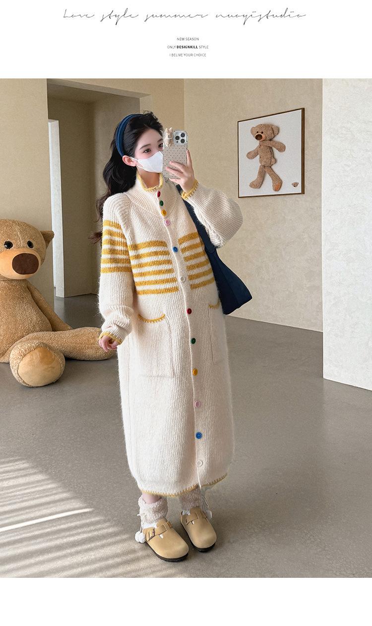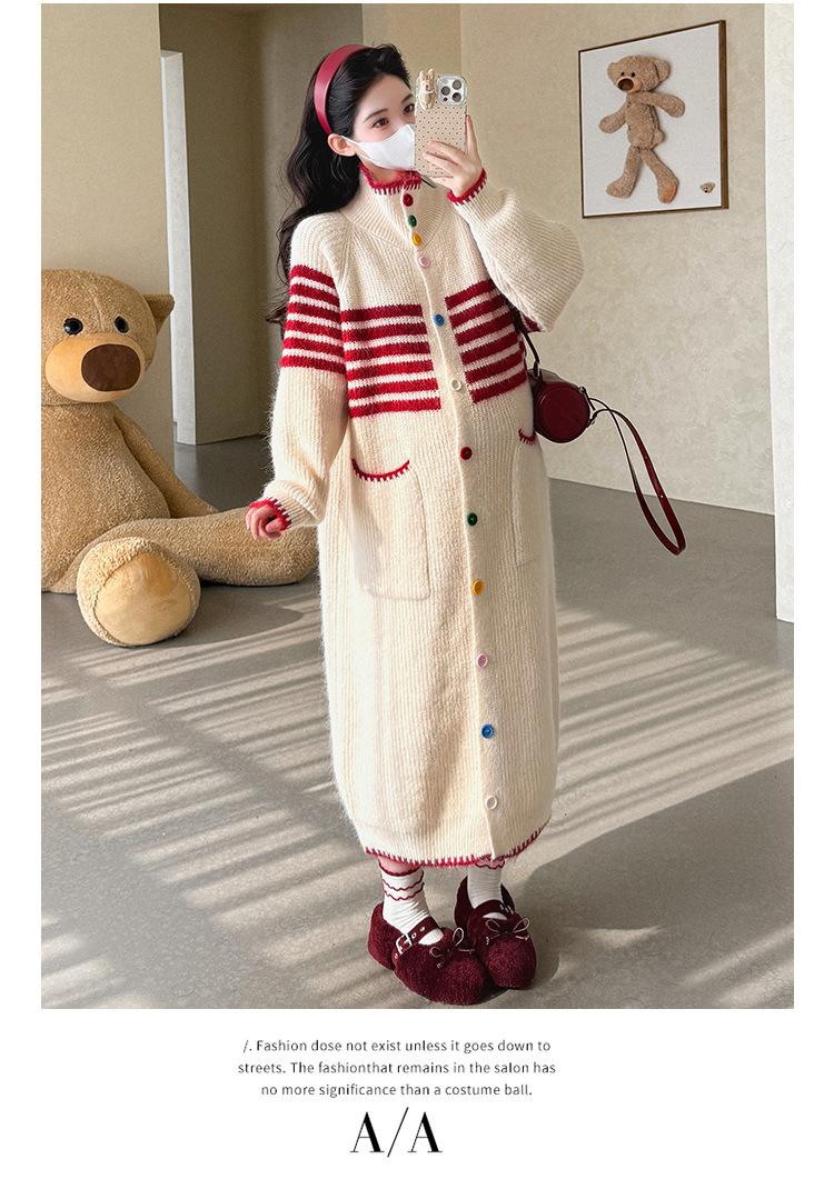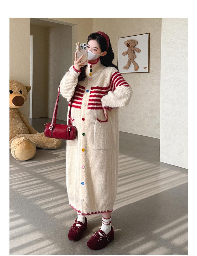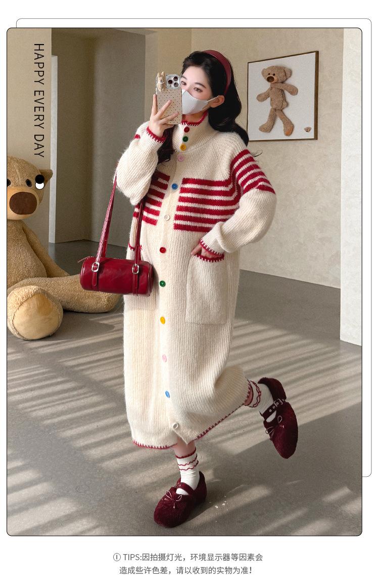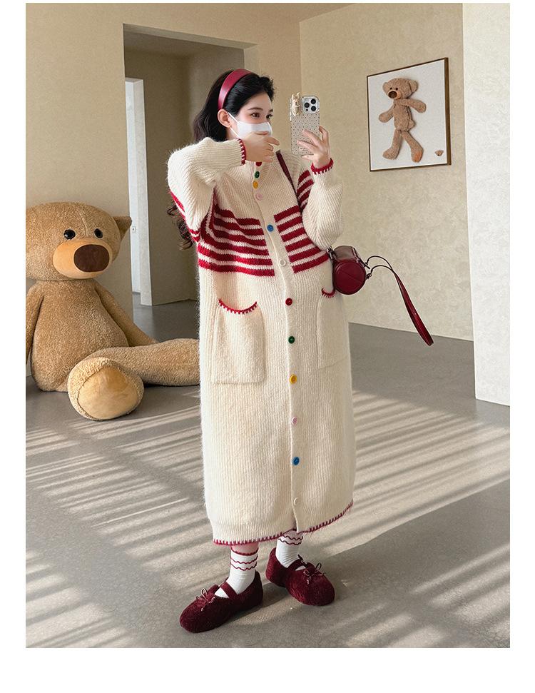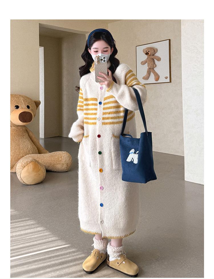 Vestido de Maternidad Otoño/Invierno 2025 Botones Coloridos Mujeres Embarazadas Suelto Tejido Largo Vestido de Maternidad