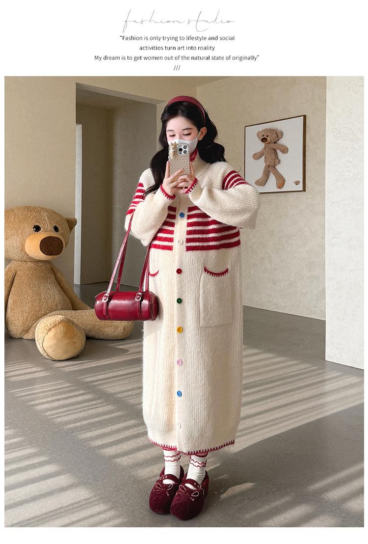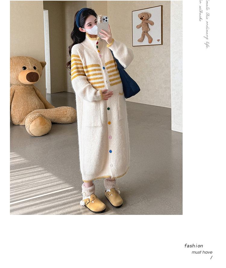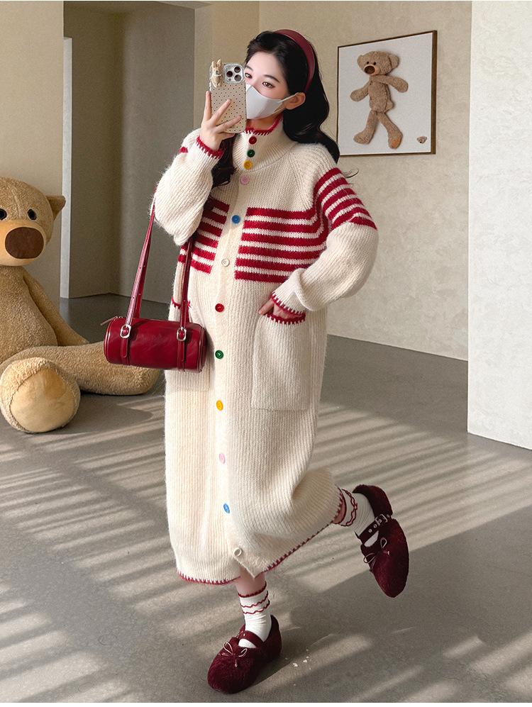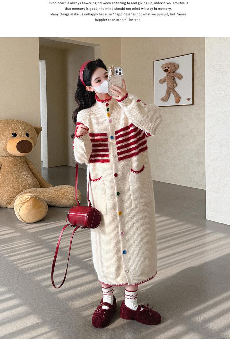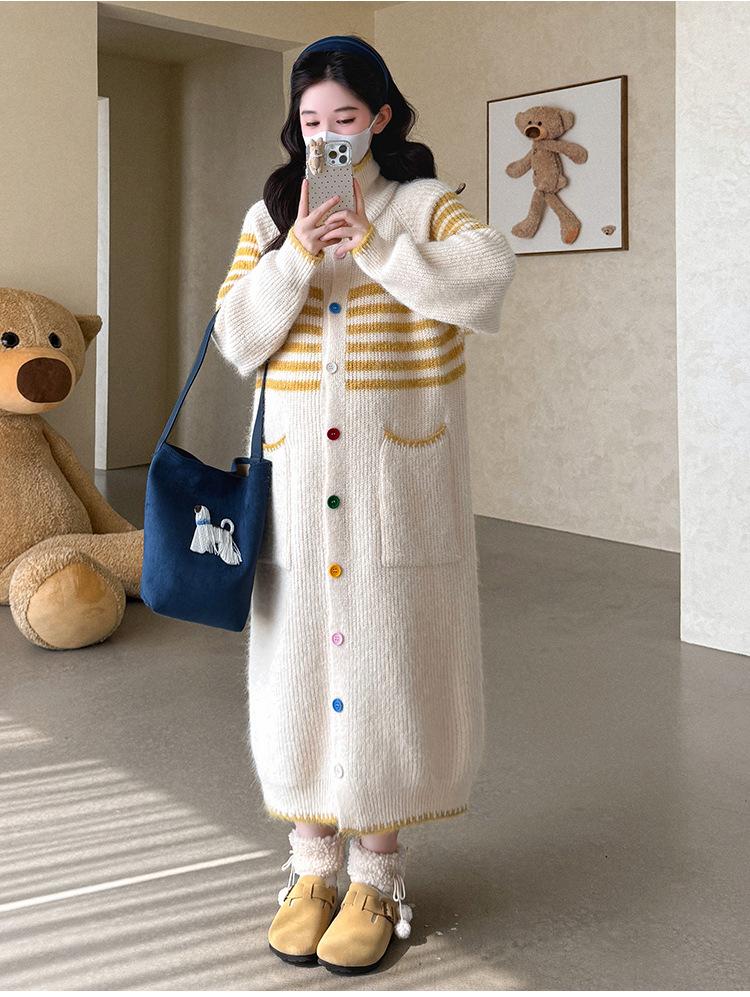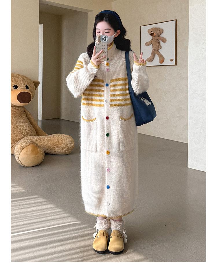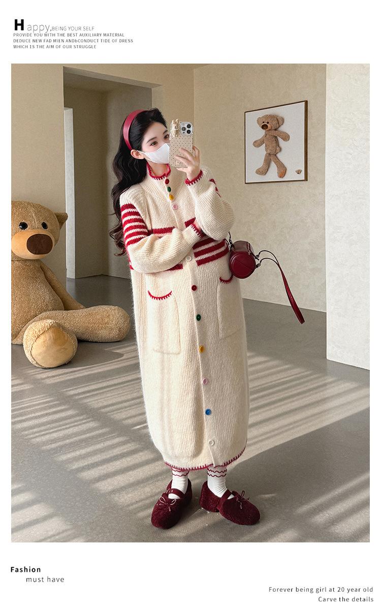 Vestido de Maternidad Otoño/Invierno 2025 Botones Coloridos Mujeres Embarazadas Suelto Tejido Largo Vestido de Maternidad