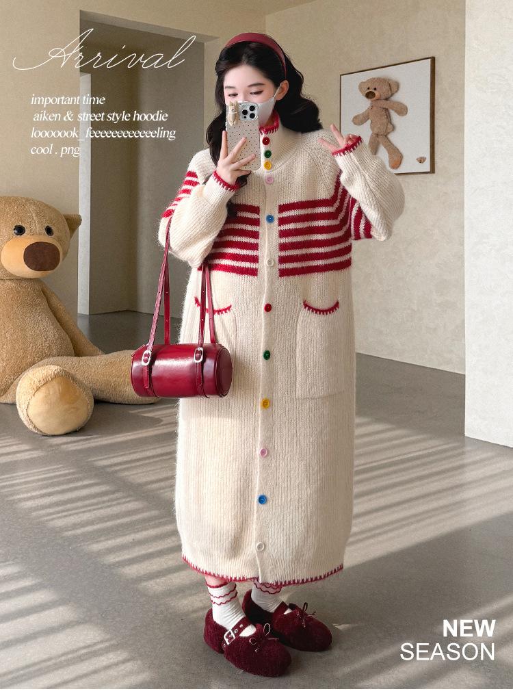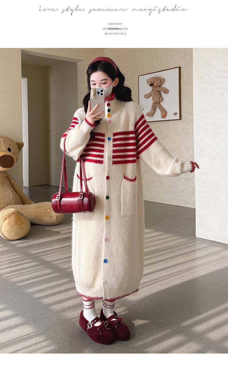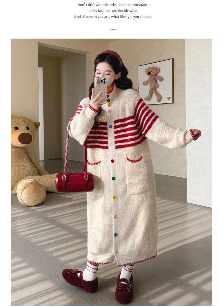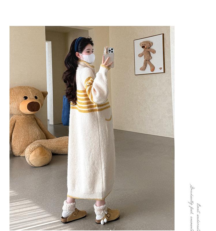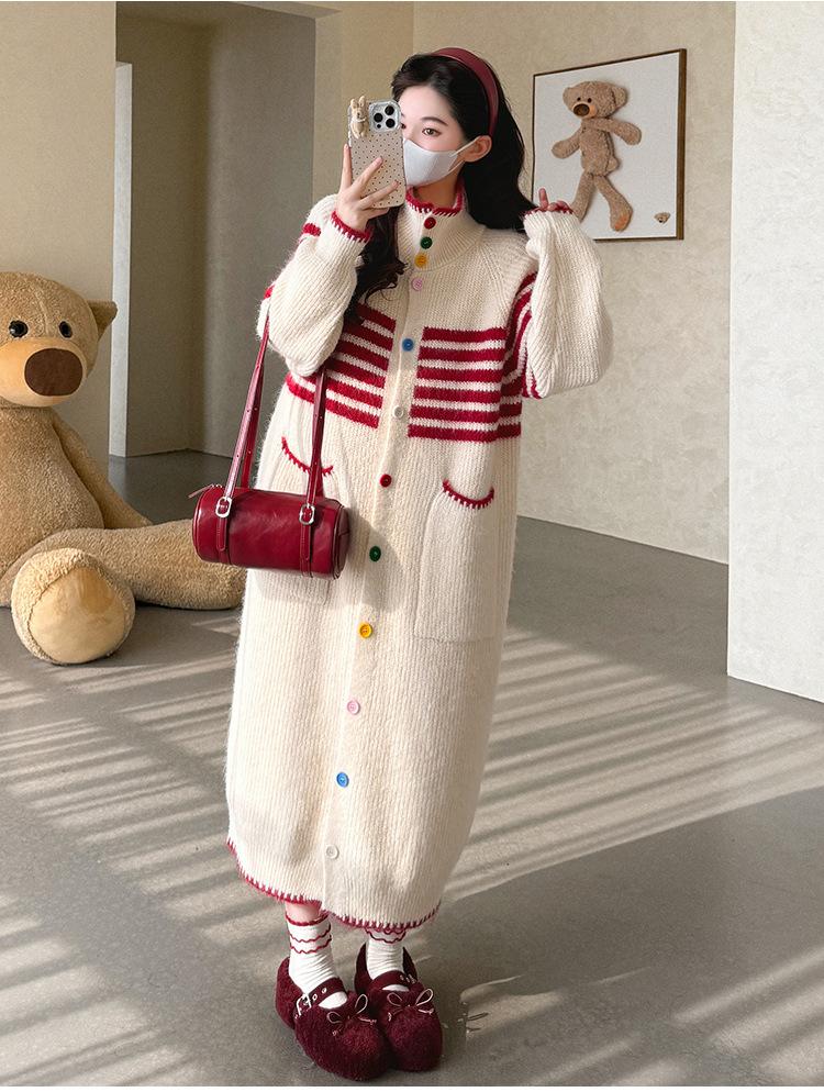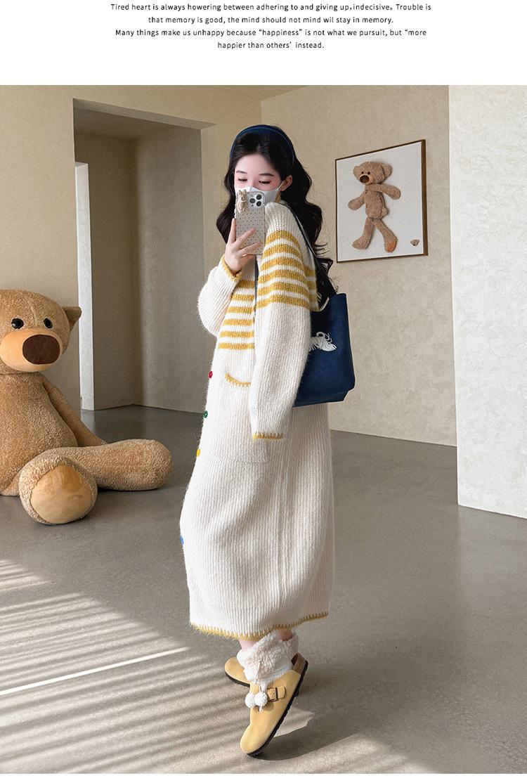 Vestido de Maternidad Otoño/Invierno 2025 Botones Coloridos Mujeres Embarazadas Suelto Tejido Largo Vestido de Maternidad