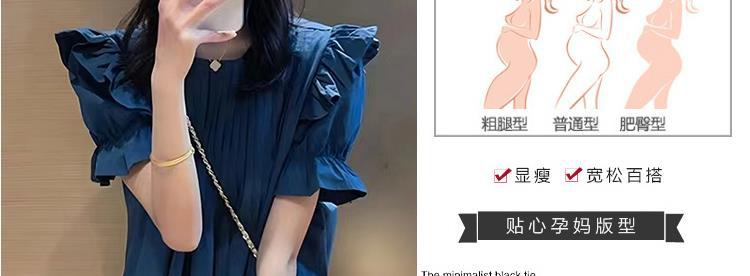 Ropa de Maternidad Falda de Verano 2024 Nuevo Estilo Francés Suave Elegante Mangas Volantes Holgado Adelgazante Vestido de Maternidad