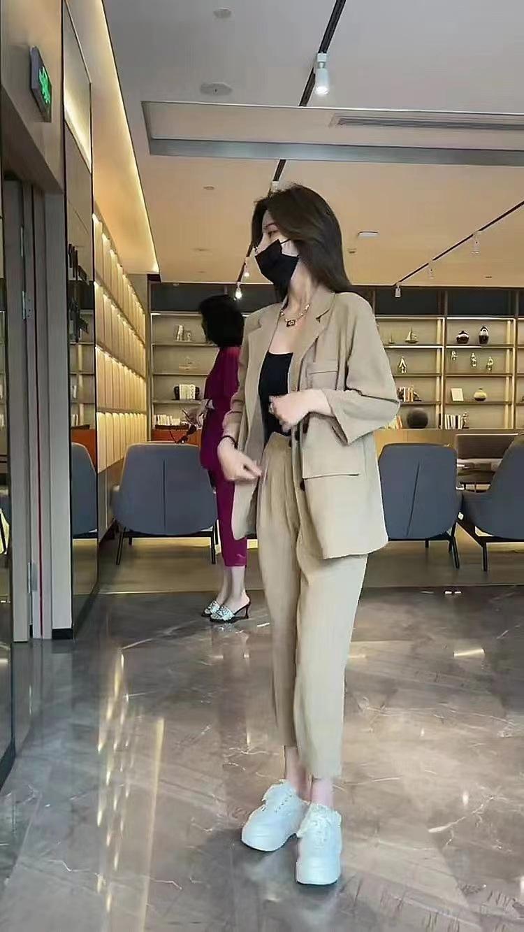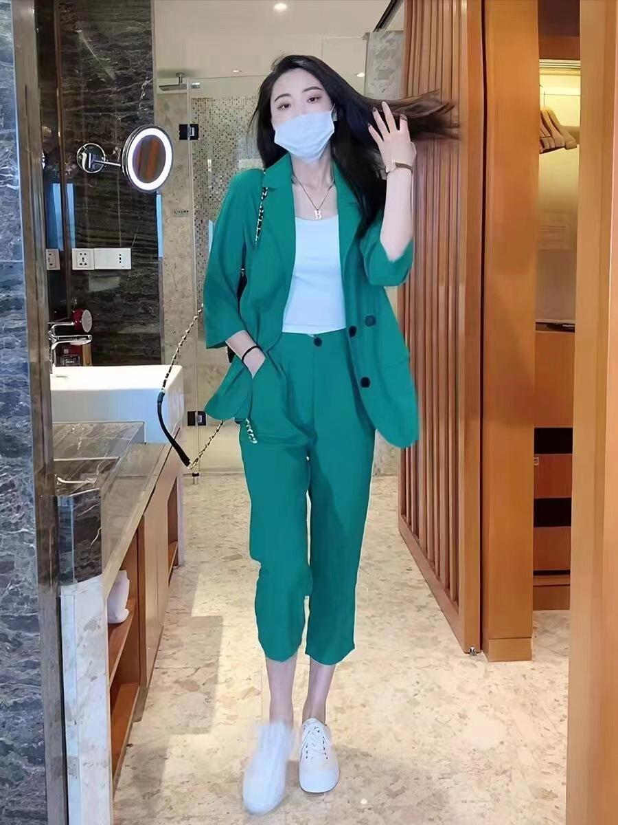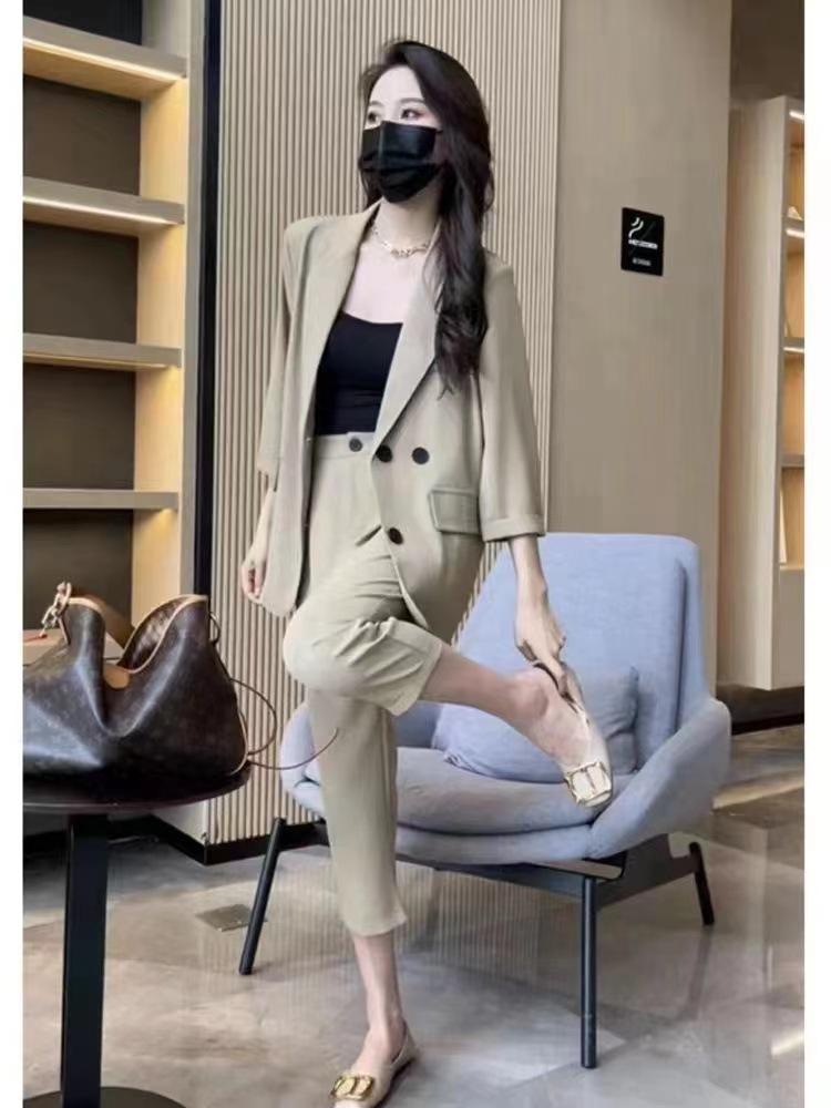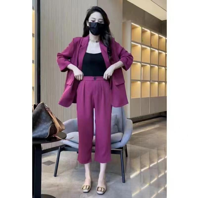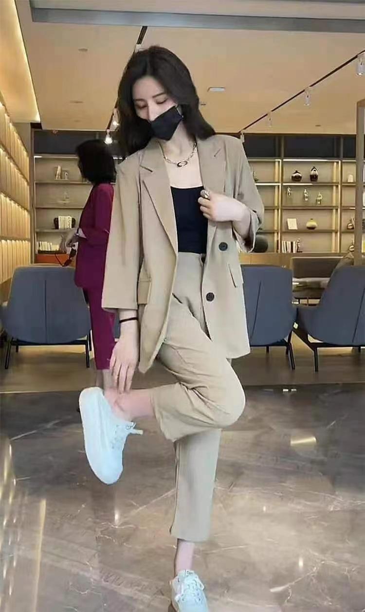 Talla grande chica gordita Traje de Otoño para Mujer traje Temperamento Ropa de Negocios Pantalones Estilo Occidental Casual Traje Pequeño Conjunto de Dos Piezas 200kg