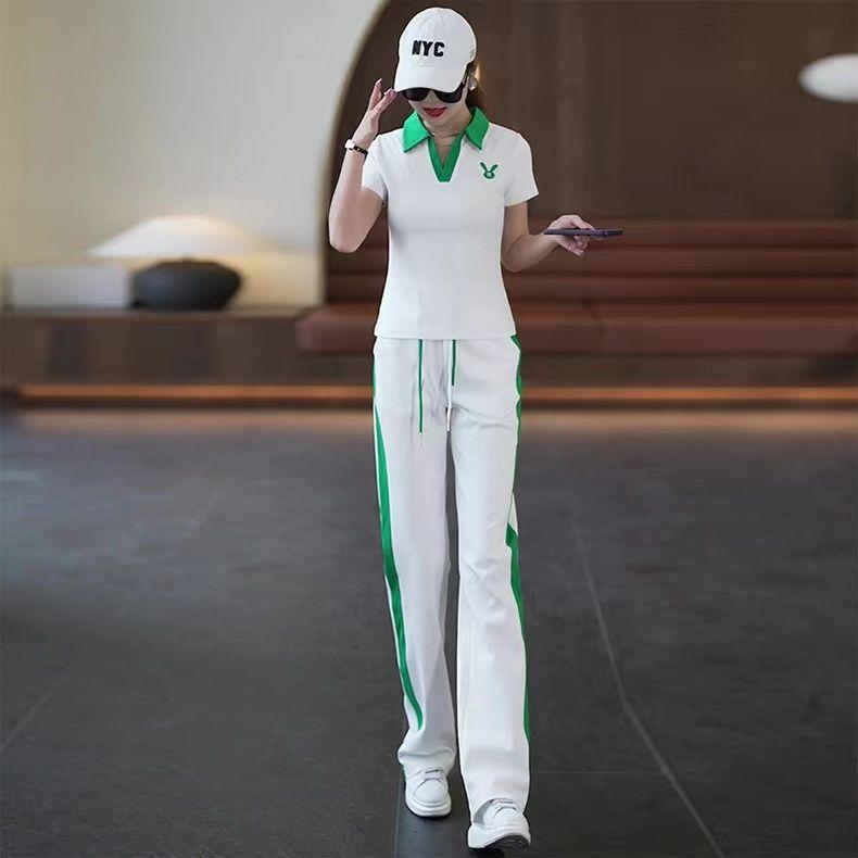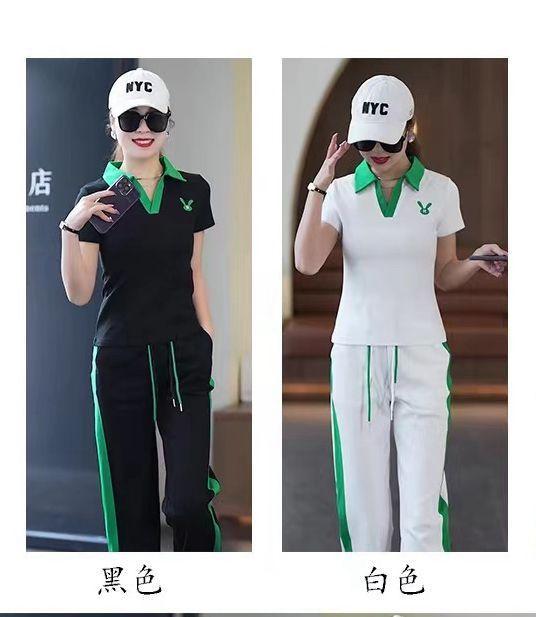 Traje Deportivo Casual para Mujer 2025 Nuevo Estilo de Verano Moderno y Rejuvenecedor Pantalones de Pierna Ancha de Manga Corta Conjunto de Dos Piezas