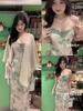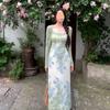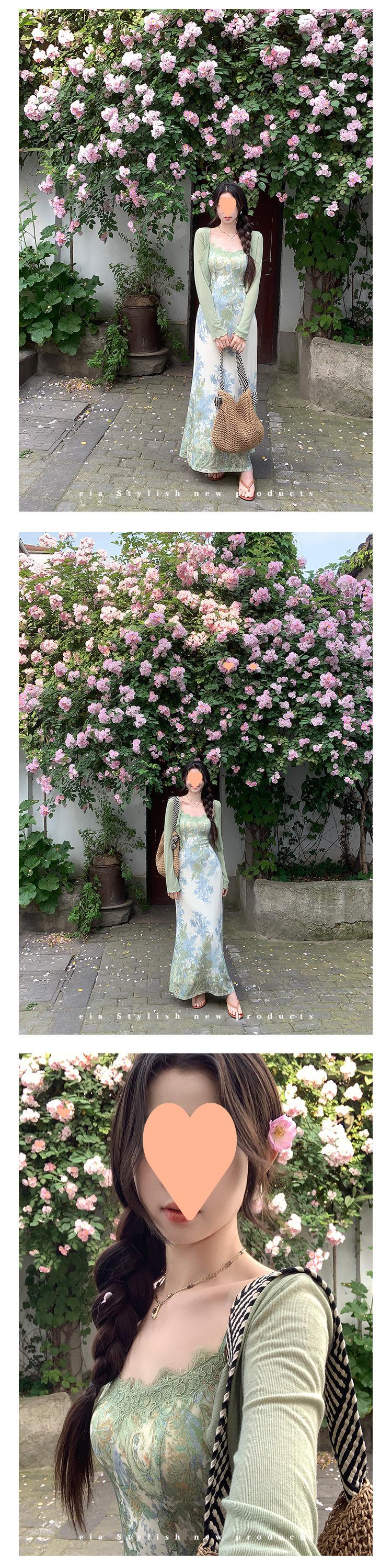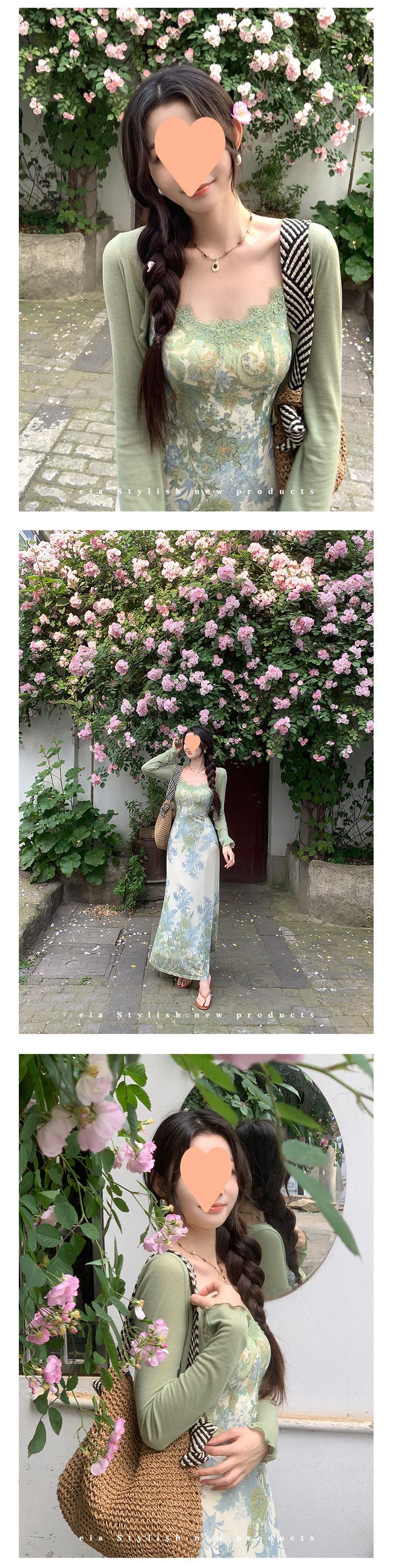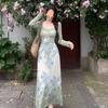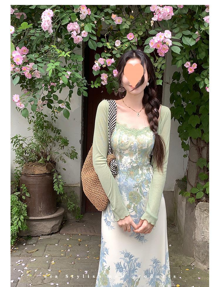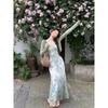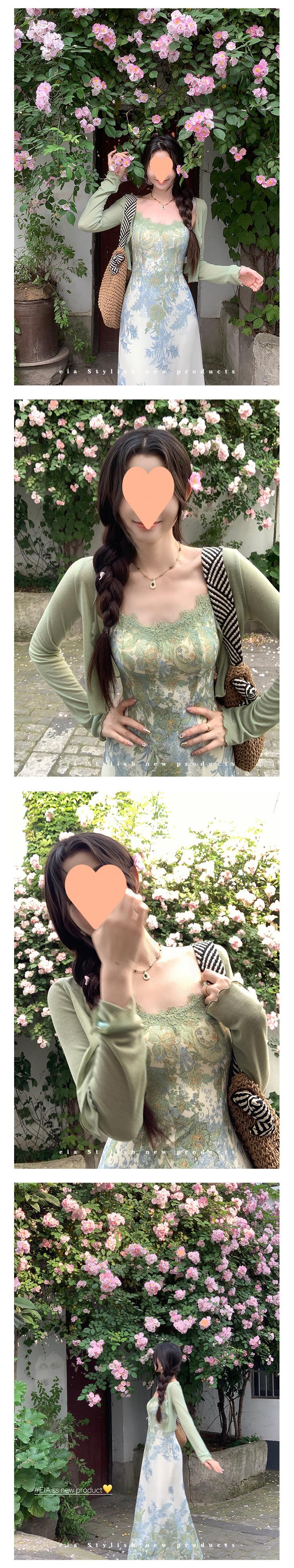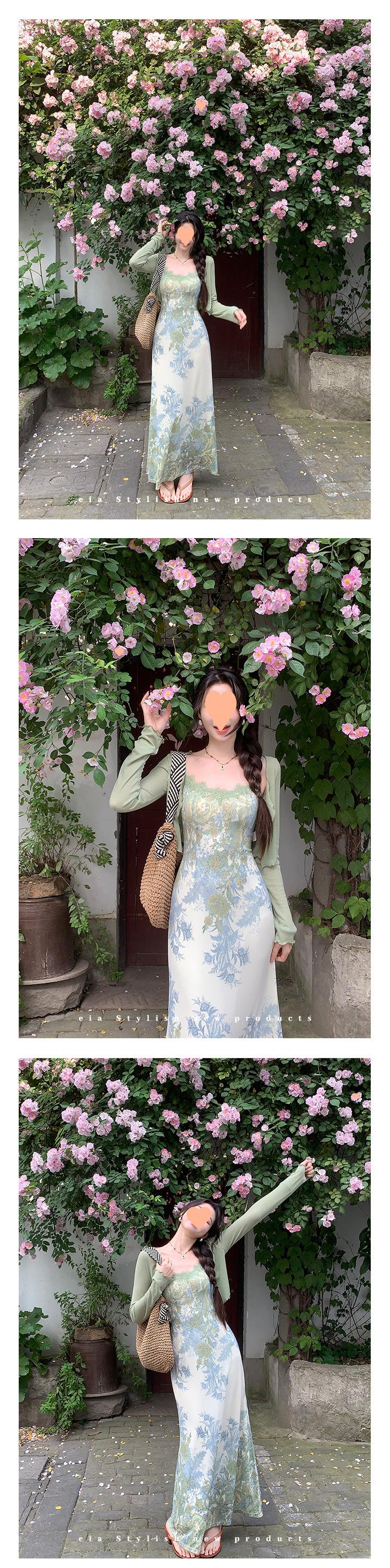 Vestido Floral Retro Estilo Chino Nuevo para Mujer Verano Cárdigan Falda de Tirantes Set de Dos Piezas
