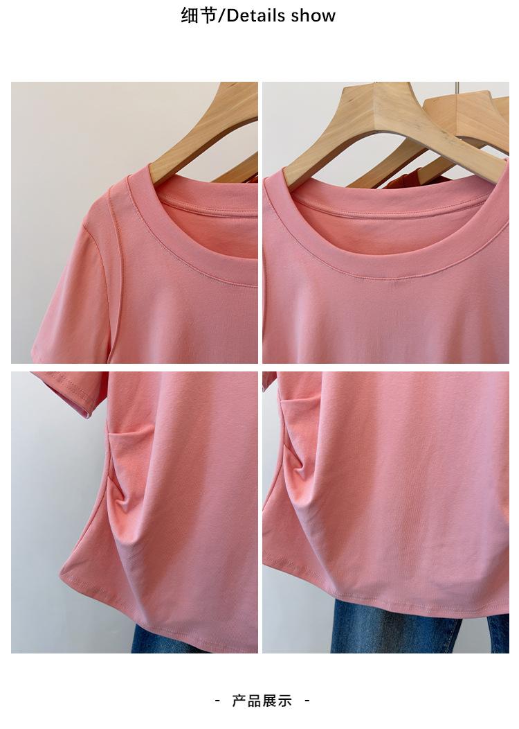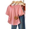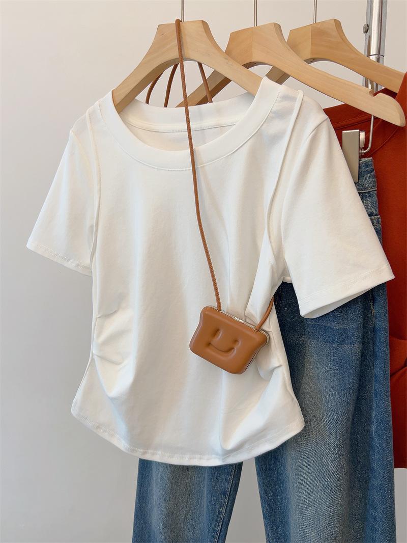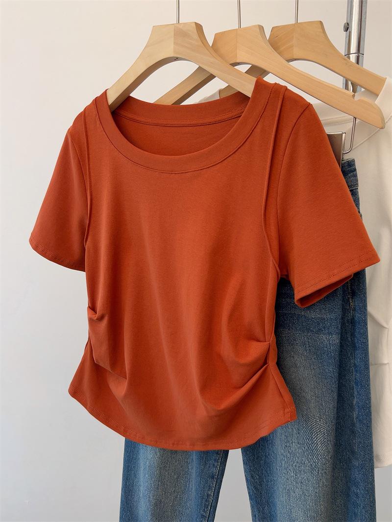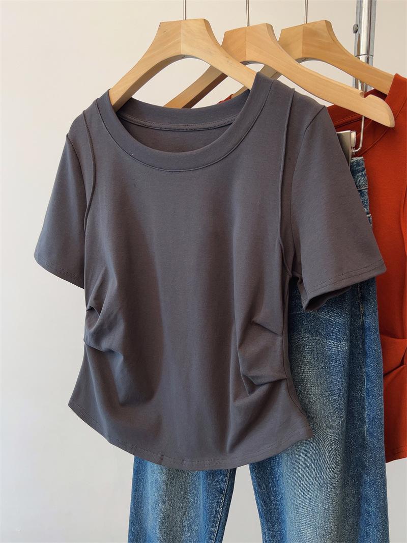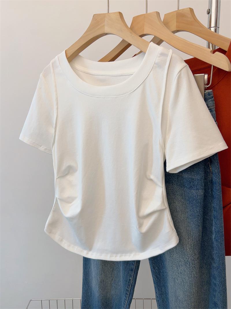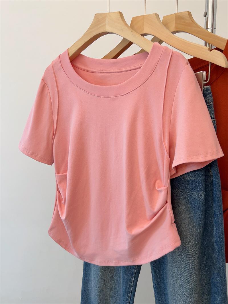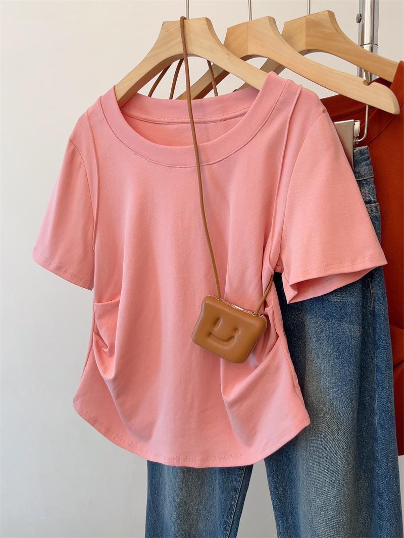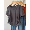 Talla grande Verano para mujer Nuevo 2024 chica gordita Versátil Casual Jersey Color Sólido Adelgazante Manga Corta Algodón Camiseta Top