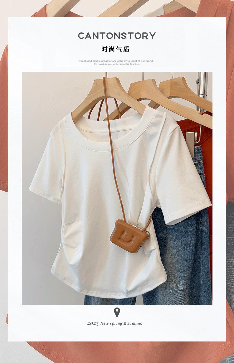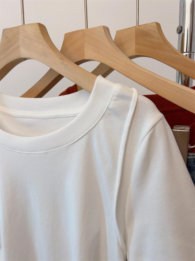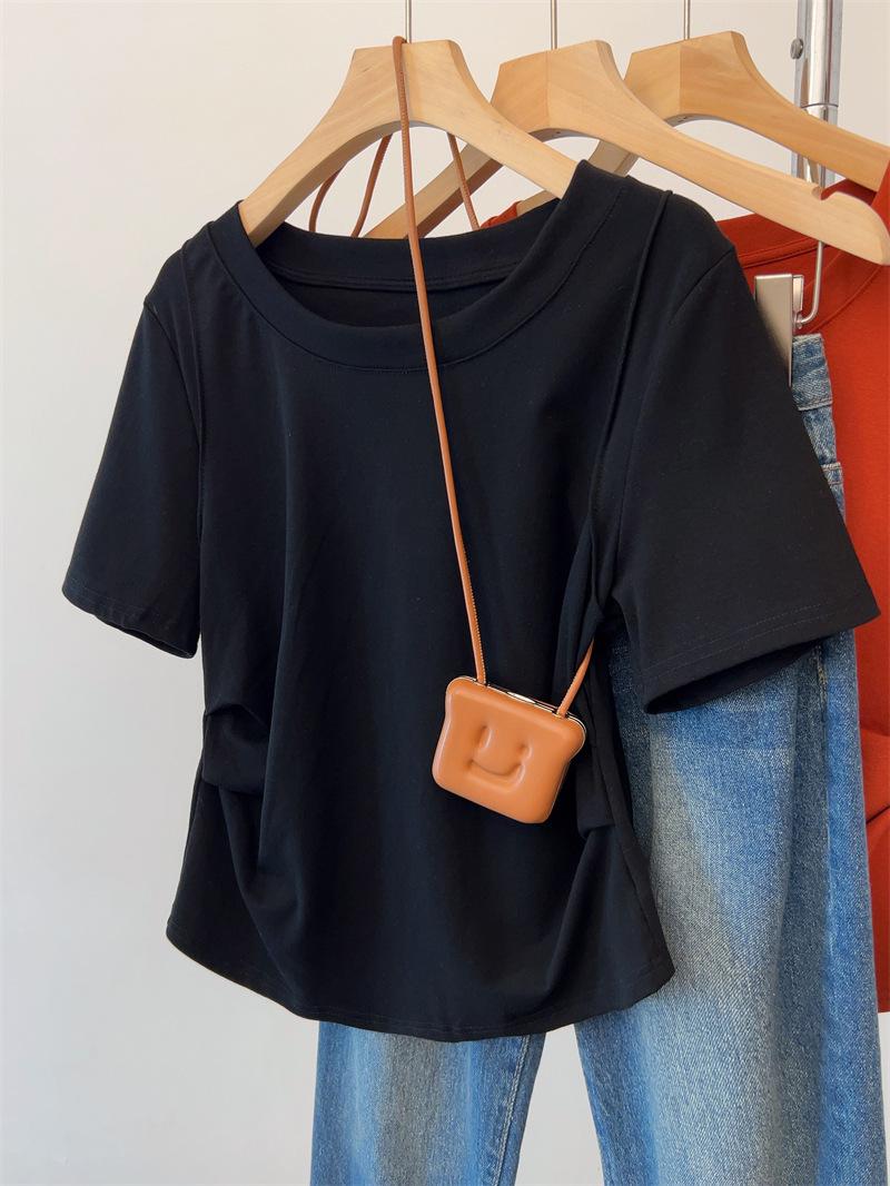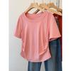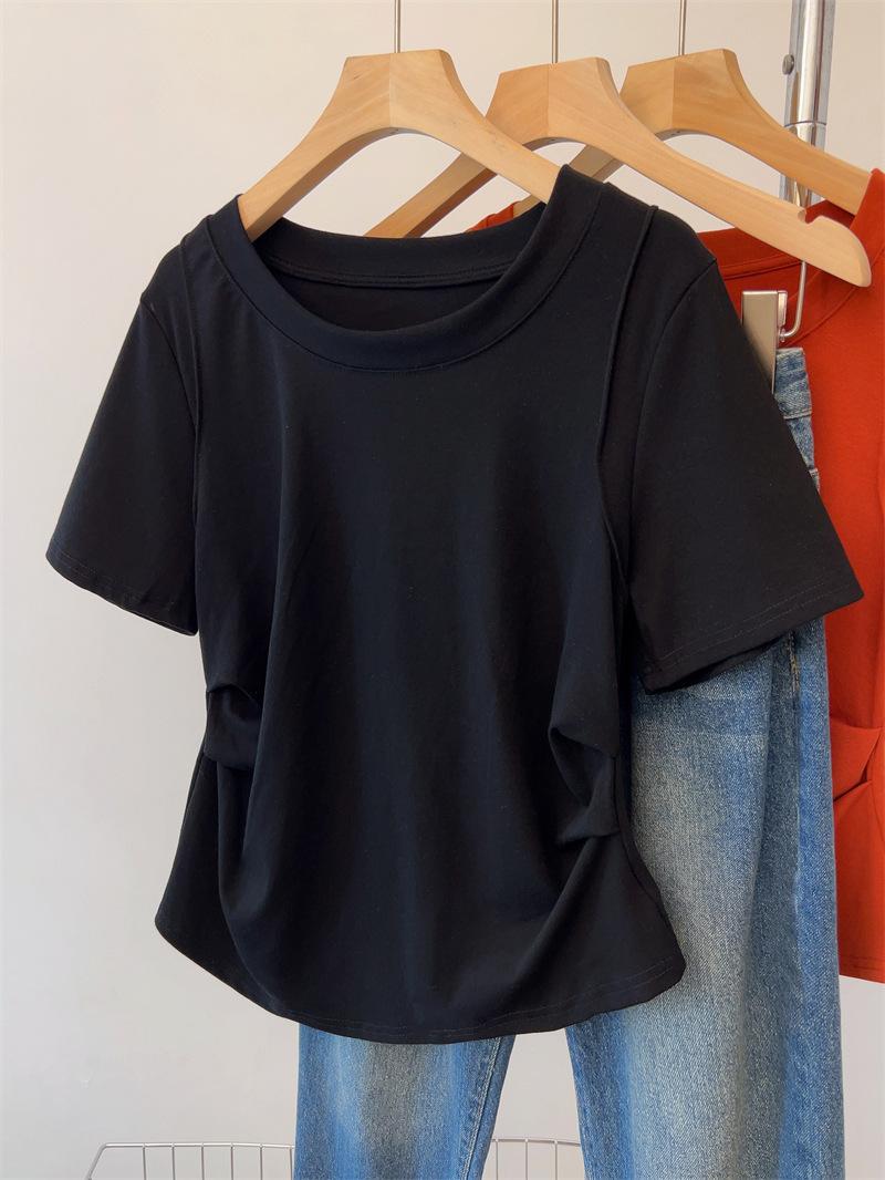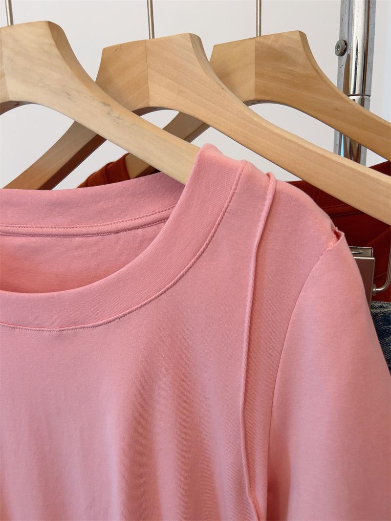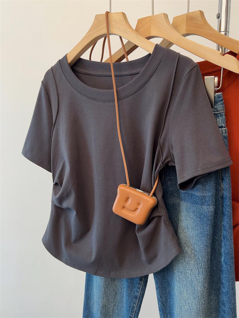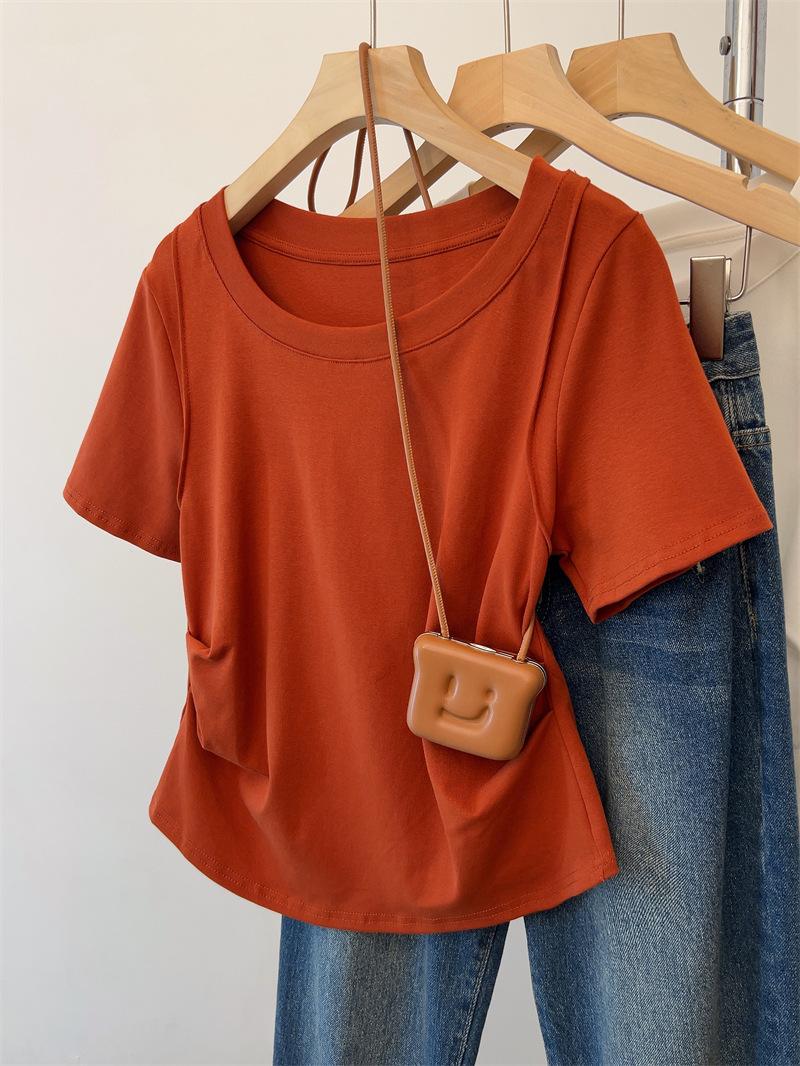 Talla grande Verano para mujer Nuevo 2024 chica gordita Versátil Casual Jersey Color Sólido Adelgazante Manga Corta Algodón Camiseta Top