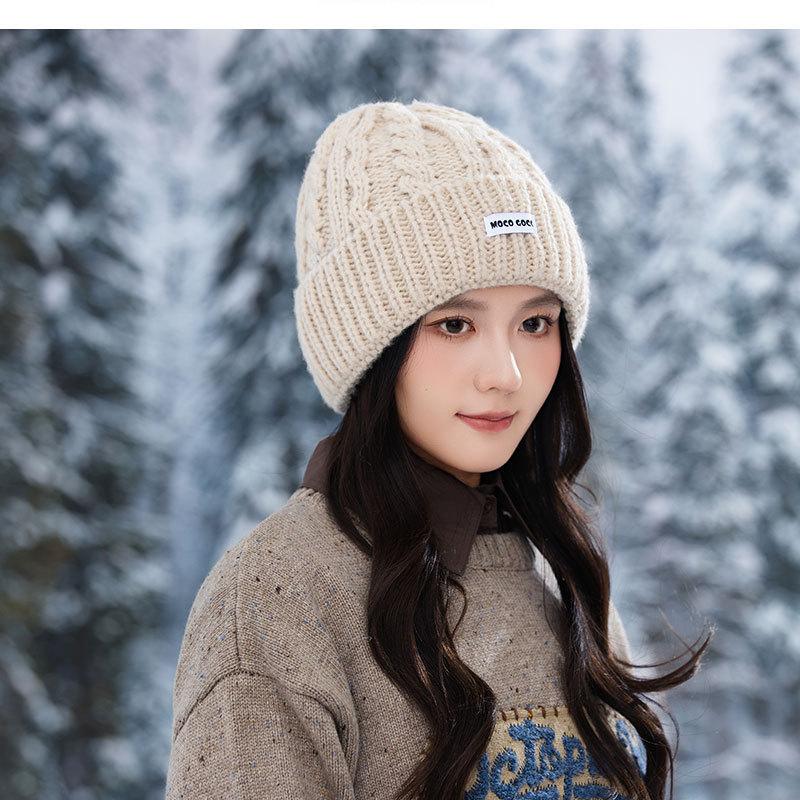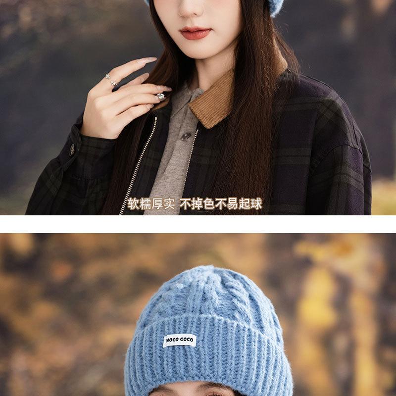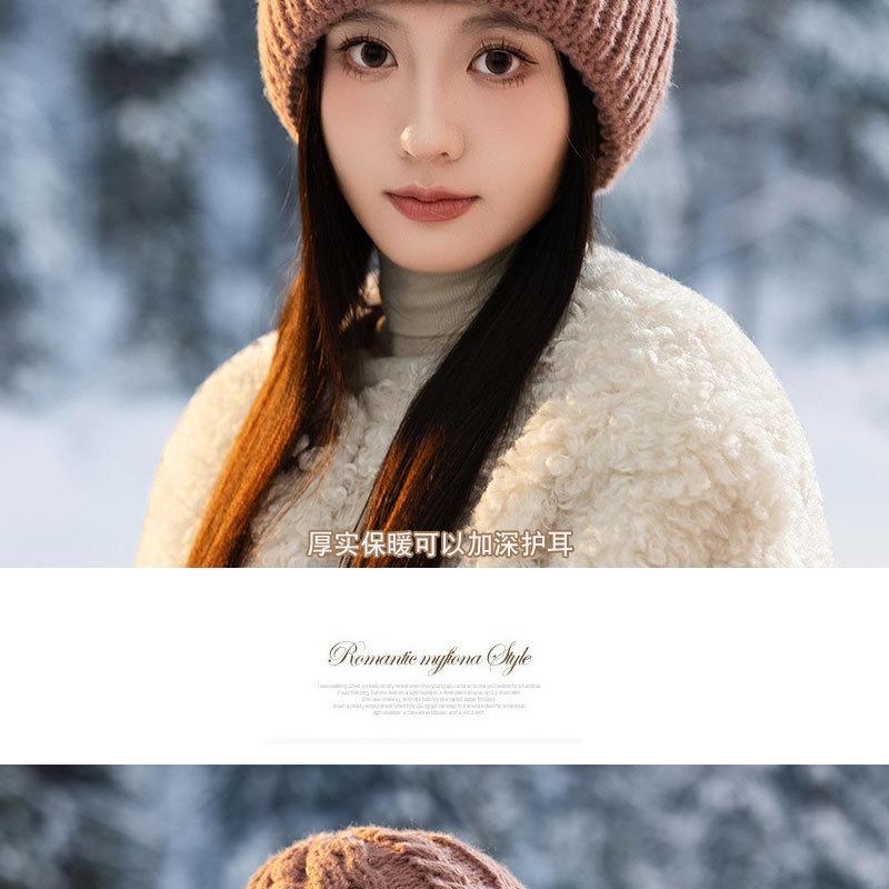 Gorro de Punto Trenzado Grueso Cálido para Invierno para Mujer a Prueba de Frío Muestra Rostro Pequeño Japonés Versátil Protección para las Orejas Gorro Frío de Punto Grueso
