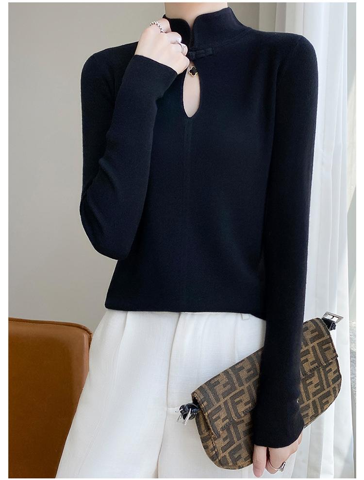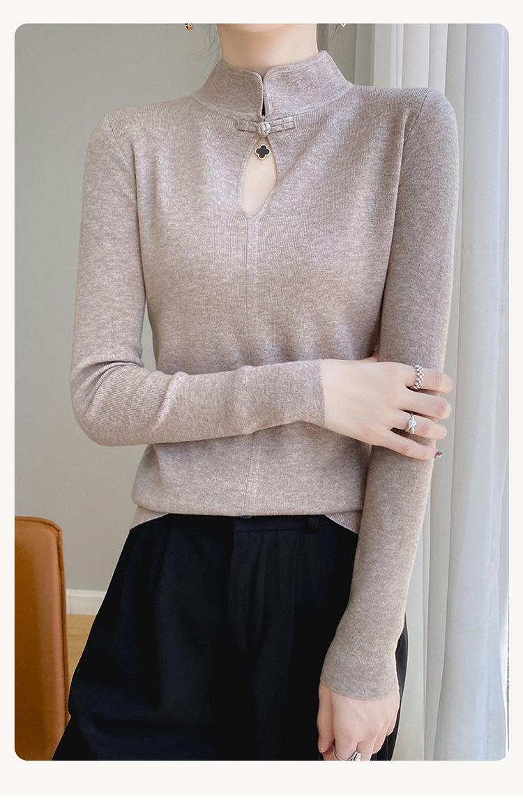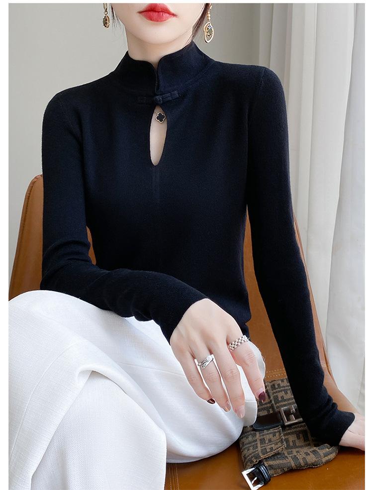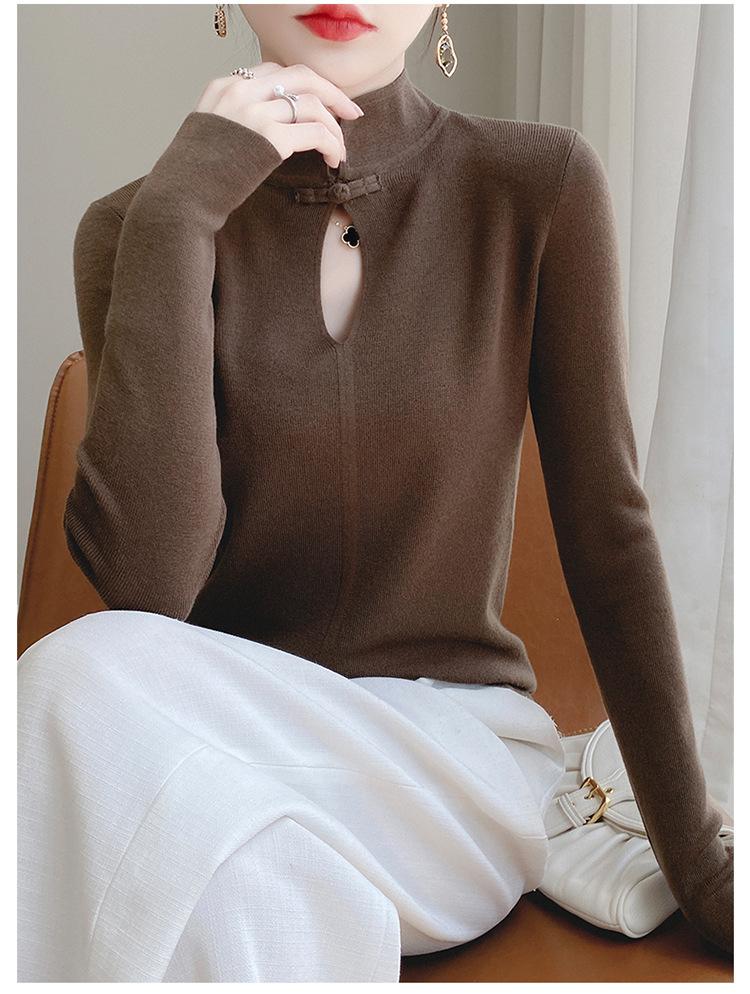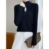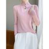 Camiseta básica de punto de lana peinada con cuello alto para mujer, otoño e invierno, interior cálido, suéter tipo jersey, top ajustado adelgazante