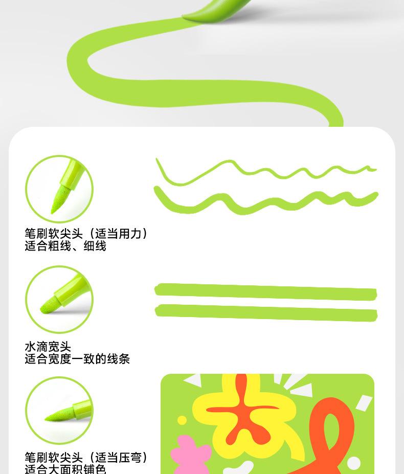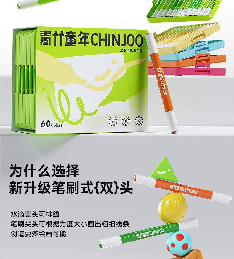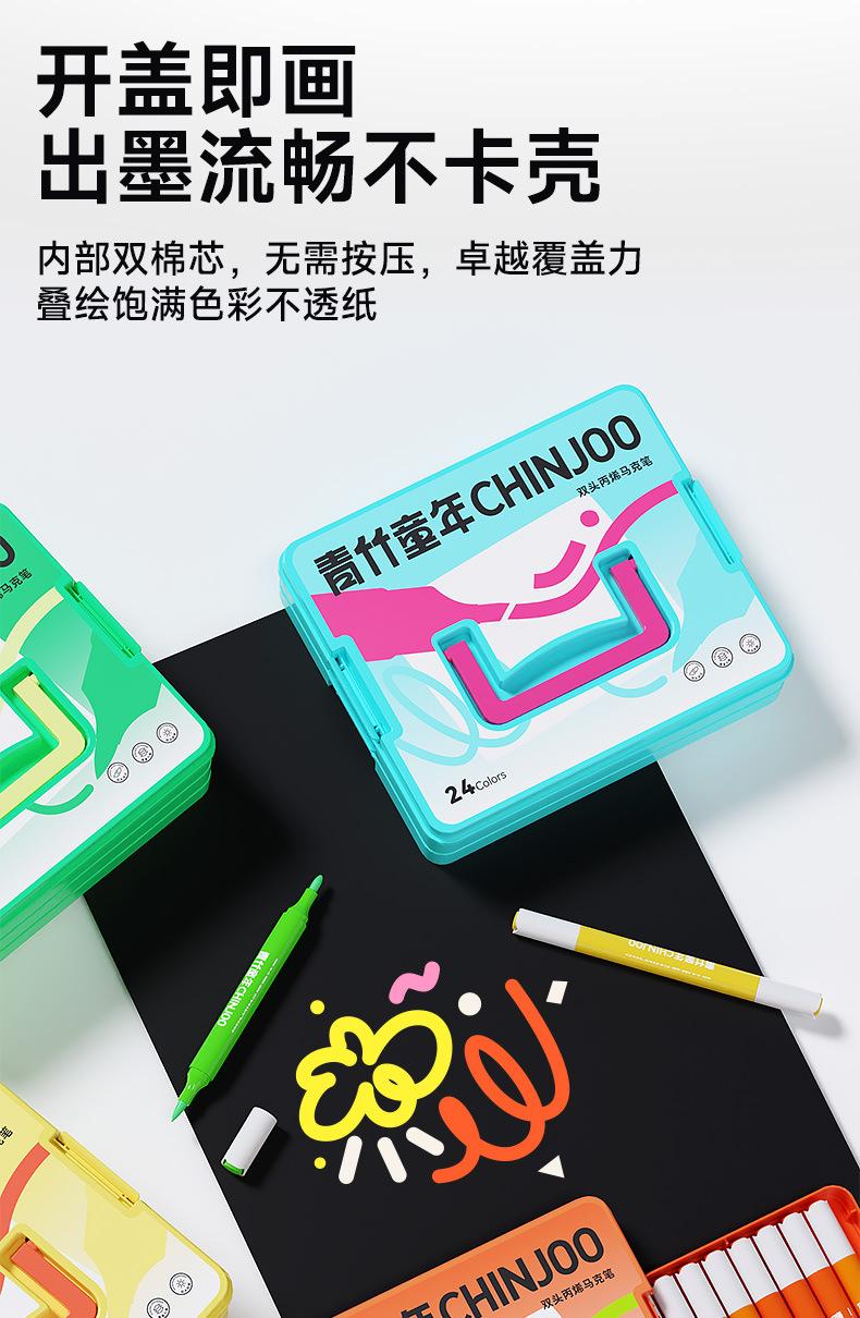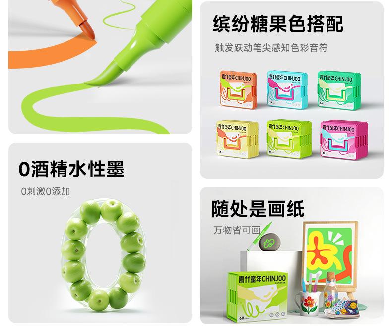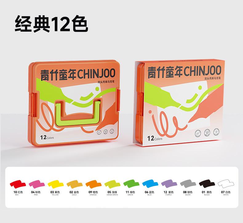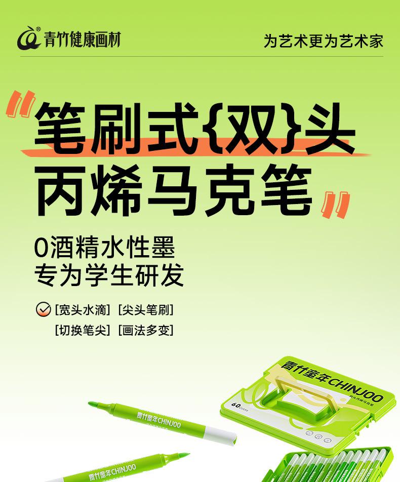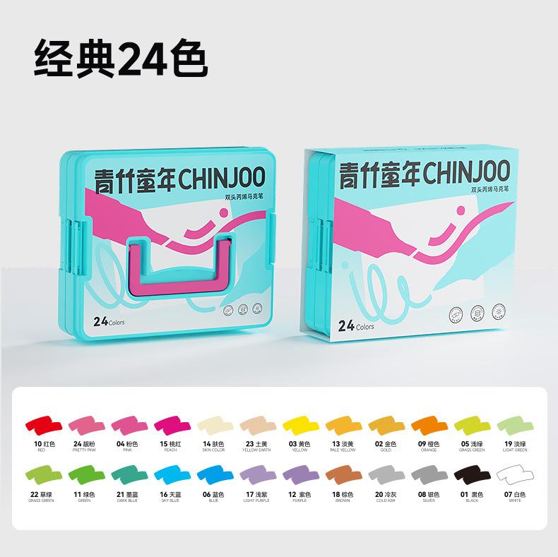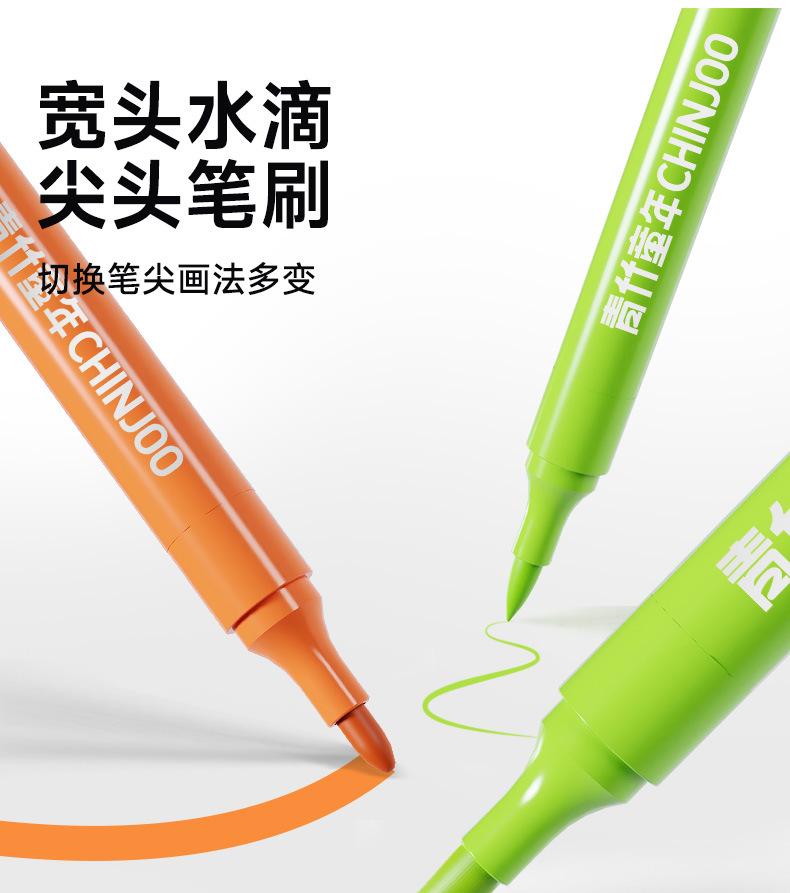 Marcador Acrílico de Punta Suave de Bambú Verde Doble Punta Especial para Estudiantes de Arte Opaco Capas Niños Estudiante de Primaria DIY 24 Colores
