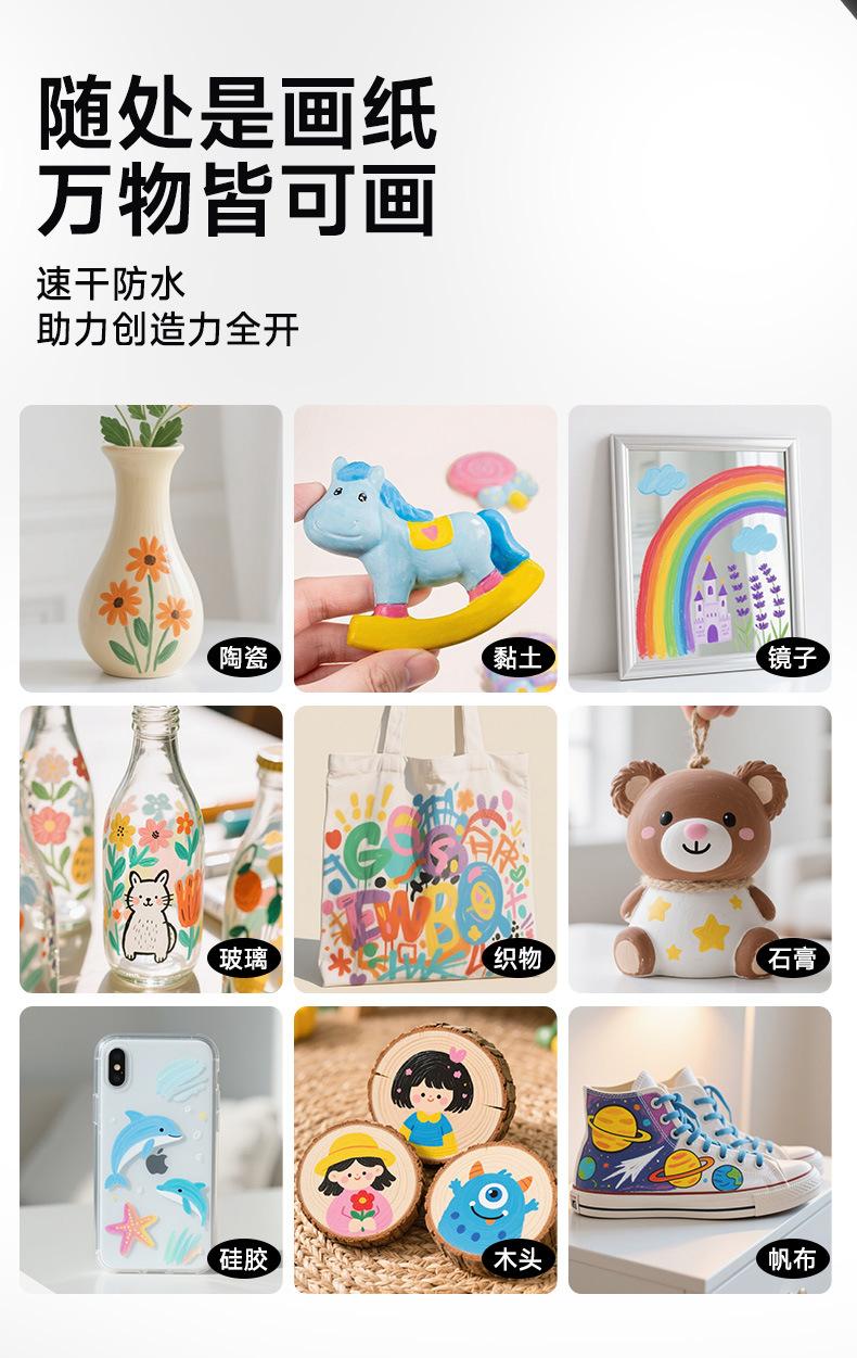 12-color brush-type acrylic markers 【double-ended cotton core】